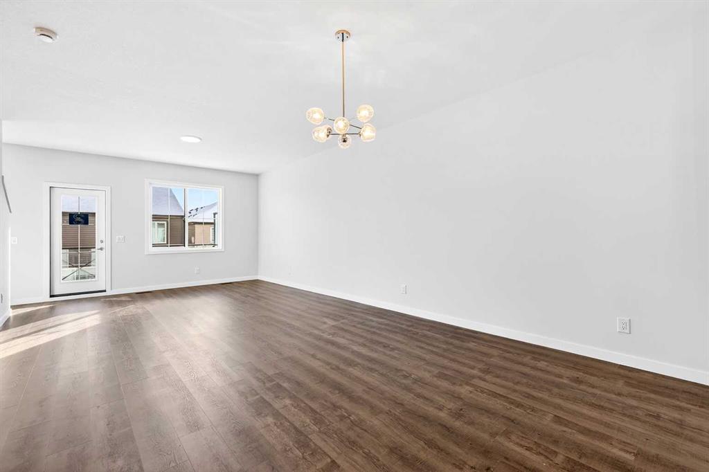 StreetSide proudly presents this highly desired interior-unit townhome that offers a sophisticated blend of expansive living space and elegant modern finishes. Designed with versatility in mind, the residence features four spacious bedrooms—including a convenient lower level bedroom ideal for guests or a home office—and two and a half well appointed bathrooms. The heart of the home is an open-concept main floor that flows seamlessly onto a private balcony, perfect for indoor-outdoor entertaining. Culinary enthusiasts will appreciate the chef-inspired kitchen, which comes standard with modern dark slab-style cabinetry, a full bank of storage drawers, polished white quartz countertops, and premium stainless steel appliances. The interior aesthetic is defined by contemporary durability, featuring luxury vinyl flooring throughout the primary areas and premium 8lb underlay carpet for added comfort on the stairs and upper level. Practicality meets luxury with a dedicated upper-level laundry room and an attached double car garage. Situated in the community of Rangeview, Calgary’s premier garden-to-table neighborhood, residents enjoy a unique village-like serenity paired with urban vibrancy. The development is centered around a lush courtyard garden and provides unparalleled connectivity to community greenhouses, pathways, and local markets. With immediate proximity to major transportation routes, schools, and parks, this home offers the perfect balance of comfort and convenience.
