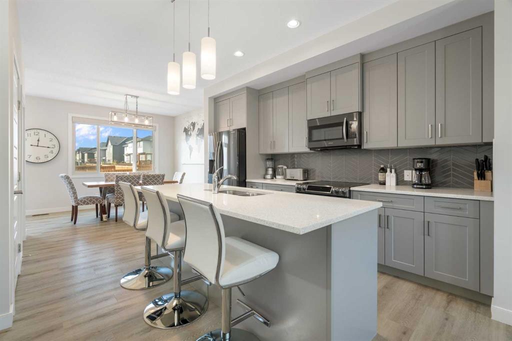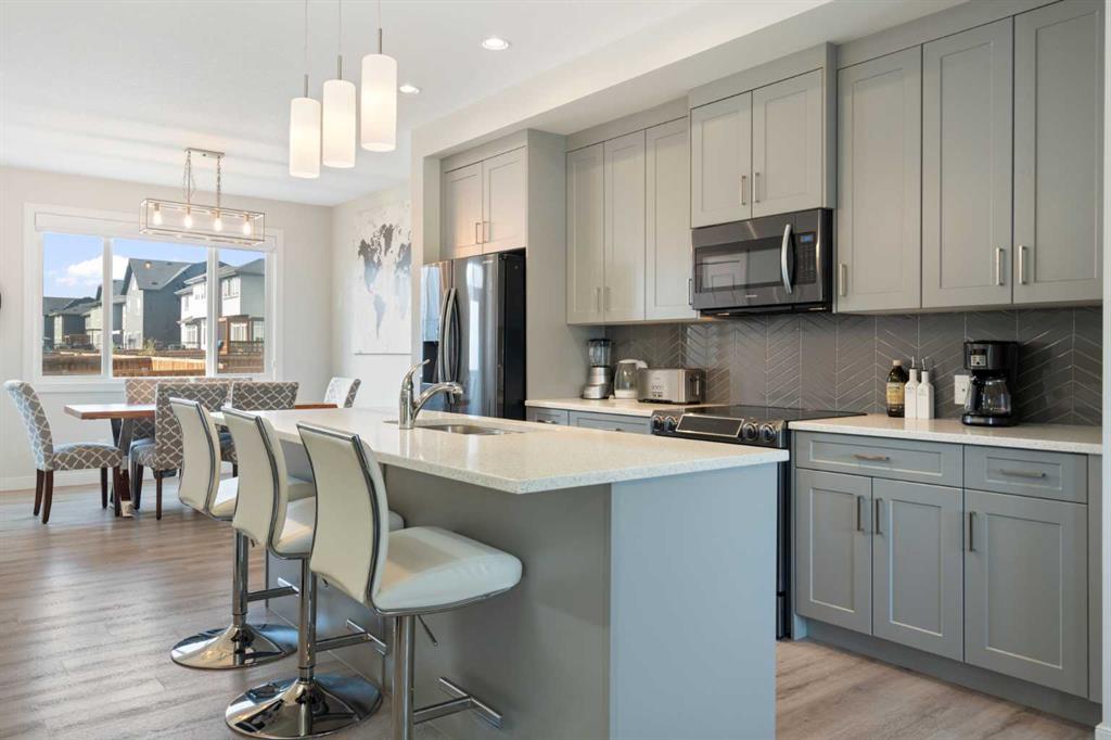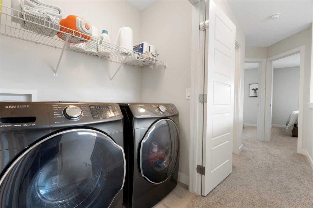 Welcome to 133 Heartland Boulevard in Cochrane. This beautifully designed 1,488 sq. ft. duplex, built by award-winning builder Pacesetter by Sterling Homes, combines modern style with practical function in the family-friendly community of Heartland. The home features a bright, open-concept layout with upgraded luxury vinyl plank flooring and a contemporary colour palette. The spacious kitchen is equipped with stainless steel appliances, quartz countertops in both the kitchen and bathrooms, and plenty of cabinetry for storage. The main floor flows seamlessly from kitchen to dining to living space, creating the perfect environment for everyday living and entertaining. Upstairs offers three generously sized bedrooms and two and a half bathrooms, including a serene primary suite with a walk-in closet and private ensuite. Every window is finished with upgraded roller shades, including blackout blinds in all bedrooms for a restful night’s sleep. The unfinished basement provides endless possibilities, ready for your personal touch. The property is fully landscaped and includes a double-car concrete parking pad at the rear. There is also Air Conditioning for the warmer days. Heartland is a vibrant community known for its open green spaces, parks, playgrounds, and walking paths. Families appreciate the nearby schools, shops, and restaurants, while commuters love the easy access to Highway 1A for quick trips into Calgary or west to the mountains. With the Rocky Mountains as a backdrop, Heartland offers the best of Cochrane living—nature, convenience, and community spirit.
