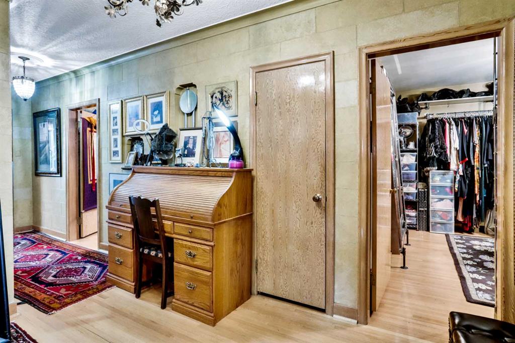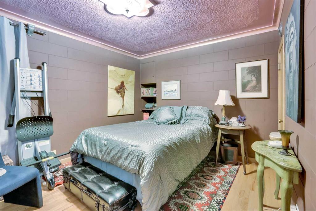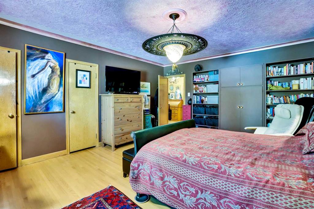 Huge, custom-built bungalow on Crescent Road, offering 1,890 square feet of living space with four bedrooms. Conveniently located within walking distance to SAIT, LRT, and nearby restaurants and schools, this home sits on a spacious corner lot that allows abundant natural light throughout the main living areas. The interior features elegant cornice ceiling moldings and three-quarter-inch oak hardwood floors, highlighted by a generous 21-foot formal living room featuring a brick wood-burning fireplace. Wonderful, large primary bedroom with dual closets, roomy hallway with classic wainscoting detail, while the fully developed basement offers an original one-bedroom illegal suite with its own living room and fireplace, along with ample storage, cold room, and a sizable laundry area. The private, fully fenced backyard, complete with two decks, perfect for large gatherings and enjoying summer evenings. Additionally, the highly-rated Rosedale K-9 school is less than half a block away, making this an exceptional opportunity to reside in Rosedale for under $1,000,000.