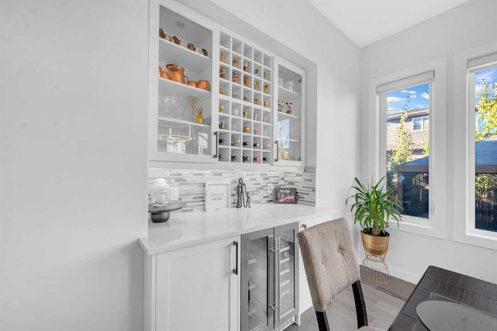 Welcome to this truly unique home in the Cornerstone community, offering 6 bedrooms, 4.5 bathrooms, and over 4,700 sq.ft. of luxurious living space on a premium corner lot. Built by Shane Homes, this one-of-a-kind property is loaded with high-end upgrades, exceptional craftsmanship, and abundant natural light throughout. The main floor features 10-ft ceilings, 8-ft solid doors, and large windows that flood the home with sunshine. The spectacular chef’s kitchen offers a huge island, premium built-in appliances, quartz countertops, and a full spice kitchen. Enjoy an elegant living room, grand family room, private office with built-ins, and an entertainer’s bar. Upstairs offers 4 spacious bedrooms, upgraded bathrooms, upper laundry, and a vaulted bonus room with custom media wall. The luxurious primary suite includes a spa-inspired ensuite and custom walk-in closet. The fully finished basement features 2 bedrooms, full kitchen, large living/dining area, separate laundry, private side entrance, oversized windows, and 9-ft ceilings—perfect for extended family or future income potential. Step outside to your beautifully landscaped backyard featuring a large deck, gazebo, lush green space, and plenty of mature trees for added beauty and privacy. Stunning gemstone lighting adds year-round curb appeal. Additional upgrades include Central A/C, heated garage, engineered hardwood, central vacuum, built-in speakers, and separate thermostat controls on all 3 levels. Close to schools, shopping, parks, major highways, and Calgary International Airport. A rare opportunity to own one of Cornerstone’s finest homes—book your private showing today!