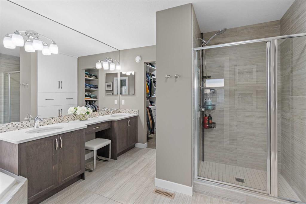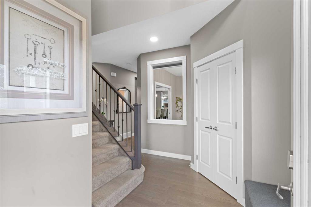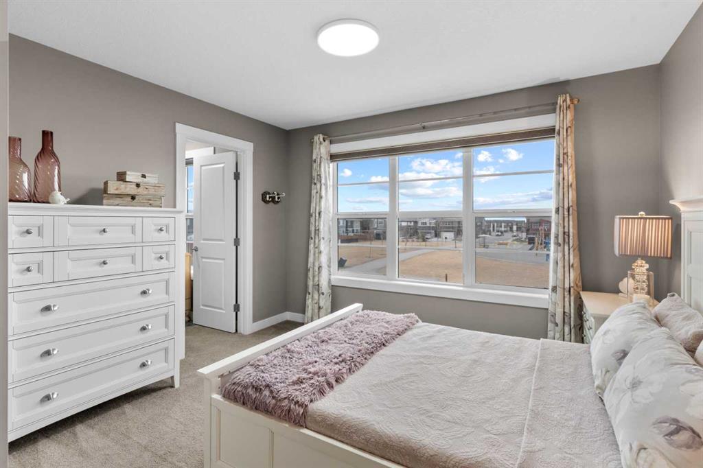 Welcome to this beautifully upgraded former Shane Homes SHOW HOME, perfectly situated on a quiet street and facing a kids playground in the heart of Cornerstone. Known for exceptional customization and craftsmanship, Shane Homes designed this property with thoughtful details throughout, making it truly feel like you are living in a show suite. This impressive home offers a double attached garage, four spacious bedrooms, two and a half bathrooms, and a newly developed two-bedroom LEGAL SECONDARY SUITE. From the moment you step inside, the grand entrance with high ceilings sets the tone for the elegance that follows. The main floor features a chef-inspired kitchen with built-in stainless steel appliances, custom cabinetry with crown molding, a large central island, and a walk-through butlers pantry with additional custom storage. A formal dining room, casual dining nook, bright and luxurious living room with a gas fireplace, functional mudroom, and a convenient two-piece bathroom complete the main level. Upstairs, the home opens into a massive family room that is ideal for gatherings or relaxing. Four generously sized bedrooms provide ample space, while the thoughtfully designed laundry room includes custom counters and cabinetry. The primary suite is a true retreat, featuring a spa-like ensuite with double vanity, a mirror extended to the ceiling, a stand-up shower, a relaxing soaker tub, and a large walk-in closet with custom cabinetry. The additional three bedrooms are bright, comfortable, and offer excellent closet space. The recently developed basement features a legal two-bedroom suite with its own full kitchen, stainless steel appliances, separate laundry, comfortable living area, and a three-piece bathroom, which is perfect for extended family or rental income. Additional upgrades include a water softener, water purifier, and central air conditioning, providing enhanced comfort and convenience year-round. Outside, the home sits on a desirable corner lot and includes a fully fenced and landscaped backyard with a large deck and pergola, creating an ideal setup for enjoying summer evenings. With the playground right across the street, this location is perfect for families seeking both community and lifestyle. Residents enjoy close proximity to Chalo Freshco, the future Gurdwara, the community pond, restaurants, schools, and several commercial plazas. Quick access to Stoney Trail and Country Hills Boulevard makes commuting easy, while CrossIron Mills, Costco, and the Calgary Airport are only a short drive away. This property is truly a must-see. Experience the quality, upgrades, and design that make this former show home stand out. Book your showing today.