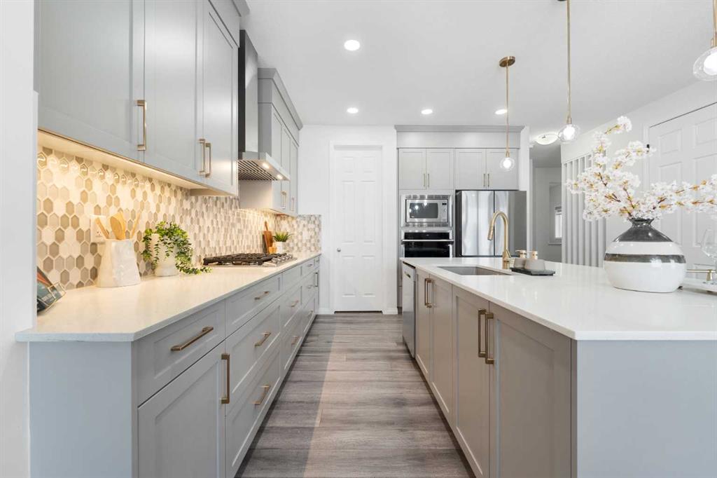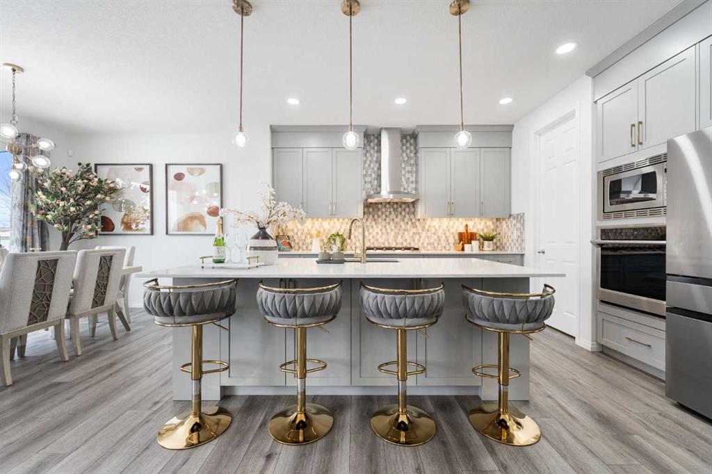 Luxury Living Backing Onto Serene Green Space Experience elevated living in this stunning luxury residence designed with elegance, comfort, and functionality in mind. Perfectly positioned backing onto tranquil green space with no rear neighbors, this exceptional home offers privacy, beautiful views, and a peaceful setting rarely found. From the moment you enter, you are welcomed by soaring 9-foot ceilings and impressive 8-foot doors that create a grand, open atmosphere. The thoughtfully designed main floor showcases office/flex room, Powder room and a seamless open-concept layout ideal for both everyday living and entertaining. The chef-inspired kitchen is beautifully appointed with built-in appliances, premium finishes, and sophisticated gold fixtures that add a touch of modern luxury throughout the home. With 6 spacious bedrooms and 3.5 bathrooms, this home offers exceptional flexibility for large families or multi-generational living. The property also features a fully legal 2-bedroom basement suite, providing an outstanding opportunity for rental income, extended family accommodation, or investment potential. Completing the home is a double attached front garage and a location that perfectly balances nature and convenience. This remarkable property blends luxury upgrades, thoughtful design, and income potential, making it a rare opportunity for discerning buyers seeking both style and value.