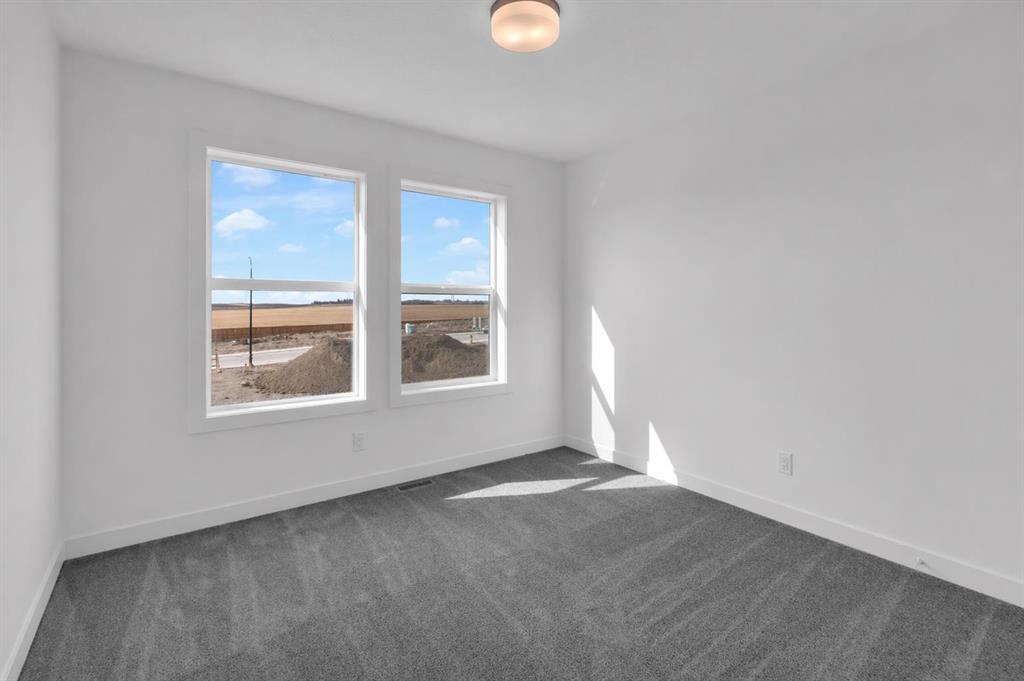 Set in the welcoming community of South Point, this beautifully designed home offers just over 2,100 sq ft of comfortable living with 3 bedrooms and 3 bathrooms. Surrounded by quiet streets, nearby schools, a dog run, and quick access to the highway for an easy commute to Calgary, it’s a location that supports both your lifestyle and your routine. The main floor offers 9' ceilings and a bright open layout that feels easy to live in and perfect for gathering. The kitchen is thoughtfully finished with quartz countertops, ceiling height cabinetry, and upgraded details that bring both style and function together. A built deck extends your living space outdoors, creating the perfect spot to unwind or host. The main floor also includes a dedicated office and a full 3 pc bathroom, adding flexibility and convenience. Upstairs, vaulted ceilings add character and openness, while the layout provides comfortable space for family and guests. An upgraded spindled staircase adds a refined touch and enhances the overall design. The basement also offers 9' ceilings along with a separate side entrance. A home that brings together comfort, thoughtful upgrades, and a location that truly works for everyday life.