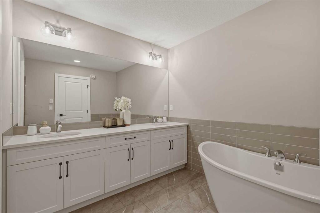 **2,423 SQ FT | 5-BED | 3-BATH | MAIN FLOOR BED & FULL BATH | SPICE KITCHEN | HARDIE BOARD SIDING | REAR DECK | FRONT LANDSCAPING | BUILDER WARRANTY** This Crystal Creek home delivers more style and space where it matters in the growing community of Belvedere. The open concept layout is anchored by a large gourmet kitchen with an oversized island, extensive cabinetry, a walk in pantry and dedicated spice kitchen that keeps prep separate from entertaining. The main level bedroom adds flexibility for guests, extended family or a private office. Upstairs, a central bonus room separates the bedrooms, while the spacious primary suite features a deluxe ensuite and generous walk in closet. Three additional bedrooms, a main bath and upper level laundry with washer and dryer complete the upper level. A side entrance and 9 foot basement ceilings offer strong potential for a future legal basement suite, subject to city approval and permitting. Backing onto open space with no rear neighbours, this home includes a rear deck, front landscaping and durable Hardie Board siding rarely found in the community. Located in southeast Calgary’s growing Belvedere community with quick access to Stoney Trail and East Hills amenities, and protected by builder warranty, this is a well designed home with flexibility built in. Contact us to arrange your private showing