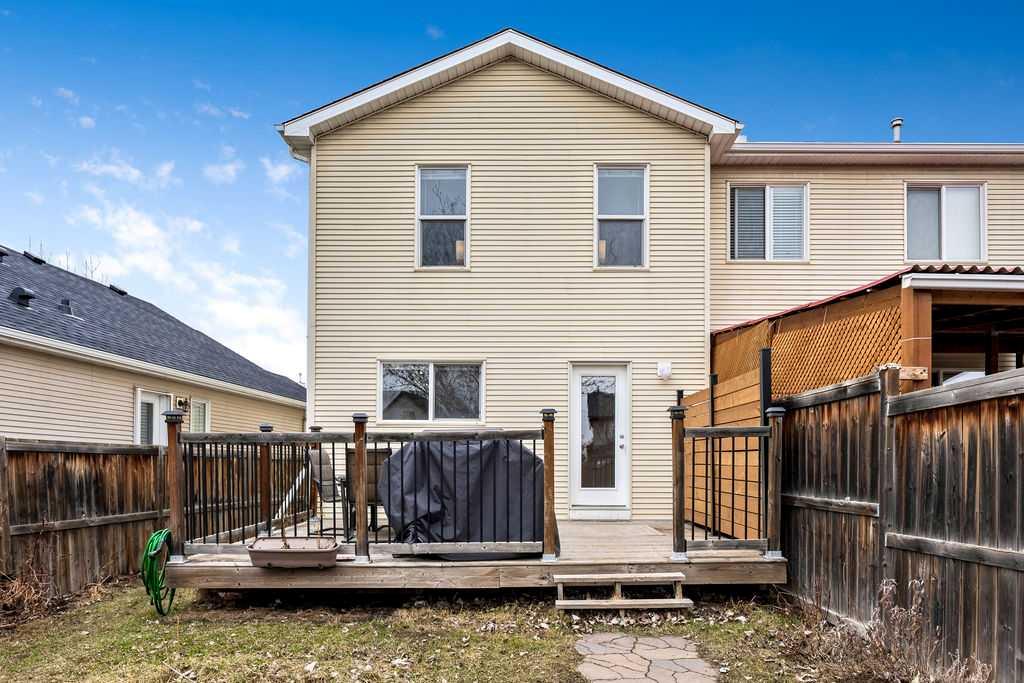 **Offer Received, Property is now Pending** Welcome to this bright & beautifully maintained semi-detached home in desirable community of Cranston—offering an incredible opportunity for buyers looking to get into the market without sacrificing lifestyle. Ideally located just steps from Parks, scenic Walking Paths, Public & Catholic Schools, and tons of great Amenities, this home delivers both convenience and community. Step inside to a sun-filled, open-concept main floor designed for comfortable everyday living. Spacious living area flows seamlessly into the dining space and a functional kitchen complete with a central Island and ample cabinetry. Large windows and patio doors bring in plenty of natural light, while dual closets near the back entry add practical storage. Step outside to your South-Facing, fully Landscaped and Fenced backyard, featuring a full-sized deck—perfect for summer BBQs and entertaining. The gravel pad provides off street parking and plenty of space for future double garage. A convenient 2-piece bath completes the main level. Upstairs, you’ll find two oversized bedrooms, each thoughtfully designed with generous closet space. The primary bedroom features dual closets and direct access to a cheater en-suite, while the second bedroom impresses with its own Walk-in closet—ideal for roommates, guests, or a growing family. The undeveloped basement offers a blank canvas, ready for your personal touch—whether that’s extra living space, a home gym, or added storage. Additional Upgrades include: Central vacuum with attachments, Water softener & Reverse Osmosis system, new Hot Water Tank (2024) and New Roof (2023). Plus enjoy exclusive access to Cranston Residents Association is a 22,000 sq. ft. community hub with gymnasium, banquet rooms, skating rink, splash park, and tennis courts. Welcome to your new home! Call today to book your showing!