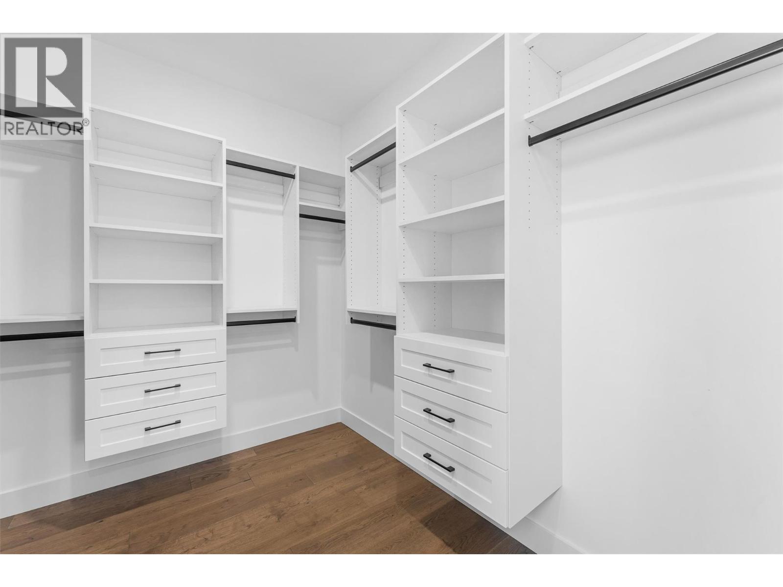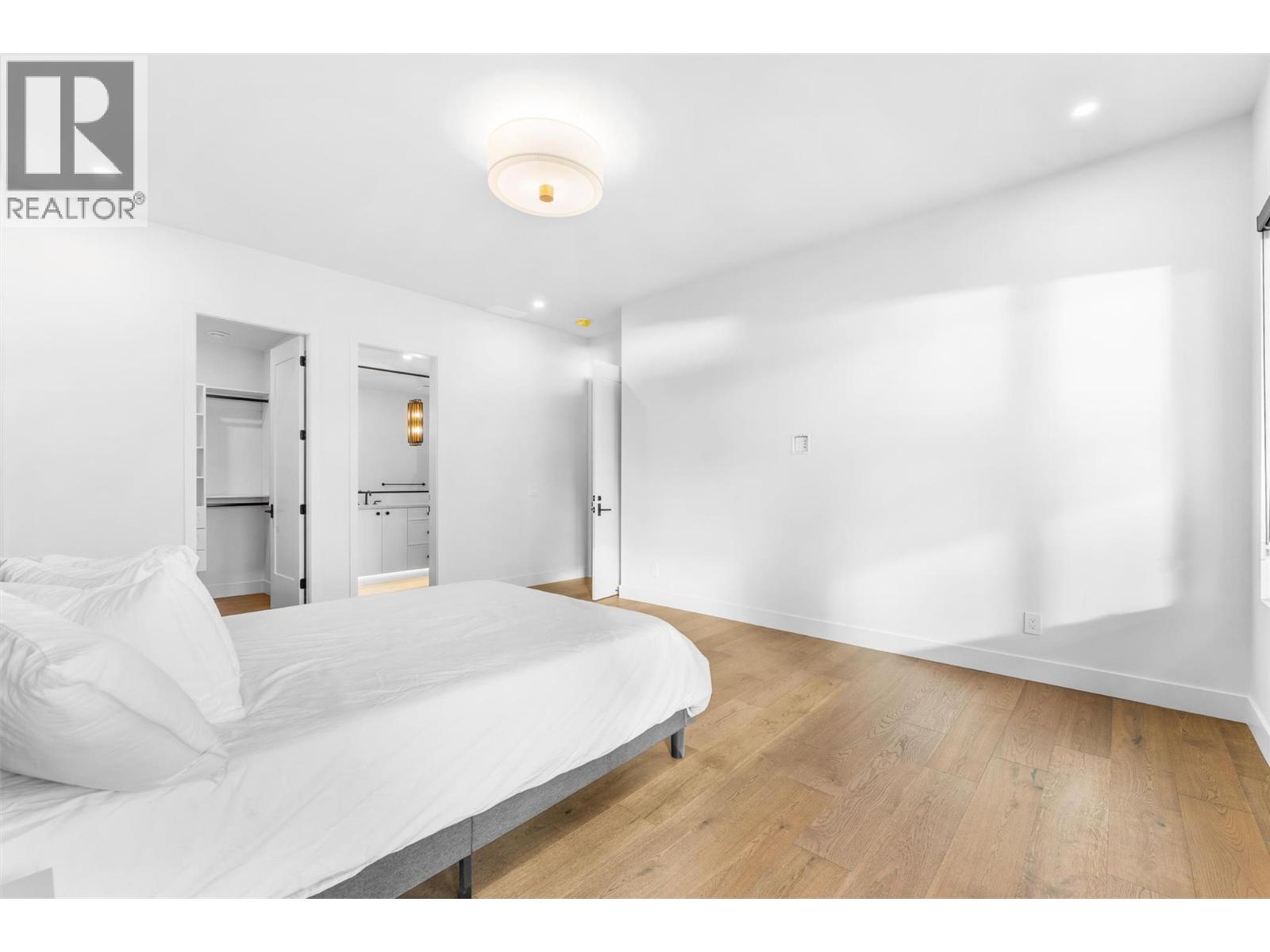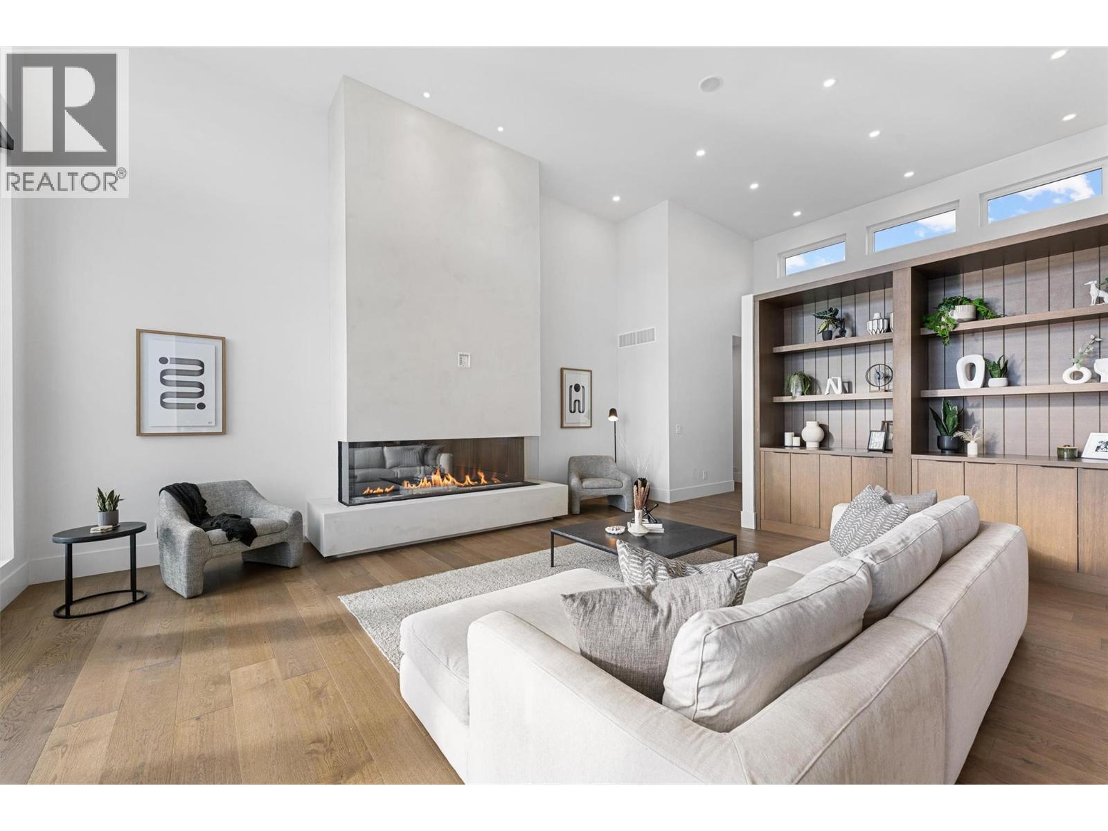 Perched in Vineyard Estates with sweeping views of Lake Okanagan and scenic Mission Hill Estate Winery, this modern home blends contemporary design with exceptional craftsmanship. Minutes to beaches, world-class wineries, parks, and the hiking and biking trails of Mount Boucherie, it offers an ideal Okanagan lifestyle. The main level features soaring ceilings, wide-plank hardwood, and floor-to-ceiling windows framing panoramic vistas. A floor-to-ceiling feature fireplace anchors the living area alongside custom built-ins and power blinds. The chef’s kitchen impresses with Caesarstone surfaces, a dramatic backsplash, Wolf + JennAir appliances, a large island, and a fully equipped butler’s pantry. Walkout access to a covered view deck with speakers, wood ceiling inlay, and BBQ hookup. The lakeview primary is a serene retreat with a walk-in closet and a stunning 5-piece ensuite with heated floors, floor-to-ceiling tile, and a dramatic glass wall. A second bedroom with ensuite and an office complete the main level. The lower level is designed for connection with two additional bedrooms (1 has ensuite), a luxe 4-piece bath and a spacious rec room with custom wet bar, wine display, and nano doors opening to a pool deck. Outside, enjoy a sunken hot tub, concrete 14x28 saltwater pool (power-cover ready), and unobstructed glass-railed views. With upgraded lighting, 8-ft doors, abundant storage, and a 3-car garage, this residence delivers refined Okanagan living.