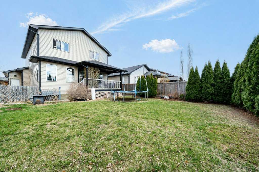 Welcome to this beautiful 1966 sq. ft. of developed home blends comfort, functionality, and lifestyle. This two-story home, perfectly positioned in an incredible location backing onto a peaceful park. The open-concept main floor showcases a spacious kitchen featuring a raised island, stainless steel appliances, and a walk-in pantry, all flowing seamlessly into the inviting great room with a cozy gas fireplace and built-in cabinetry. Enjoy the convenience of main floor laundry, central vacuum with butler sweep, and plenty of well-designed storage throughout. Upstairs, the primary suite is a true retreat with a vaulted ceiling, walk-in closet, and private deck perfect for morning coffee or evening relaxation. The spa-inspired ensuite offers a corner jetted tub and a large walk-in shower. Two additional generously sized bedrooms—complete with built-in desks—along with a full bathroom and elegant stair lighting, complete the upper level. The fully developed basement expands your living space with a large rec room, two additional bedrooms (with egress windows), a 3-piece bathroom, and convenient under-stair storage. Step outside to your fully fenced backyard oasis featuring a covered deck, dog run, and direct access to green space. The insulated double attached garage and large driveway provide ample parking. Additional Features: Central A/C, Alarm system, Shingles approximately 4 years old, Hot water tank (1 year old), humidifier. Spacious, functional layout Located in a highly desirable neighborhood close to parks, walking paths, and the new Ken Sauer School, this home truly checks all the boxes. The home is listed at an attractive price! Do not miss this opportunity. Property sold where is as is. Book your viewing today!!