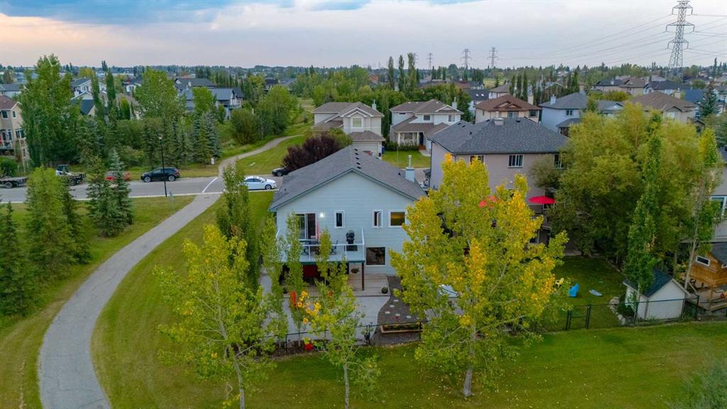Welcome to your immaculately maintained, lovingly cared-for park-backing and siding walkout bungalow in the wonderful community of West Creek in Chestermere. Offering over 1,900 sq. ft. of developed living space, this home features 4 bedrooms (2 up and 2 down), 3 full bathrooms, a fully developed walkout basement, and an extra-long double attached garage. All the amenities you need are just minutes away including groceries, coffee shops, restaurants, and big-box stores. Families will appreciate the convenient location, with Rainbow Creek Elementary, Our Lady of Wisdom Catholic School, Chestermere Lake Middle School, and East Lake School (French Immersion) nearby. Enjoy the community’s extensive pathway network, parks, playgrounds, and Chestermere Lake for year-round recreation. The main floor showcases an open-concept kitchen, dining, and living area featuring luxury hard surface flooring, updated designer paint, stainless steel appliances, quartz countertops, designer-selected backsplash, cozy fireplace, and large windows that fill the space with natural light. The primary bedroom overlooks the park and offers a spacious ensuite with a walk-in shower, soaking tub, and dedicated makeup area. A second bedroom and full bathroom complete the main level. The fully finished walkout basement offers a comfortable media room, laundry area, two additional bedrooms, and a third full bathroom. The yard is truly exceptional - backing and siding onto a beautiful park with mature trees, walking paths, and plenty of privacy. The upper patio and lower walkout deck create an ideal setting for outdoor relaxation and entertaining, blending indoor comfort with outdoor charm. This is a fantastic family home in a perfect location, ready to welcome its next owners!