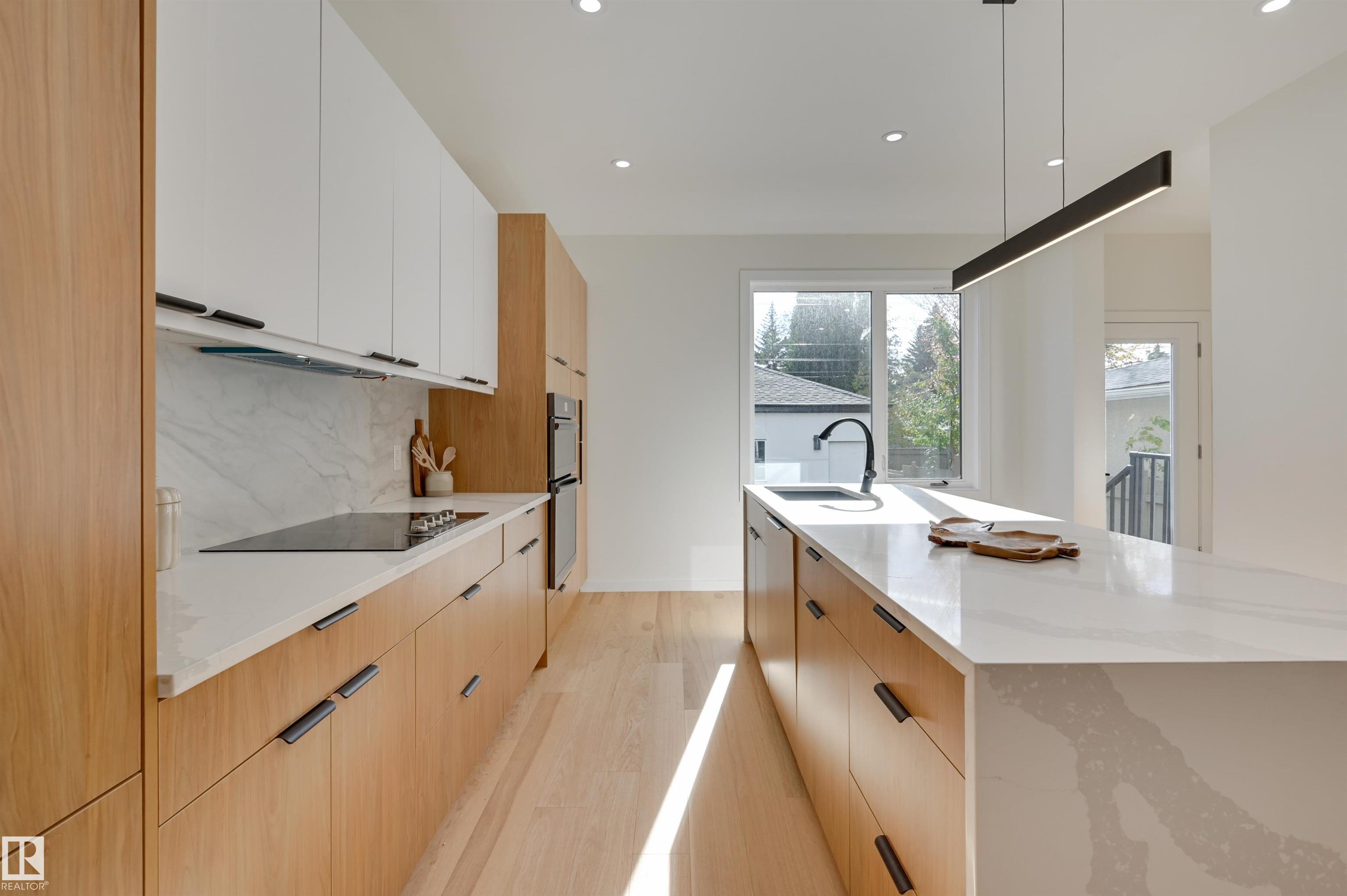 New HOME in Laurier Heights! This beautifully built 2 storey home offers over 3400 sq ft of thoughtfully designed living space. The main floor features a grand open-concept living & dining area that flows seamlessly into the kitchen overlooking the backyard. The kitchen includes a waterfall island, custom cabinetry, integrated fridge, double ovens, & walk-in pantry. The back entry provides convenience and easy outdoor access. Upstairs, you’ll find a loft, laundry rm, serene primary bedroom with walk-in closet and relaxing ensuite, plus 2 spacious bedrooms—each with its own ensuite. Additional Upgrades: premium Belgian waterproof hardwood, artist-finished patina walls, & full spray foam insulation ensure beauty, efficiency, & quiet throughout. The 2-bedroom legal basement suite includes a private entrance, full kitchen, laundry, —ideal for rental income, extended family, or home business. Situated in Laurier Heights, just steps from the River Valley, the Zoo, parks, trails & schools.