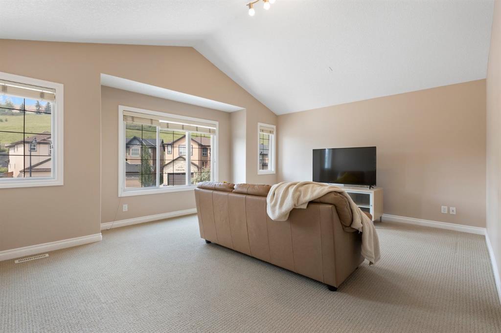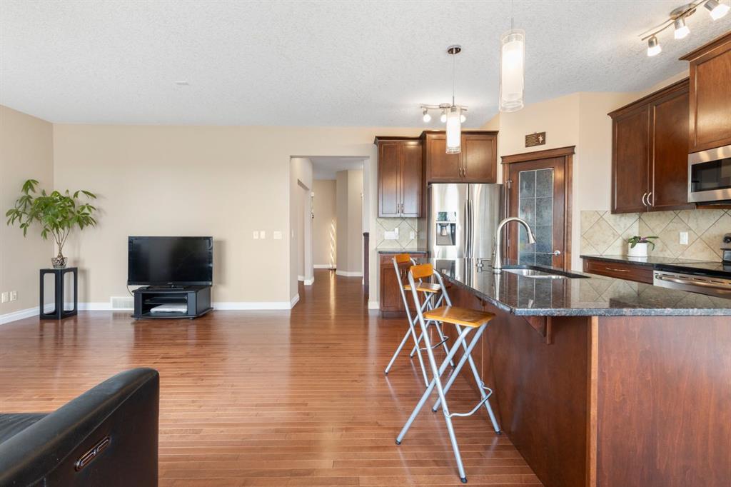 Welcome to this spacious and versatile family home featuring a desirable walk-out basement, rare triple attached garage, and energy-efficient solar panels — perfectly located on a quiet street in the sought-after community of Sherwood. Offering over 3,200 sq ft of total living space, this beautifully maintained 2-storey is ideal for large or multi-generational families, combining comfort, functionality, and long-term savings. From the moment you arrive, you’ll appreciate the charming curb appeal, oversized driveway, and inviting stone-accented exterior. Inside, the bright and functional main floor showcases rich hardwood floors, a grand foyer, a front flex room — ideal for a home office — and an open-concept living area anchored by a cozy gas fireplace. The well-appointed kitchen features maple cabinetry, granite countertops, stainless steel appliances, a corner pantry, and a spacious dining area that opens onto a large upper balcony — perfect for outdoor dining and entertaining. A convenient main floor laundry room completes this level. Upstairs, a generous bonus room with vaulted ceilings and oversized windows provides a great space for movie nights or a playroom. The upper level offers four bedrooms, including a spacious primary suite with peaceful views, a spa-inspired ensuite with dual sinks, soaker tub, separate shower, and walk-in closet, plus a full bathroom for the secondary bedrooms. The fully finished walk-out basement expands your living space with stylish laminate flooring, a large recreation room with built-in dry bar, one bedroom, a flex room, and a full bathroom. The walk-out leads to a covered patio and a fully fenced backyard with raised garden beds — perfect for kids, pets, and gardeners alike. Additional highlights include updated lighting, ample storage, and a thoughtful focus on energy efficiency with solar panels helping to reduce utility costs. Enjoy easy access to parks, scenic pathways, schools, shopping at Beacon Hill and Sage Hill, plus quick routes to Stoney trail and other major roadways to downtown, airport and beyond. Don’t miss this opportunity to own a fully finished six-bedroom-equivalent walk-out home with triple garage in one of NW Calgary’s most desirable family communities!