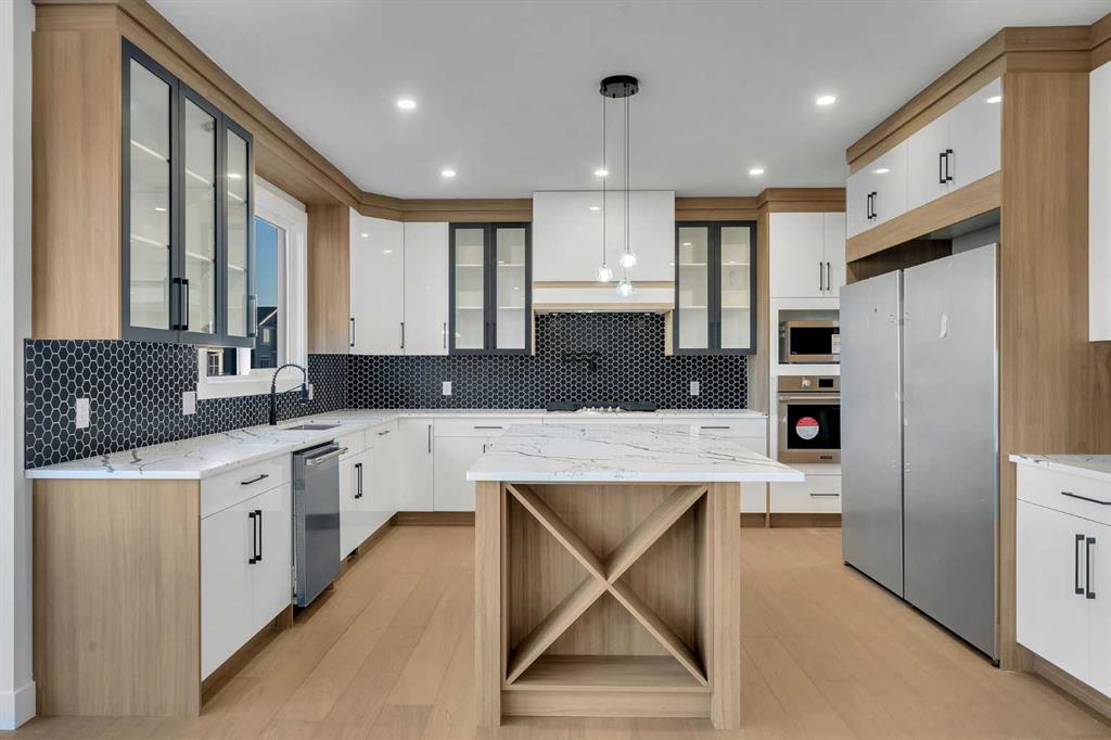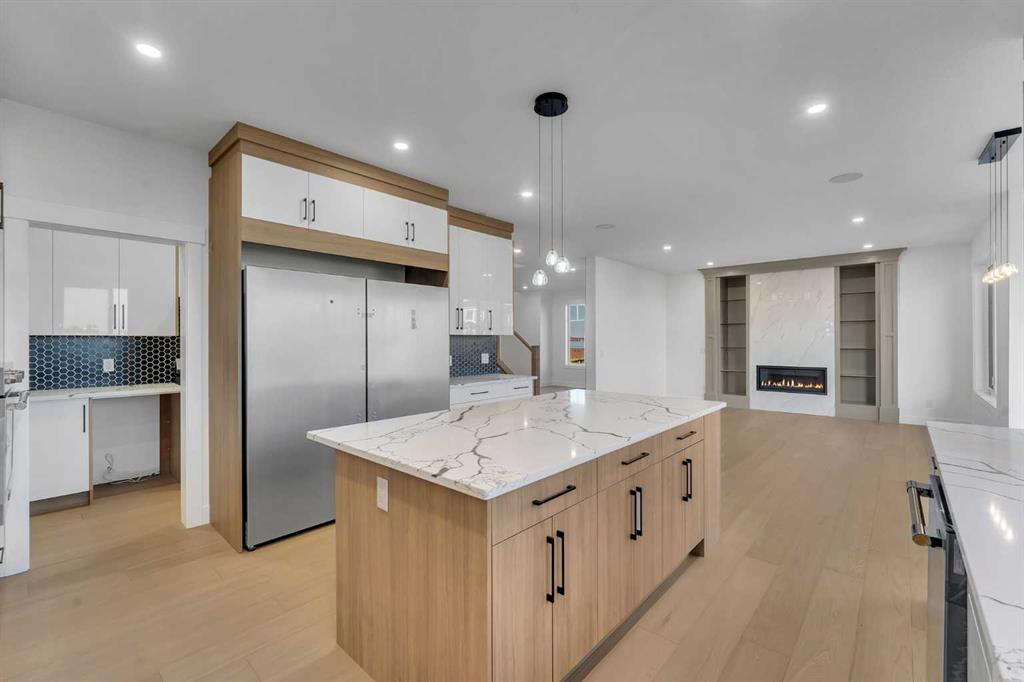 [OPEN HOUSE THIS SUNDAY- MARCH 01 - 2PM TO 4PM] NEW BUILT!! IN SOUTH SHORES!! BACKING ONTO WALKING PATH!! NEAR CHESTERMERE LAKE!! CORNER LOT!! LEGAL SUITE BASEMENT!! SEPARATE ENTRANCE!! TRIPLE ATTACHED GARAGE!! SEPARATE LAUNDRY!! 3 MASTER BEDROOMS!! 7 BED / 5 FULL BATHS!! MAIN FLOOR MASTER!! This beautifully designed corner-lot home in South Shores offers space, luxury, and income potential — all in one. The main floor features a bright family area with gas fireplace, a stunning kitchen with huge island, built-in features, full-height cabinetry, pantry, and a spice kitchen. A rare main-floor primary bedroom with 3PC ENSUITE plus a 2PC powder room completes this level. Upstairs offers 4 SPACIOUS BEDROOMS & 3 FULL BATHS, including a grand primary suite with walk-in closet and 5PC ensuite, another bedroom with its own 4pc ensuite, and two more bedrooms sharing a convenient 5PC bath. Upper-floor laundry adds everyday convenience. The LEGAL SUITE BASEMENT WITH SEPARATE ENTRANCE includes 2 bedrooms, a full kitchen, rec area, SEPARATE LAUNDRY, and 1.5 BATH. Finished with a clean, modern colour theme throughout. AN INCREDIBLE OPPORTUNITY NEAR CHESTERMERE LAKE — LUXURY, SPACE & LEGAL SUITE ALL IN ONE HOME!!