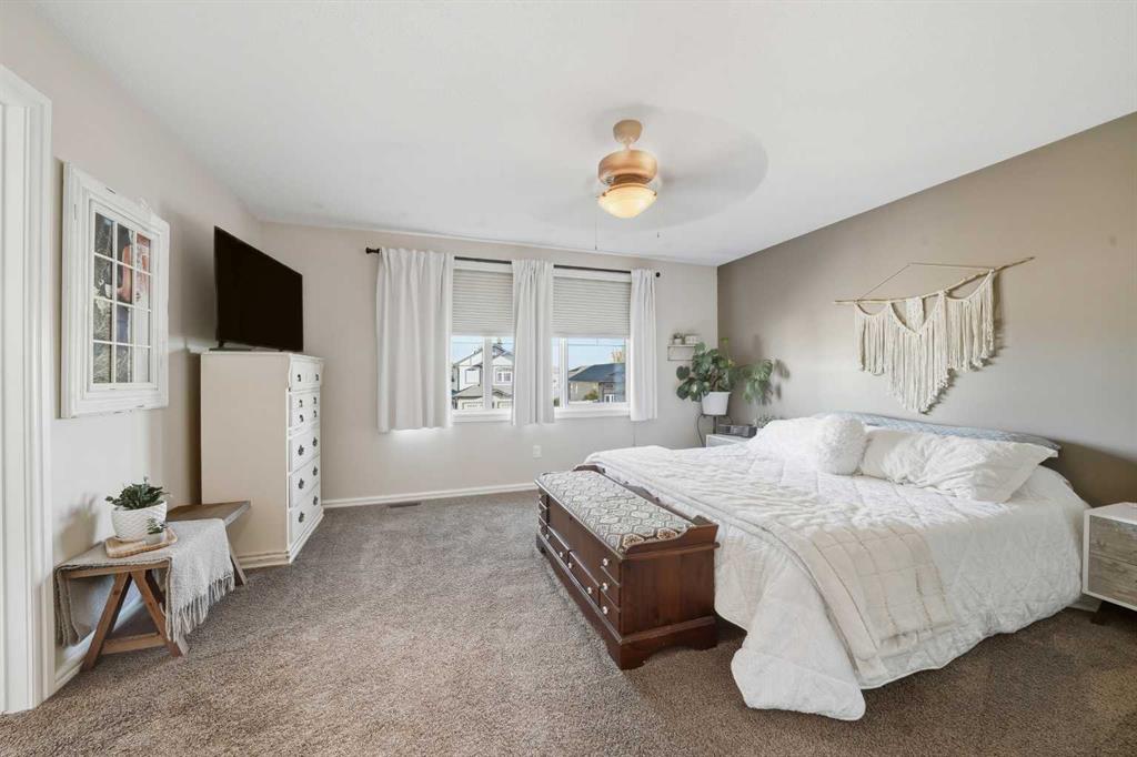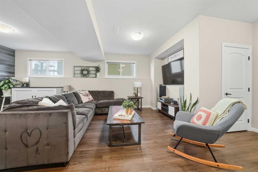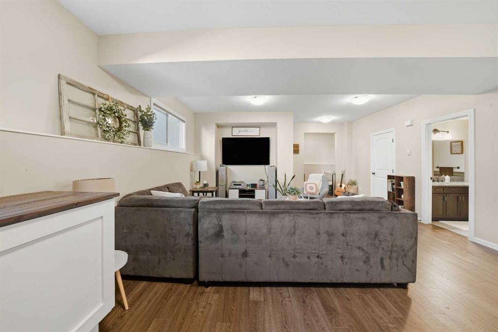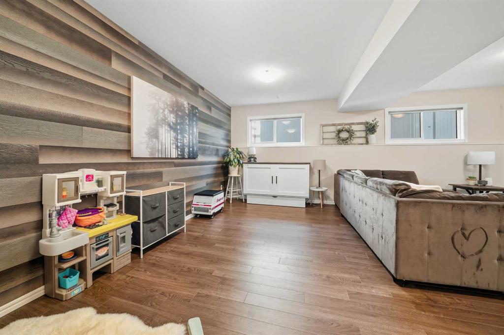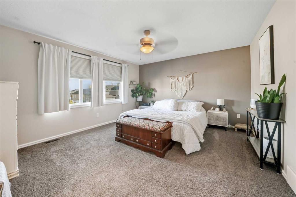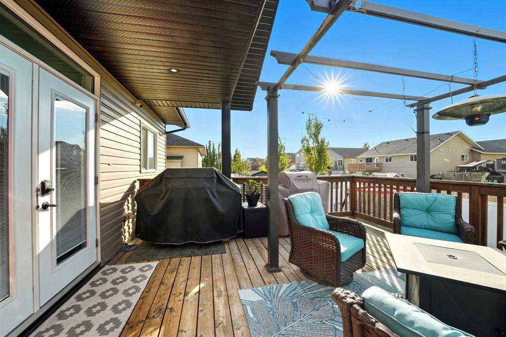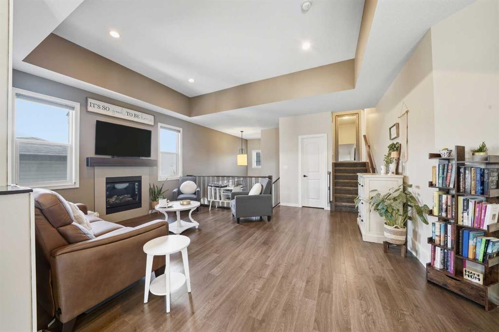 Pride of ownership is evident the moment you step inside this stunning custom-built modified bi-level. The spacious, bright foyer with tile flooring immediately sets the tone for the modern style and thoughtful design carried throughout this home. The open-concept main floor features a gorgeous kitchen with stained maple cabinetry, granite countertops, and stainless steel appliances. The living room impresses with its soaring 14-foot ceilings, creating a warm, inviting atmosphere centered around a cozy fireplace — perfect for relaxing or entertaining. This level includes two bedrooms, convenient for the kids . The primary suite is a true retreat, privately located above the garage and offering a luxurious ensuite with a soaker tub, separate shower, and a massive walk-in closet. The fully finished basement adds even more living space with an additional bedrooms, a spacious family room, a large bathroom, and the comfort of in-floor heating. Quality craftsmanship and attention to detail are showcased throughout, including matching granite in all bathrooms, central A/C, and custom blinds. Outside, you’ll find a beautifully landscaped and fully fenced yard with a storage shed, plus a heated triple garage and an oversized front parking pad — ideal for extra vehicles or toys. This home truly combines luxury, comfort, and functionality in one impressive package.