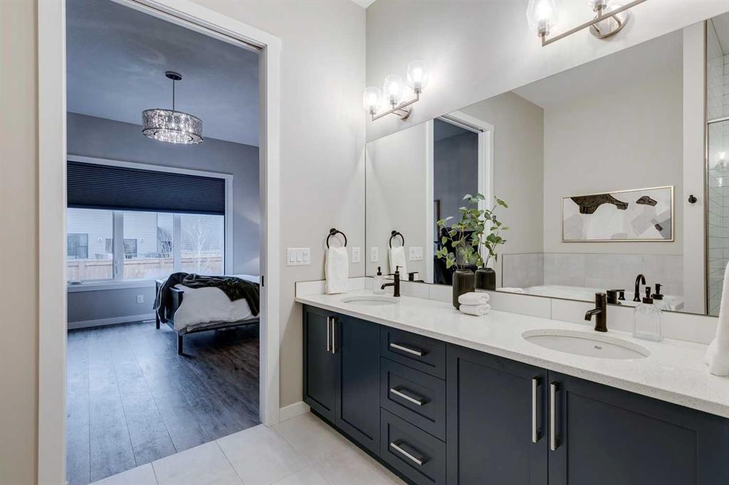 Adaptable Living! Offering the perfect blend of style, comfort, and functionality in this 1,450+ SQFT custom-built villa in Cranston’s Riverstone. Impeccably maintained and showcasing nearly-new condition, this spacious open-concept home has 10' ceilings and is designed for effortless everyday living and easy entertaining. At the heart of the home, a chef-inspired kitchen features abundant custom cabinetry, stainless steel appliances including gas range, expansive quartz countertops plus a large central island with seating that is ideal for gathering with friends or family. The dining area easily accommodates six or more guests, creating a warm and inviting space for holidays and dinner parties. The living room centres around a beautiful gas fireplace and flows seamlessly through sliding doors to the outdoor deck, complete with a covered pergola and fully-landscaped yard. The light-filled primary suite offers a serene retreat with a generous 5pc ensuite featuring a large tiled walk-in shower, deep soaking tub, and dual vanities with generous storage. A well-appointed walk-in closet provides ample space for future built-ins or customization. Additional highlights include a stylish powder room with a custom vanity designed for accessibility, low-maintenance luxury plank flooring throughout, an upper-level laundry room (including wash sink), and custom Hunter Douglas window coverings. The fully-finished lower level expands your living space with a generous family and games area, built-in bar with beverage fridge, and two large bedrooms anchored by a full bathroom; each with walk-in closets. A bright flex room provides versatility for a third guest room, home office, or gym/yoga space, along with a large storage area. This home thoughtfully incorporates accessibility features, including comfortable maneuverability throughout the main floor, a lift in the garage, and an accessible bathroom. This provides an ideal set-up for those with mobility needs or multi-generational families. These features blend sleeplessly and stylishly into the home or can be easily removed prior to possession if desired, offering flexibility for any buyer. No condo fees and low-maintenance landscaping are added bonuses!
