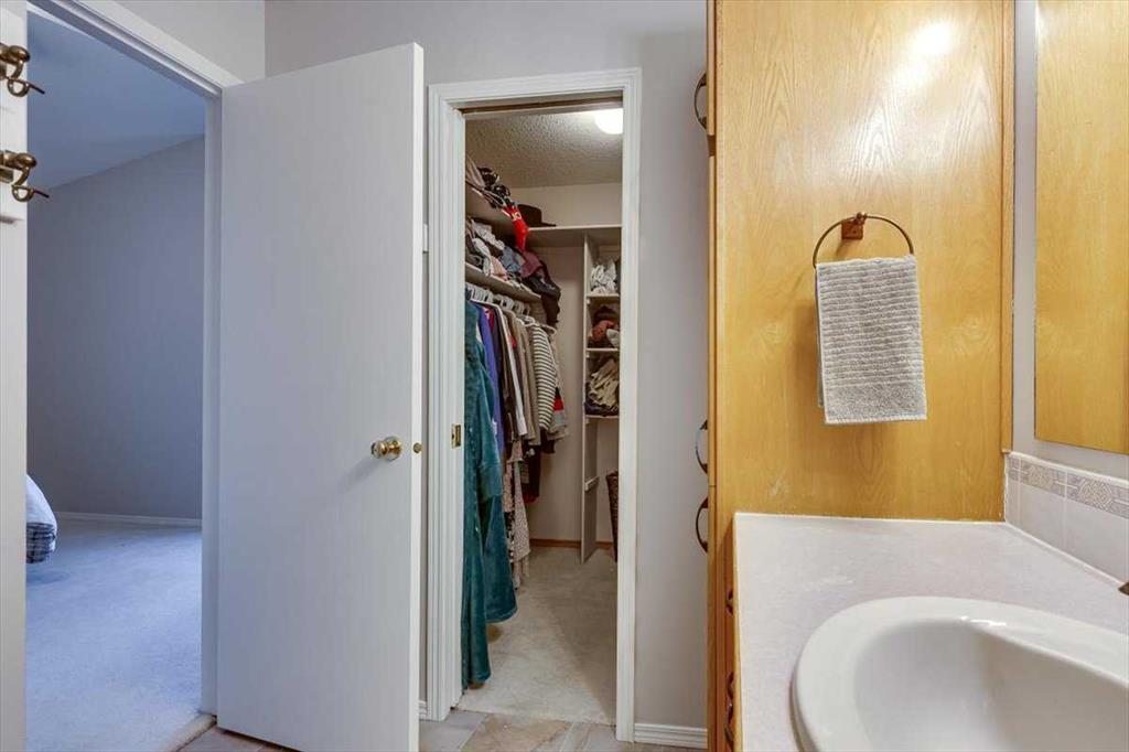 Welcome to this spacious and inviting 5-bedroom half duplex, perfectly designed for comfortable everyday living. This nearly 1300+ sq ft modified bi-level features a bright south-facing living room with a gas fireplace, and a well-appointed kitchen with plenty of counter space, a breakfast bar, and access to the oversized deck — perfect for BBQs and outdoor gatherings. Two storage sheds offer plenty of room for all your outdoor essentials. Two bedrooms and a full bath are located on the main floor, while the primary bedroom is tucked away on its own upper level complete with a 3-piece ensuite and walk-in closet. The fully finished basement includes in-floor hot water heat, a cozy family room, two additional bedrooms with walk-in closets, a 3-piece bath, and laundry. Thoughtful updates over the years include the furnace, central air conditioning, shingles, fence, and fresh interior paint. The double attached, insulated garage is a true bonus, complete with hot/cold water and a floor drain, and the extended driveway provides plenty of additional off-street parking. Located just a short walk to the Collicutt Centre and nearby high schools, and only minutes to grocery stores, coffee, and restaurants — this is a fantastic opportunity to own a well-cared-for home in a convenient, family-friendly neighbourhood.