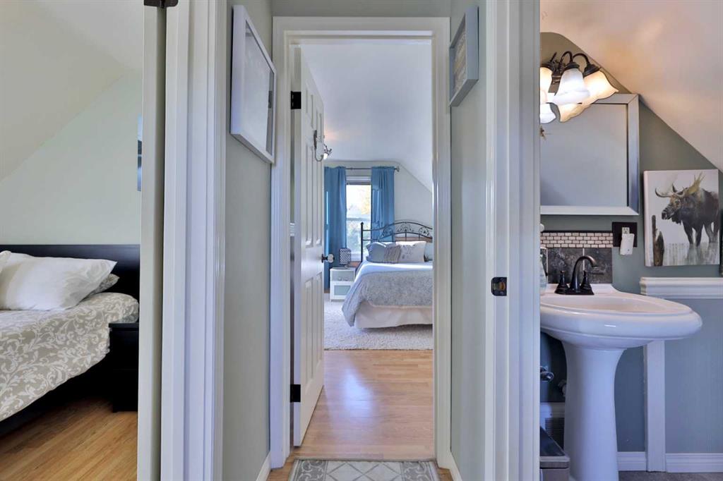 Located near one of Central Albertas most popular Lakes, this adorable Gull Lake two-story home in the Sunnyside subdivision offers charm, comfort, and great investment potential. Currently a successful Airbnb, it features two bedrooms upstairs and two full baths. The bright, open main floor is perfect for relaxing after a day at nearby Gull Lake or on the golf course. The well appointed kitchen provides views of the golf course and the living room flows perfectly through patio doors onto the large back deck. The laundry and a 3 pc bath with custom tiled shower are located conveniently on the main floor for easy cleanup after a day in the yard or at the Beach. The upstairs bedrooms have the space to accomodate extra pull out beds if needed, as well as another 4 piece bath. Set on a huge treed lot backing directly onto the fairway, the property provides a relaxing and true country vibe. With an attached garage, private well, and septic system, this home is both practical and inviting—ideal as a year-round residence, weekend retreat, or income-generating getaway. New main floor tile in 2025, High efficiency furnace, mostly vinyl windows. Loads of parking on the front pad
