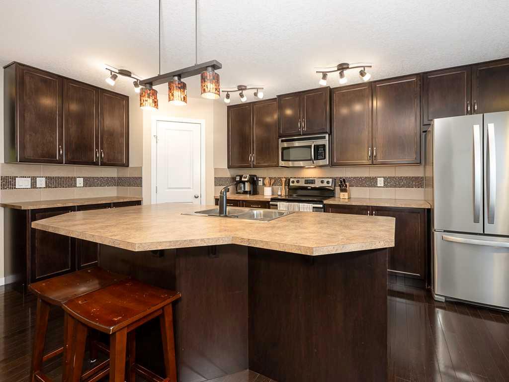 Two and ½ Story properties in Walden only come up for sale once or twice each year! This fantastic 2 1/2 story immaculate 4 bedroom, 5 bathroom family home with over 2,800 square feet including the basement development is perfect for the growing family in highly sought after Walden! Close to schools and shopping. Easy access to ring road (Stoney Trail), MacLeod Trail and Highway 22X. Photos speak for themselves but here are some of the features. The kitchen is bright and spacious with an eating area, an island for quick snacks before leaving for school or work and easy access through the door leading to the awesome deck with a pergola. The double garage beyond is just off the deck. The kitchen has a walk-in pantry and a unique island that can seat 4 or 5. The entire main floor has wood flooring. The spacious area next to the door leading to the deck lends itself well for possibly a café table. Basement development is professionally done with lots of storage and a tiled alcove for an upright freezer. Basement is all carpeted except the laundry room and the 2 piece bath. The second level has the primary bedroom plus two more bedrooms all with walk-in closets and plenty of shelving. The primary bedroom ensuite shower has a built-in seat. The third upper level has a 4-piece bath, 4th bedroom also with a walk-in closet which is currently used as an office by the owners. Two final general comments, the yard is low maintenance and there is a new hot water tank installed in 2024! Call your REALTOR® for a showing today! Don’t miss out on this unique family home!