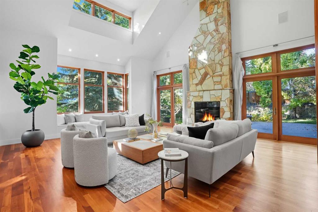 Are you looking to live in the exclusive, prestigious community of Bel-Aire? This is your chance to experience this amazing community of tree lined streets, luxury homes. This home is steps away from the Glenmore Reservoir and Calgary County Club. Situated on a massive over 12,000 sq/ft corner lot in a quiet cul-de-sac, this home offers over 5,800 sq/ft of TOTAL LIVING SPACE. As soon as you step inside the warm interior, you will feel at home. The front foyer is bathed in natural sunlight, and connects you with every corner of the house. The custom kitchen boasts double-stacked granite counter-tops, stainless steel appliances, and a paneled Sub-Zero fridge, blending seamlessly with the outdoor living space — perfect for entertaining. Have casual meals with your family via the custom eating nook or bar area, or entertain your guests in the private dining room and massive outdoor patio. The heart of the home is the BREATHTAKING GREAT ROOM — a stunning space with SOARING OVER 20-FOOT CEILINGS that create a grand sense of scale. TOWERING WINDOWS flood the room with natural light, while custom-built bookcases add warmth and character. A STRIKING FIREPLACE serves as the room’s focal point, with hand-cut stonework meticulously designed to complement the space. A HIDDEN STAIRCASE adds a touch of intrigue, blending functionality with sophisticated design. This remarkable room offers an inviting yet luxurious ambiance, perfect for quiet moments of relaxation or entertaining on a grand scale. This serene space is ideal for relaxation and gathering with loved ones. Upstairs, you’ll find three spacious bedrooms, each with their own ensuite and walk-in closet. The primary suite features a SPA-INSPIRED ENSUITE, a MASSIVE WALK-IN CLOSET, and access to the south-facing windows. Thoughtful touches can be found throughout the bedrooms, like a custom window bench, built-in office space, and Swarovski crystal-accented wallpaper elevate the design. The upper floor also includes a versatile area ideal as an office, family room, or reading nook. The upstairs laundry room is bright and cozy due to the light from the corner windows. The fully developed basement features 10' ceilings, a guest bedroom with ensuite, and an open layout ready to suit your lifestyle. This EXCEPTIONAL HOME blends TIMELESS DESIGN with IMPECCABLE CRAFTSMANSHIP — a rare opportunity in one of Calgary's most sought-after communities. This home has been meticulously maintained by its owners, and it shows. Don't miss out on this extraordinary property.