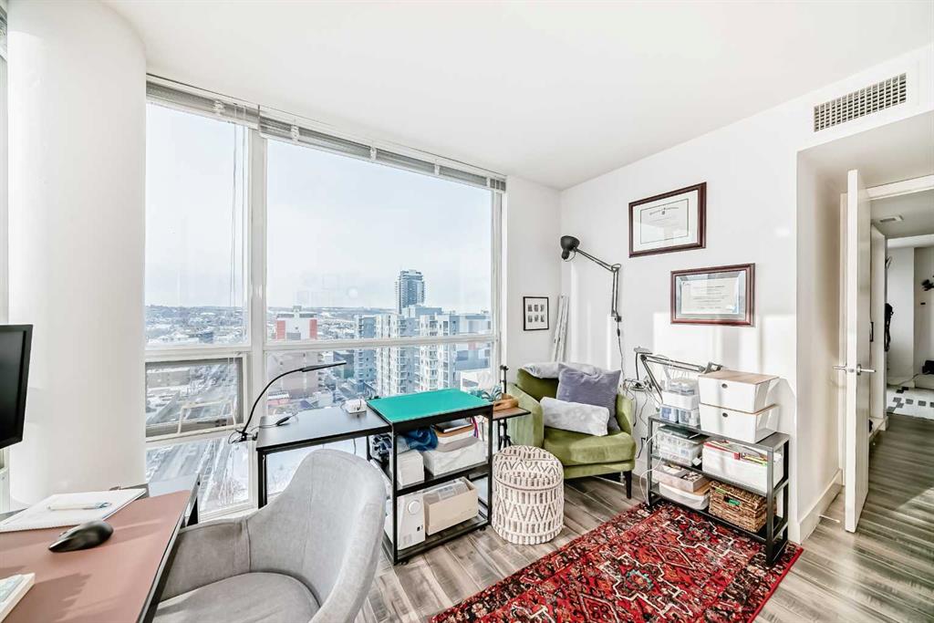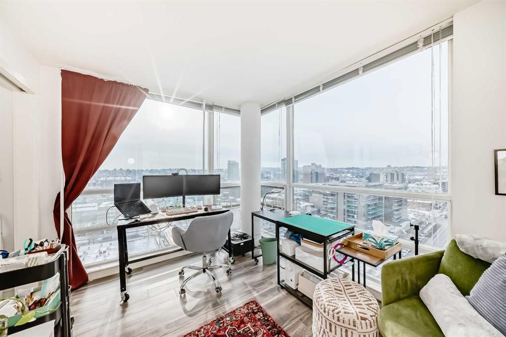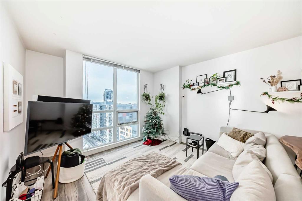 Rooms' with a view. Lots to see with this West and South exposure 14th floor unit in Stella. Full height glass for views with A/C for creature comfort. Open plan for living and dining areas. Galley kitchen with granite and stainless appliance package. Large primary master with 4 piece ensuite and south view. 2nd bedroom/office with south and west views. Nook could be used for home office if 2 bedrooms are your requirements. Both bedrooms have walk-in closets. Insuite laundry. Titled parking (1) and separate storage unit.
