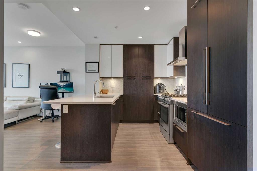 Welcome to 1408, 930 16 Avenue SW, situated in Calgary's vibrant entertainment district, steps from top restaurants, shops, and nightlife. Access your unit directly via one of three high-speed elevators, and be greeted by a bright, open-concept design with floor-to-ceiling windows that showcase stunning city and mountain views. The gourmet kitchen is a true highlight, featuring stone countertops, full-height cabinets, and a spacious breakfast bar island—perfect for entertaining. The adjacent dining and living areas are flooded with natural light and offer direct access to a large balcony, ideal for morning coffee or evening gatherings against the breathtaking backdrop. The spacious primary bedroom also boasts fantastic views and a second entry to the balcony, creating a serene retreat. The stylish bathroom includes a deep soaker tub, and additional features like in-suite laundry, underground parking, and a separate storage locker ensure convenience. The building offers a wealth of amenities, including a 10,000 sq. ft. "Club Royal" with an elevated garden terrace, BBQs, steam room, sauna, gym, squash court, owner’s lounge, chef's kitchen, and private dining area. An on-site concierge (24/7), and glamorous lobby add to the luxury living experience. Plus, with Canadian Tire and Urban Fare Market on-site, everything you need is at your doorstep. Nearby attractions include Elbow River pathways, transit, and Memorial Park.