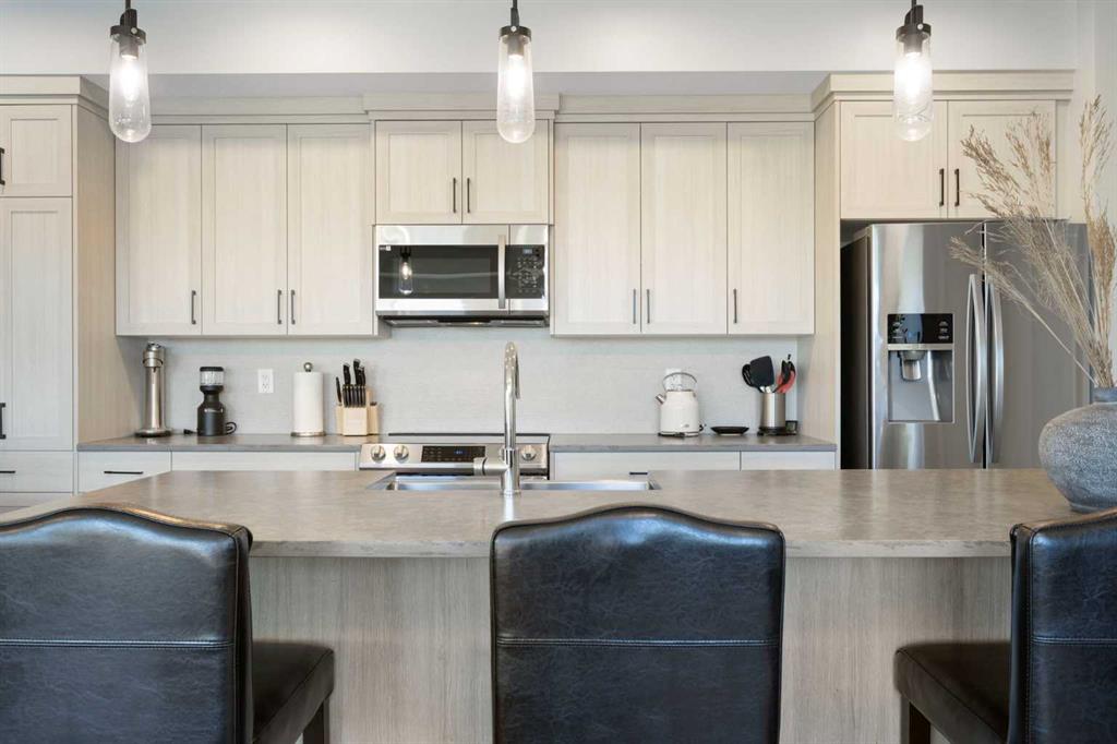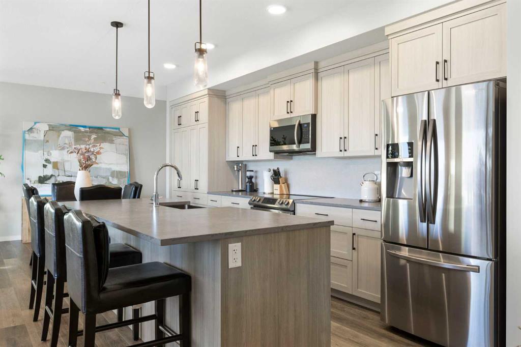 Welcome to Riverstone Manor where sophistication meets serenity in the heart of Cranston’s exclusive Riverstone community. This stunning 1,089 sqft. condo is a showstopper from every angle, featuring 2 bedrooms, 2 bathrooms, and A/C — the perfect blend of luxury, comfort, and style. Step inside and be wowed by the 9' ceilings, wall-to-wall windows, and sun-drenched south-facing balcony that flood the home with natural light and showcase breathtaking views of the scenic wet pond and surrounding landscape. The luxury plank flooring adds a sleek, modern touch throughout. The kitchen, absolute perfection. Think full-height cabinetry, quartz countertops, a gorgeous upgraded backsplash, stainless steel appliances, and soft-close drawers for that extra hint of class. The expansive island flows effortlessly into the open-concept living and dining areas — a dream for entertaining or cozy nights in. Need a home office? You’ve got the ideal nook with a killer view. The primary suite is your private escape, complete with a walk-in closet and a spa-inspired ensuite featuring dual sinks, a stand-up shower, and extra storage. The second bedroom offers endless flexibility perfect for guests, family, or your creative space. Add in a stylish 4-piece main bath, a dedicated laundry room with storage, and comfort essentials like central air conditioning, a titled underground parking stall (extra wide!), and a storage locker — and you’ve got it all. Just minutes from the Bow River pathways, Seton shops, South Health Campus, and Century Hall amenities, this home captures the very best of Calgary living. Top floor. South views. Total vibe. Welcome home to Riverstone Manor — where every day feels like a retreat.