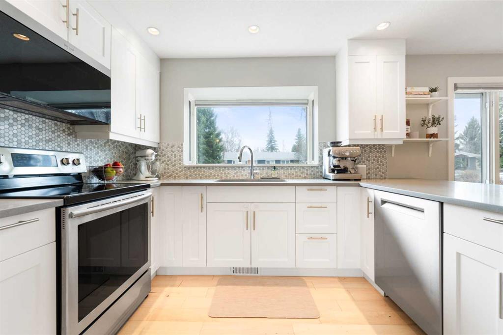 Welcome to this beautifully renovated 4-bedroom home in the highly desirable community of West Haysboro—where modern upgrades meet unbeatable location. Step inside to discover a bright, open-concept main floor designed for both everyday living and effortless entertaining. The spacious living room is flooded with natural light from large south-facing bay windows, perfectly complementing the rich hardwood floors throughout. The kitchen is a true standout, featuring quartz countertops, crisp white cabinetry, stainless steel appliances, and a charming bay window above the sink—bringing warmth and light into the heart of the home. Two well-appointed bedrooms, including a serene primary retreat complete with custom closet built-ins, a ceiling fan, and a stylish barn door leading to your private 4-piece ensuite. This spa-inspired space boasts dual sinks, a tiled floor, and a glass-enclosed shower. A second fully renovated 4-piece bathroom completes the upper level. The fully finished basement offers incredible versatility with two additional large bedrooms, a spacious recreation area, and a cozy nook—perfect as a kids’ play space, reading corner, or extra storage zone. You’ll also find a beautifully finished 4-piece bathroom with tiled shower and built-in shelving, along with a convenient laundry area featuring a sink. A split-level landing between the main and lower floors provides direct access to the backyard, adding both function and flow to the home. Additional highlights include air conditioning, a humidifier, high-efficiency hot water tank, and a detached garage. With an amazing yard with stone patio great for enjoying the summer and great place to unwind. Location is everything—and this home truly delivers. Enjoy being minutes from the Southland C-Train station, with easy access to major routes, shopping, dining, and everyday amenities along Macleod Trail. For outdoor enthusiasts, the nearby Glenmore Reservoir offers endless opportunities for walking, biking, and enjoying nature. home Roof (2024) Garage roof(2020) This is a rare opportunity to own a thoughtfully updated home in a mature, well-connected neighborhood—don’t miss it.