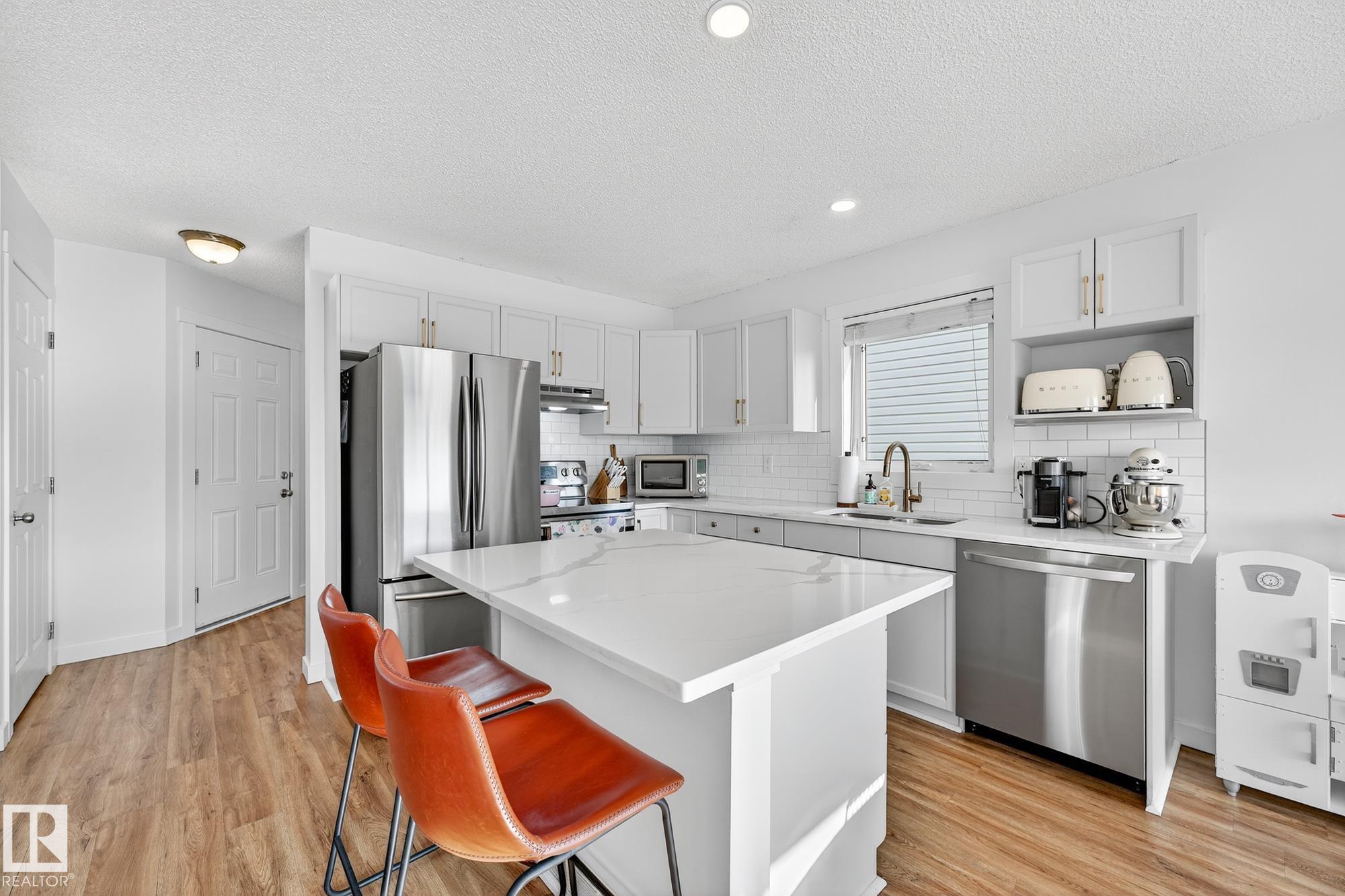 Fully Renovated half duplex backing onto a walking trail in the heart of Macewan. This home offers 3 bedrooms, 2.5 bathrooms, Fully Finished basement and a bright open-concept main floor, with a spacious living room, Quartz kitchen island, Stainless steel appliances, upgraded lighting package, Central Air-Conditioning, New Vinyl Plank Flooring throughout main/second and renovated bathroom! Upstairs features a large primary bedroom with a 3-piece ensuite, plus two more spacious bedrooms and a 4-piece bath. Enjoy the added bonus of an attached garage, a fully fenced yard, South facing backyard with large deck and plenty of natural light throughout. Located close to parks, schools, transit, and with easy access to Anthony Henday and Highway 2