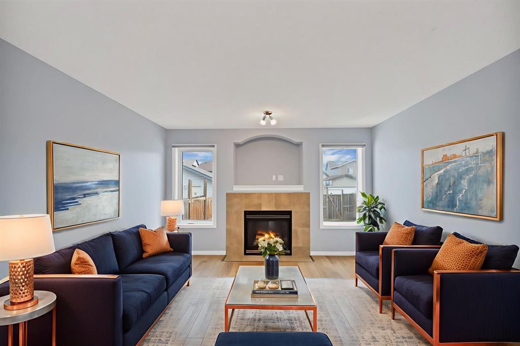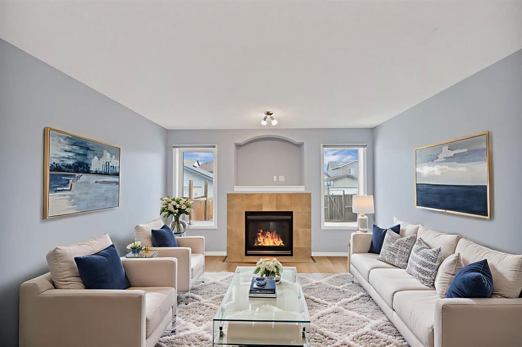 This bright and thoughtfully designed detached home welcomes you from the flex area int he front, charming front porch leading into a spacious great room with an easy, open flow. The kitchen and dining area overlook the main living space and include an island with an eating bar, along with convenient access to backyard — perfect for everyday family living and entertaining. The entire house has no carpet except few basement stairs. House is freshly painted along with brand new flooring and baseboard in Primary bedroom. As you go upstairs, it offers three generous bedrooms, including a relaxing primary suite with a walk-in closet and full ensuite, plus another full bathroom. The finished basement expands your space with a large rec room, a 3-piece bath, and a bonus area — ideal for guests, teenagers, or a hobby setup. Unbeatable Auburn Bay location: within walking distance to school, quick drive for groceries, lake and dog park, and steps from ponds and wetlands. This is Auburn Bay living at its finest — move-in ready and waiting for your next chapter.**virtual photos used for display purposes only**