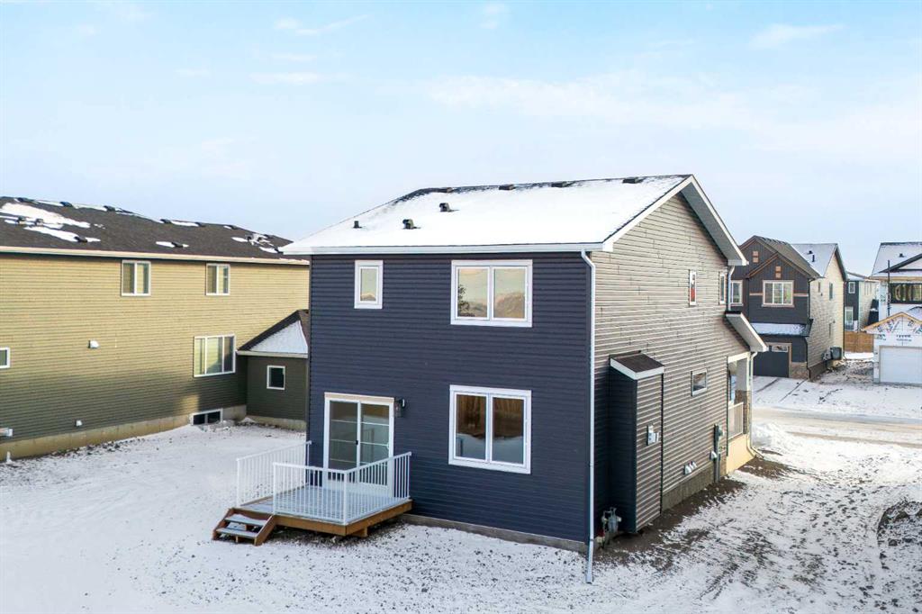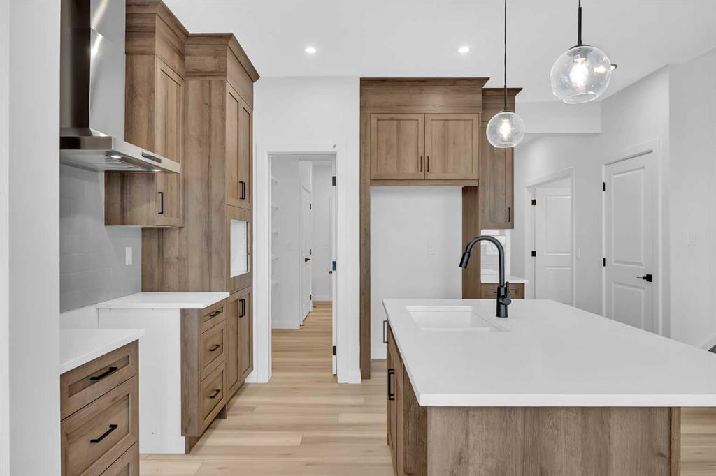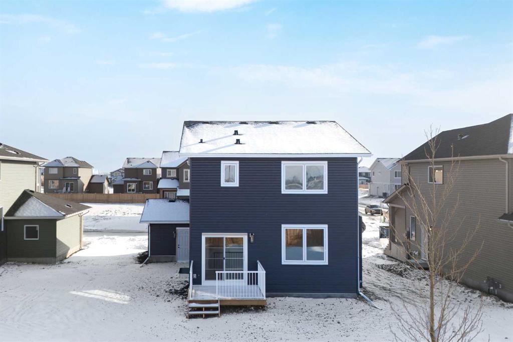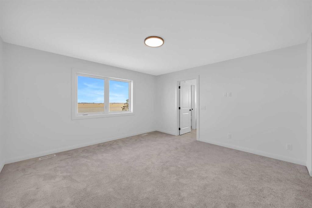 Welcome to the York by Broadview Homes in Painted Sky, Langdon, offering 2,096 square feet above grade, a rare triple attached garage, and immediate possession. Homes with this size, layout, and garage capacity are limited in Langdon. The main floor is designed with purpose. The foyer sits beside a dedicated flex room, creating true separation for a home office or private workspace. At the rear of the home, the open kitchen, dining area, and living room are positioned for connection and functionality. The kitchen is anchored by a large central island and features a walk-through pantry that connects directly to the mudroom and garage, a practical detail that supports everyday living. The living room is centered around an electric fireplace finished with floor-to-ceiling tile, creating a strong architectural focal point and a clean, modern statement. Rear windows bring in natural light and enhance the overall sense of space. Upstairs, the centrally located bonus room creates privacy between the primary suite and the additional bedrooms. The primary retreat includes a walk-in closet and an ensuite with double vanities, a soaker tub, and a tiled shower. Two additional bedrooms, a full bathroom, and a dedicated second-floor laundry room complete the upper level with a layout that is efficient and well considered. The triple attached garage offers exceptional capacity for vehicles, storage, or hobby use, a feature rarely available in this segment of the Langdon market. The unfinished basement features 9 foot ceilings, providing a more open feel and strong potential for comfortable future development. Located in Painted Sky, residents enjoy access to parks, pathways, playgrounds, and walking distance to Langdon School and Horseshoe Crossing High School. Just 20 minutes east of Calgary and 15 minutes to Chestermere, this community offers small-town living with convenient commuter access.