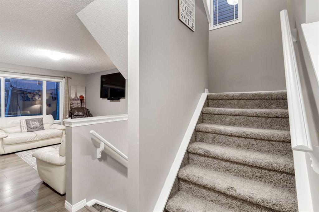 This IMMACULATE, AIR-CONDITIONED Detached 2 Storey HOME in the highly DESIRABLE South Windsong Community has 1,634 Sq Ft of BEAUTIFULLY Developed living space that offers the perfect blend of COMFORT + PRACTICALITY, w/an ATTACHED Single Garage, 3 Bedrooms, 3 ½ Bathrooms, all on a 3,245 Sq Ft LOT. We start w/GREAT CURB Appeal incl/Low-Maintenance Landscaping + a CHARMING Covered Front Porch that INVITES you to sit outside in a chair ENJOYING your morning coffee while the sun rises. As you enter the Foyer, you’re greeted w/Neutral MODERN Laminate flooring + NEUTRAL Walls throughout, w/direct access to the GARAGE on the left + a Coat Closet across for added CONVENIENCE. Past the stairs, the ‘Heart of the Home’ is a MODERN Kitchen w/SS Appliances incl/a Large Refrigerator, Electric Stove, Dishwasher + Microwave, Warm-toned Cabinetry w/AMPLE STORAGE + a Tiled Backsplash - Designed for both STYLE + FUNCTION. Sliding Patio doors CONNECTS you to your SOUTH-FACING Backyard. The Dining AREA fits a table to gather around for those meals w/FAMILY, + FRIENDS sharing LAUGHTER, + making MEMORIES. The LIVING ROOM is GREAT for RELAXING at the end of the day, whether Reading a Book; watching your favourite TV Show or taking a nap when needed. The Upper Level has Carpet throughout, the Primary Bedroom w/Windows filling the space w/Sunlight, + providing a RESTFUL space for a PEACEFUL RETREAT. It has a 3 pc EN-SUITE incl/a FULLY Tiled Standing Shower + a WALK-IN Closet offering AMPLE space for all your wardrobe needs. There are 2 GOOD-SIZED 2nd + 3rd Bedrooms, perfect for family, an office area or GUESTS. Completing the level is a 4 pc Bathroom w/SOAKER Tub for those moments to UNWIND after a long day. Heading to the lower level, a PRIVATE 2 pc BATHROOM sits below half the flight of stairs to the basement. The Fully Developed Basement has a Crawl Space to the left, PERFECT for STORING Seasonal Decor + MORE! Enjoy the SPACIOUS Recreation Room, whether you curl up on the couch, read a book, or enjoy Movie or Game Nights; this space is built to build MEMORIES together. There is plenty of room for an OFFICE SPACE, HOBBY AREA or HOME GYM. The Laundry/Utility/Storage room area provides plenty of space for all your storage needs. This SOUTH-FACING Backyard, extends your living space outdoors for even more ENJOYMENT. Whether you're seeking a QUIET ESCAPE or a LIVELY gathering place on the Deck for a BBQ, this Backyard works for spending time w/Children and/or Pets. South Windsong in Airdrie is a VIBRANT, MODERN community perfect for FAMILIES + PROFESSIONALS alike!! ENJOY well-maintained parks, scenic walking + biking paths, + PLENTY of green space for outdoor living. EASY ACCESS to major routes like Yankee Valley Boulevard + the QEII for commuting, + nearby Shopping, Restaurants, Schools, and services. South Windsong offers EXCELLENT value, convenience + a strong sense of community that makes it one of Airdrie’s most DESIRABLE neighbourhoods. Book TODAY for a private viewing!!
