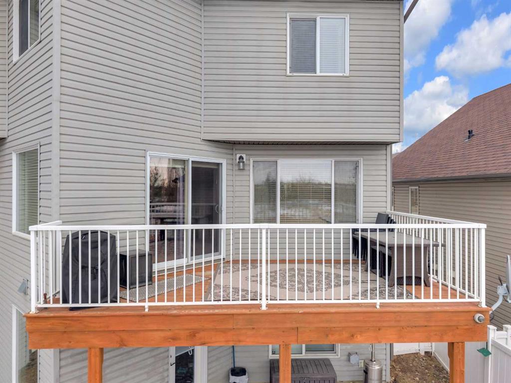 Take a look at this magnificent walkout two-storey home backing onto a pond and scenic walking trails, with Heritage Ranch just minutes away offering even more outdoor trails to explore. Conveniently located near Red Deer Polytechnic, this home offers the perfect blend of nature, comfort, and accessibility. The main floor features an open-concept design with a spacious living room showcasing hardwood flooring, a cozy gas fireplace, and a large window overlooking the backyard and pond. The kitchen is beautifully finished with ceiling-height wood cabinetry, granite countertops, a corner pantry, and a bright dining area with garden doors leading to the upper deck—perfect for enjoying the peaceful views. Completing the main level is a laundry room and convenient 2-piece bathroom. Upstairs you’ll find a huge bonus room, three bedrooms, and two full bathrooms. The primary suite features a walk-in closet and a 4-piece ensuite with a large soaker tub, creating a relaxing retreat. The fully finished walkout basement offers additional living space with a family room featuring a bar, a bedroom with a large walk-in closet, and a 3-piece bathroom. The family room also provides direct access to the lower concrete patio and backyard. The vinyl-fenced yard includes a firepit area, making it perfect for outdoor entertaining. Additional features include central air conditioning, a water softener, exposed aggregate driveway, functional in-floor heating in the basement, a new high-efficiency furnace (2025), and new shingles (2025).