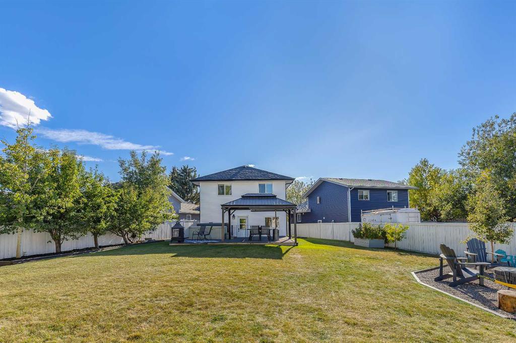 Welcome to this beautifully updated 4-level split situated on a massive 8,137 sq. ft. lot with RV parking! This spacious home offers 4 bedrooms and 2 full bathrooms, perfect for a growing family. You’ll appreciate the many recent updates including new shingles, siding, and eavestroughs (2025), new carpet upstairs (2024), new laminate flooring (2025), new washer & dryer (2023) -all adding comfort and peace of mind for years to come. The bright walk-up basement provides convenient access to the backyard and offers excellent potential for a separate entrance or future suite (subject to city approval). The large yard is ideal for entertaining, kids, pets, or storing your RV and toys. There are also apple trees, pear tree & raspberry bushes in the backyard along with a firepit & a hot tub (negotiable). This home is in a prime location—just a 5-minute walk to the storm pond, parks, and many retail amenities, and within walking distance to six schools. Quick and easy access to Deerfoot Trail, Stoney Trail, and the airport makes commuting a breeze. Don’t miss this rare opportunity to own a home on a huge lot with so many updates and unbeatable convenience!
