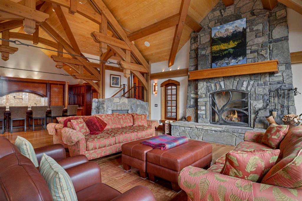 Located on the 17th fairway of the Silvertip Golf Course this four-bedroom, four-bathroom award-winning architectural Timber Frame masterpiece is a home like no other in Canmore. Designed and built by Alasdair Russell of Russell and Russell Design and Mitchell Master Homes this home features over 4850 square feet of living space accented by incredible acid-washed douglas fir timber framing from the world-renowned Spear Head Timber Works in Nelson, BC, and one-of-a-kind custom finishings, including 11 different types of wood sourced from all over the world. The hidden details and qualities in this home are as numerous and stunning as the home itself with features such as in-floor heating on every level, full air conditioning in the home, HEPA and smoke filtration system, and sound insulation in the walls between all interior rooms. The attention to detail coupled with the 180-degree mountain views from Three Sisters to Rundle and the 685 square feet triple car garage in this world-class home is second to none and is sure to appeal to the most discerning of buyers. For all the detailed information click the brochure link.