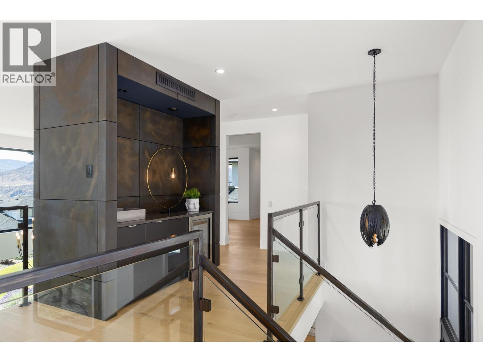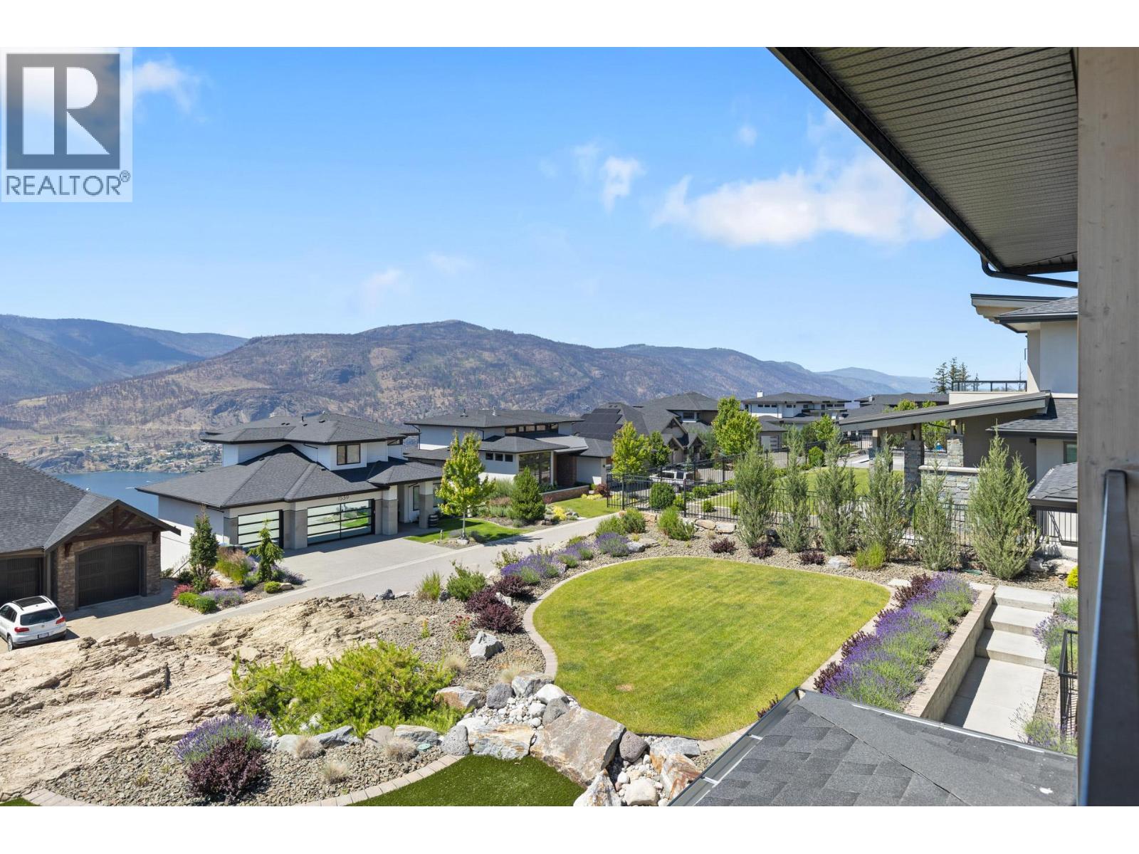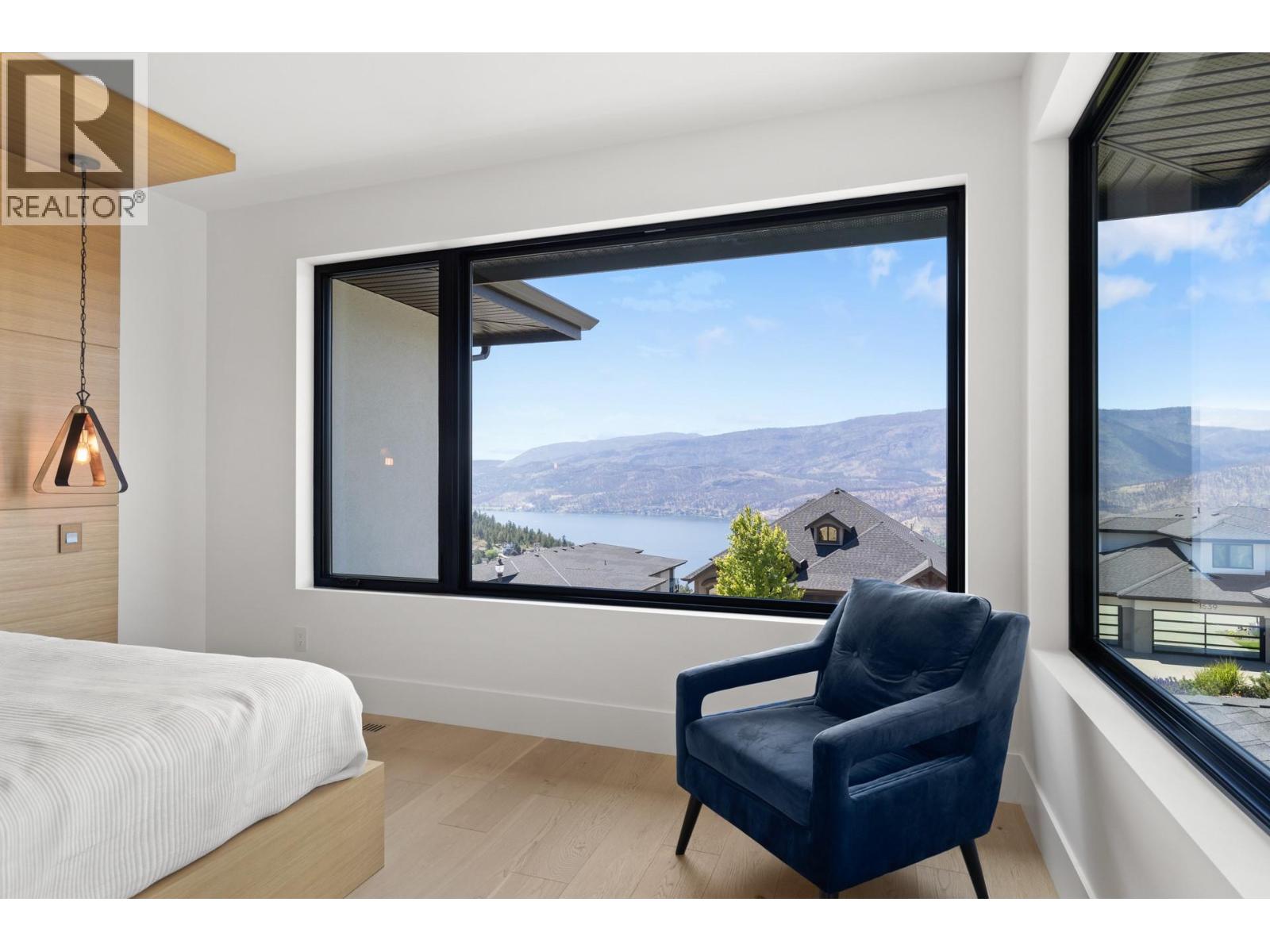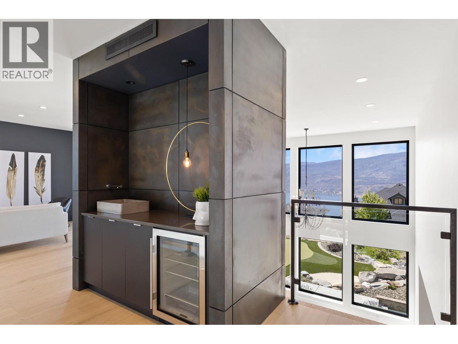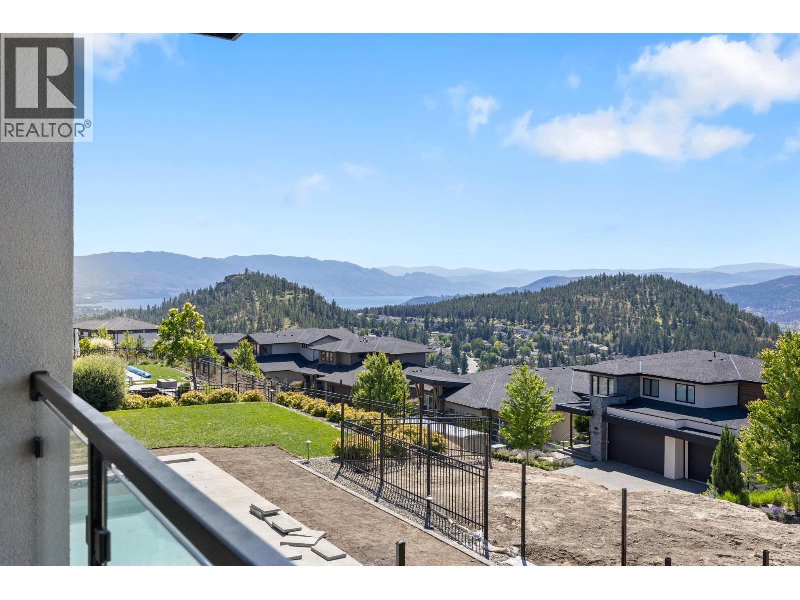 GST INCLUDED.... A unique opportunity in the prestigious Wilden neighbourhood, this custom built 2019 show home of the year from award winning builder Fawdry Homes will take your breath away w/sweeping 180 degree views of the Okanagan Lake + mountains. Truly designed for entertaining, this 4 bedroom + den modern home offers an open main flr plan w/2 stories of great room windows framing the amazing views opening into the covered patio area merging into the meticulously maintained low maintenance rear yard. Main flor features inc: a large kitchen w/over-sized Wolf gas range, panel Sub-Zero fridge/freezer, pantry/mudroom w/tons of storage, wet bar w/beverage fridge, 2 storey linear gas fireplace, spacious great room, 3 piece bath + office/future bdrm. Upper flr offers a lg primary suite w/built-in custom bed, his/her walk-in closet, a spacious ensuite w/lg soaker tub + curbless tiled shower, left style TV area, wet bar, 1/2 bath + the lg covered deck to soak in the sweeping views. Bsmt offers 2 full bedrooms, a 3 piece bathroom, wet bar/kitchen area however with the open design + lg windows, the potential for additional bedrooms. Basement also offers a separate grade to basement level entrance which would all for a possible suite. Other features include a 3 car garage, advanced heating/cooling system, underground sprinklers, solar panel system, full central vacuum w/hidden hose attachments + full security/camera system. Full New Home Warranty. Potential for a pool.