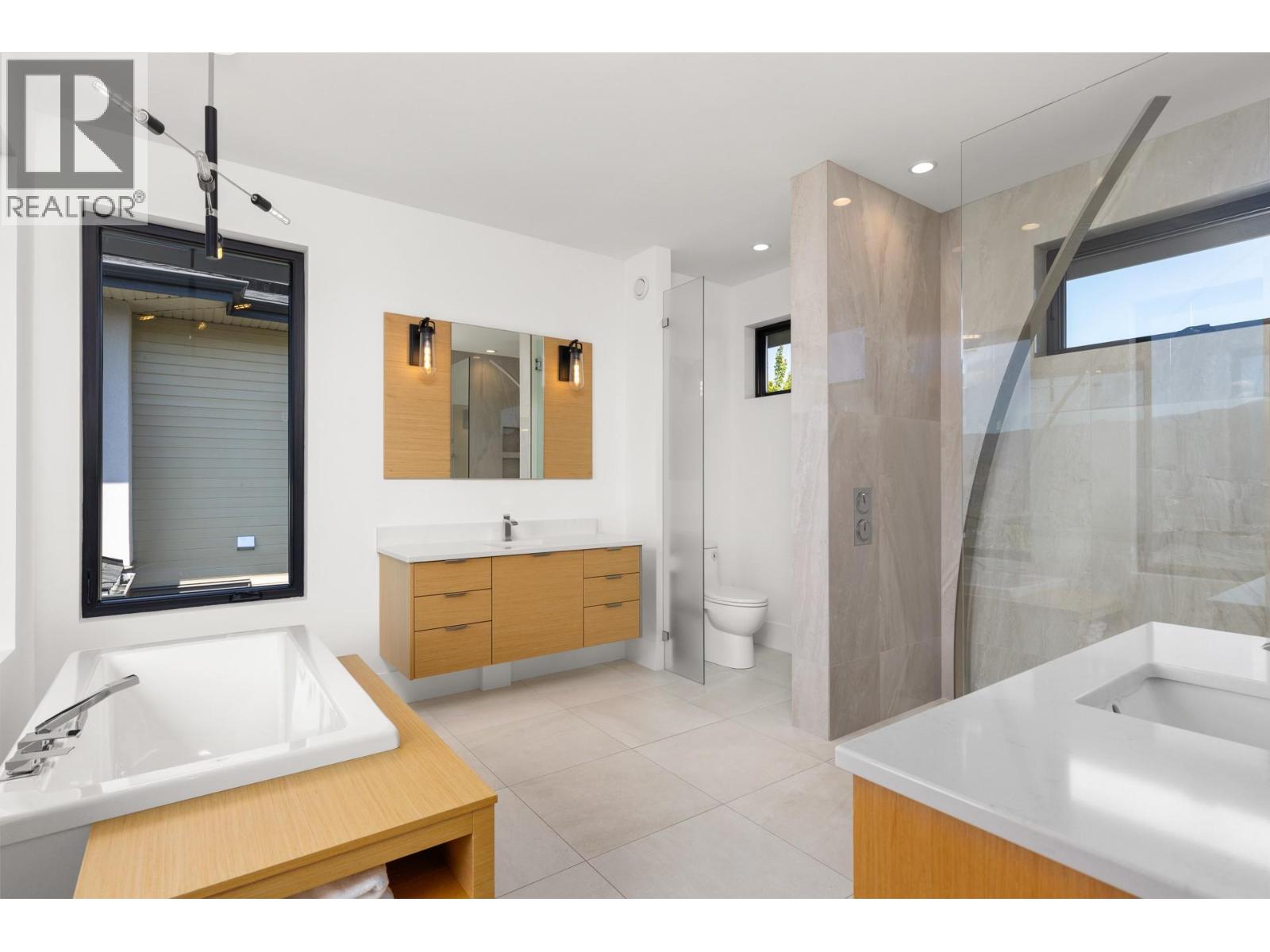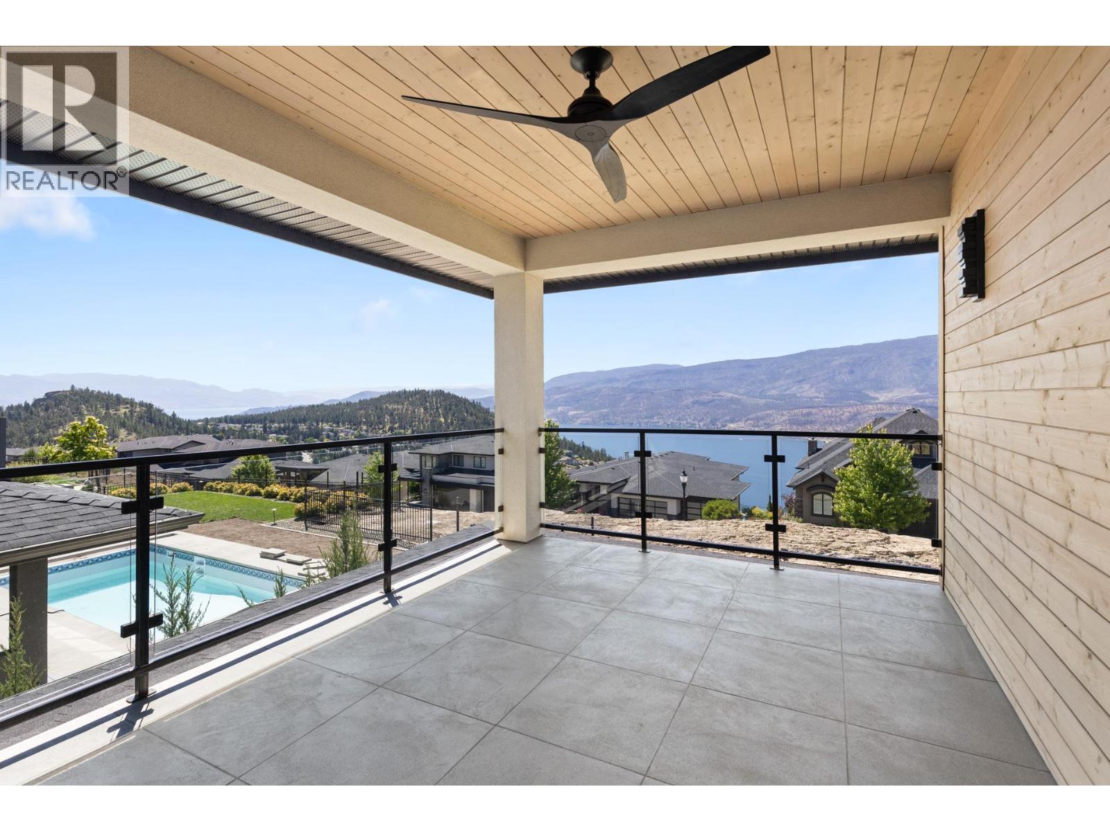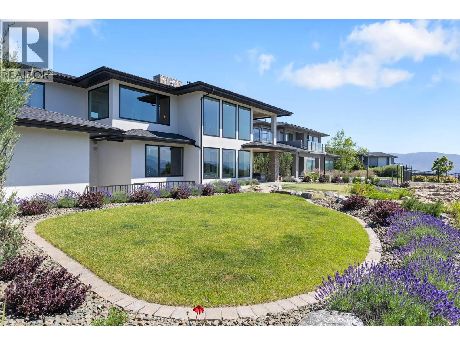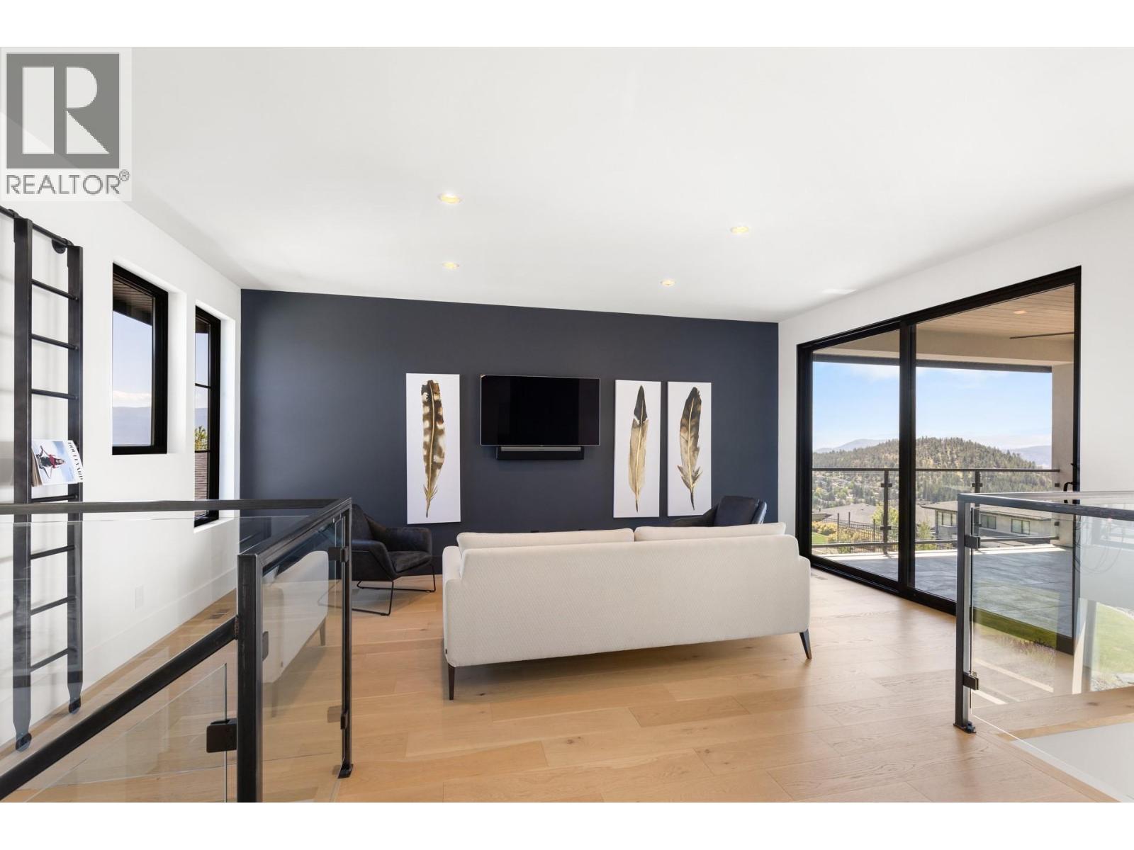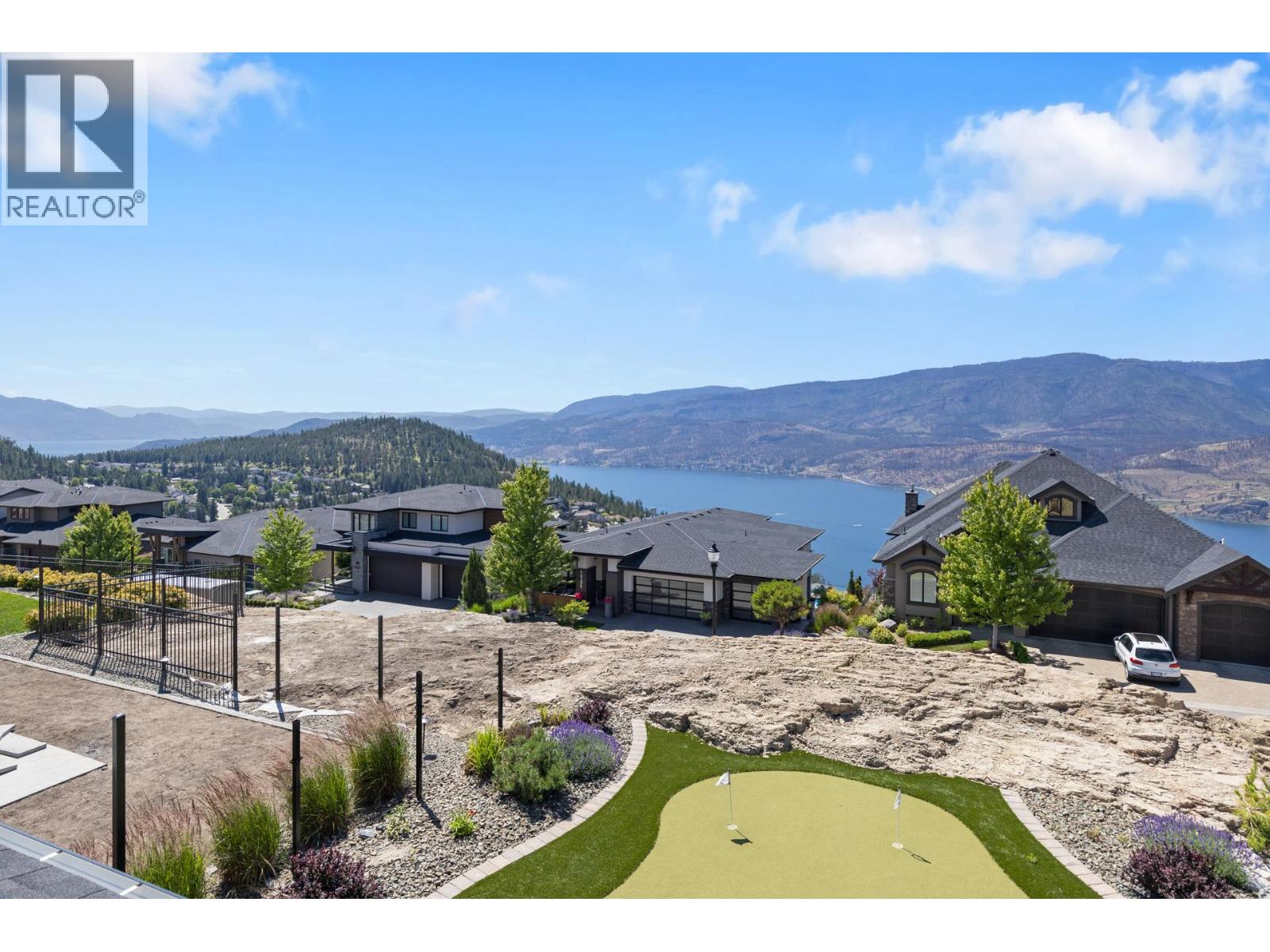 GST INCLUDED.... A unique opportunity in the prestigious Wilden neighbourhood, this custom built 2019 show home of the year from award winning builder Fawdry Homes will take your breath away w/sweeping 180 degree views of the Okanagan Lake + mountains. Truly designed for entertaining, this 4 bedroom + den modern home offers an open main flr plan w/2 stories of great room windows framing the amazing views opening into the covered patio area merging into the meticulously maintained low maintenance rear yard. Main flor features inc: a large kitchen w/over-sized Wolf gas range, panel Sub-Zero fridge/freezer, pantry/mudroom w/tons of storage, wet bar w/beverage fridge, 2 storey linear gas fireplace, spacious great room, 3 piece bath + office/future bdrm. Upper flr offers a lg primary suite w/built-in custom bed, his/her walk-in closet, a spacious ensuite w/lg soaker tub + curbless tiled shower, left style TV area, wet bar, 1/2 bath + the lg covered deck to soak in the sweeping views. Bsmt offers 2 full bedrooms, a 3 piece bathroom, wet bar/kitchen area however with the open design + lg windows, the potential for additional bedrooms. Basement also offers a separate grade to basement level entrance which would all for a possible suite. Other features include a 3 car garage, advanced heating/cooling system, underground sprinklers, solar panel system, full central vacuum w/hidden hose attachments + full security/camera system. Full New Home Warranty. Potential for a pool.