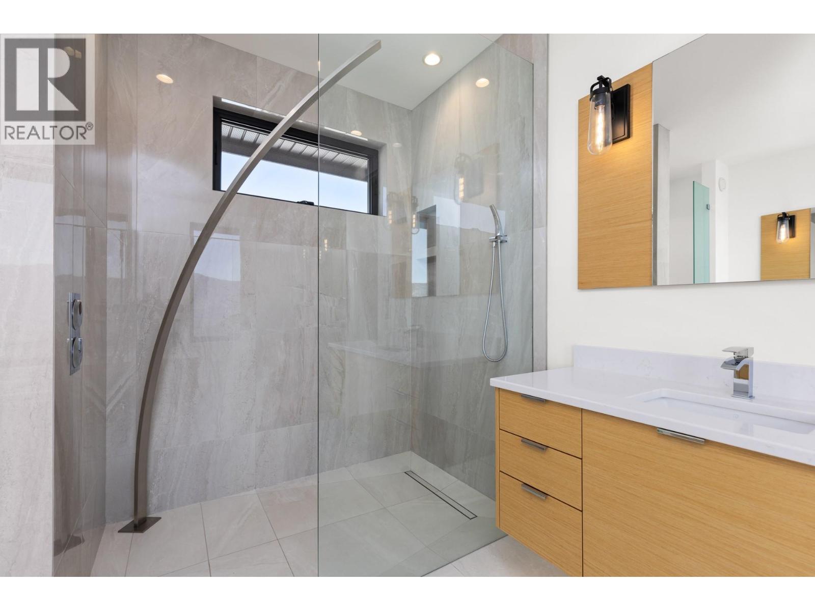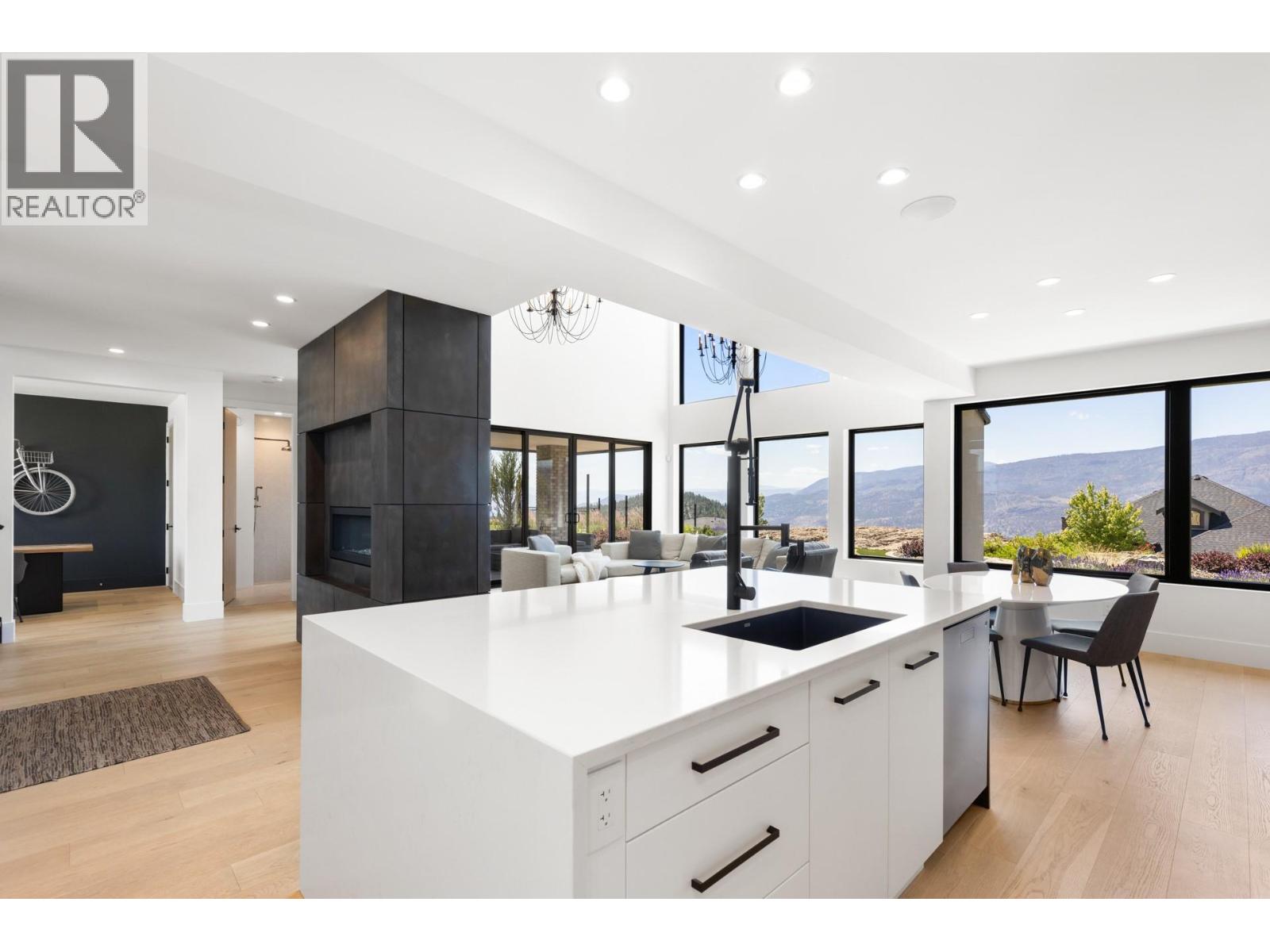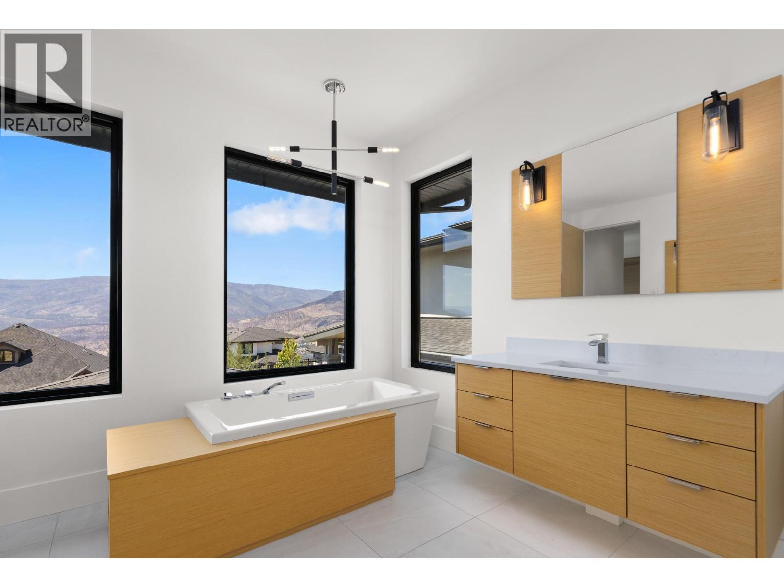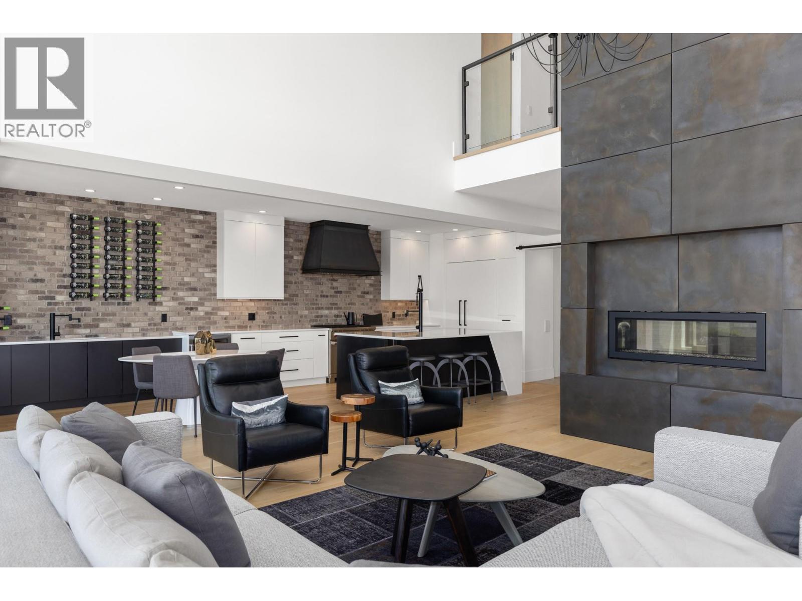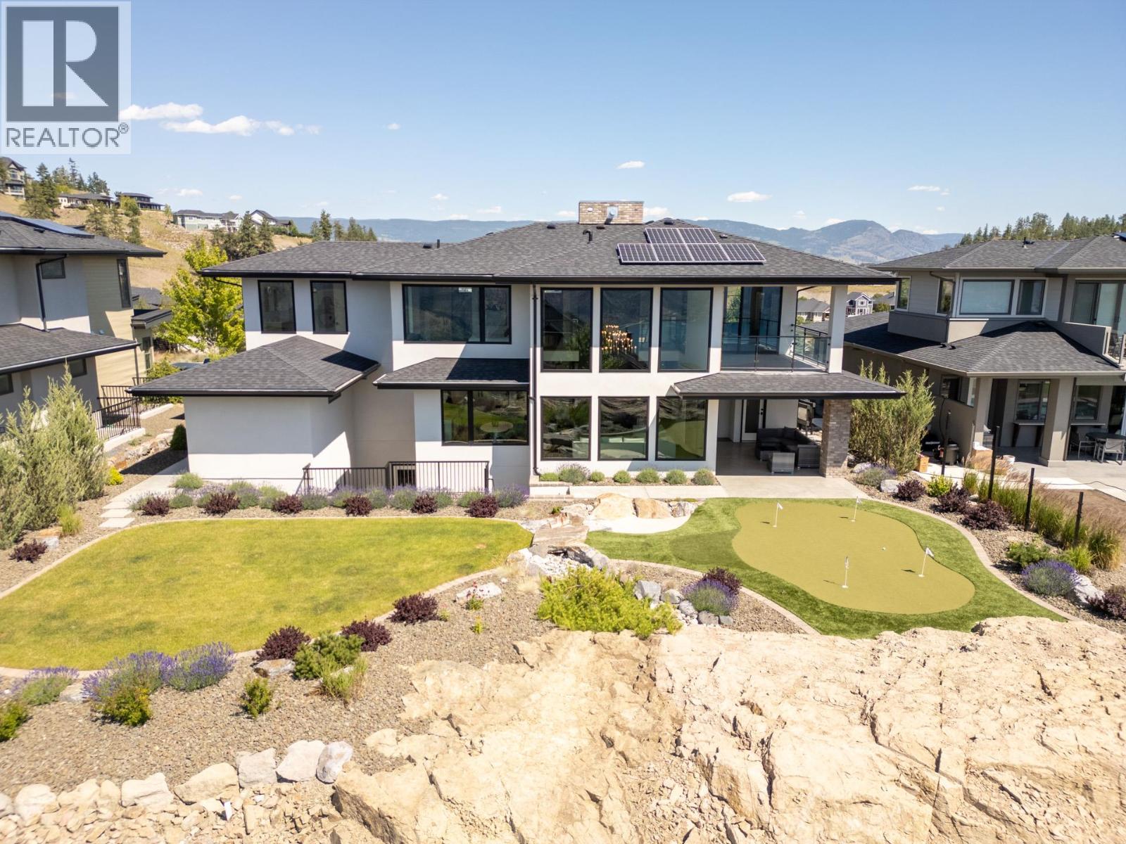 GST INCLUDED.... A unique opportunity in the prestigious Wilden neighbourhood, this custom built 2019 show home of the year from award winning builder Fawdry Homes will take your breath away w/sweeping 180 degree views of the Okanagan Lake + mountains. Truly designed for entertaining, this 4 bedroom + den modern home offers an open main flr plan w/2 stories of great room windows framing the amazing views opening into the covered patio area merging into the meticulously maintained low maintenance rear yard. Main flor features inc: a large kitchen w/over-sized Wolf gas range, panel Sub-Zero fridge/freezer, pantry/mudroom w/tons of storage, wet bar w/beverage fridge, 2 storey linear gas fireplace, spacious great room, 3 piece bath + office/future bdrm. Upper flr offers a lg primary suite w/built-in custom bed, his/her walk-in closet, a spacious ensuite w/lg soaker tub + curbless tiled shower, left style TV area, wet bar, 1/2 bath + the lg covered deck to soak in the sweeping views. Bsmt offers 2 full bedrooms, a 3 piece bathroom, wet bar/kitchen area however with the open design + lg windows, the potential for additional bedrooms. Basement also offers a separate grade to basement level entrance which would all for a possible suite. Other features include a 3 car garage, advanced heating/cooling system, underground sprinklers, solar panel system, full central vacuum w/hidden hose attachments + full security/camera system. Full New Home Warranty. Potential for a pool.