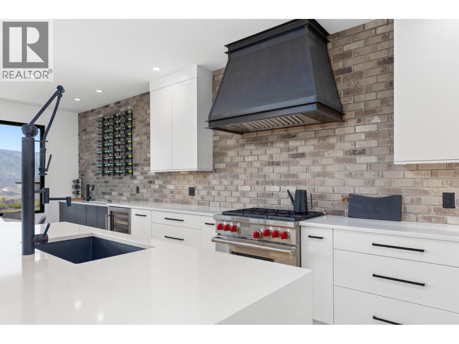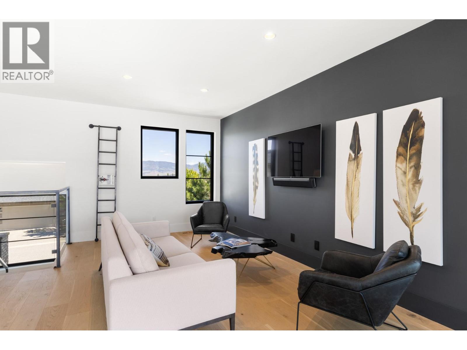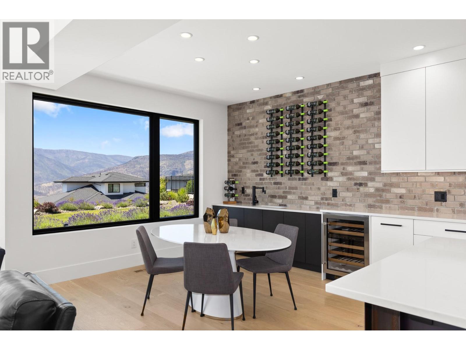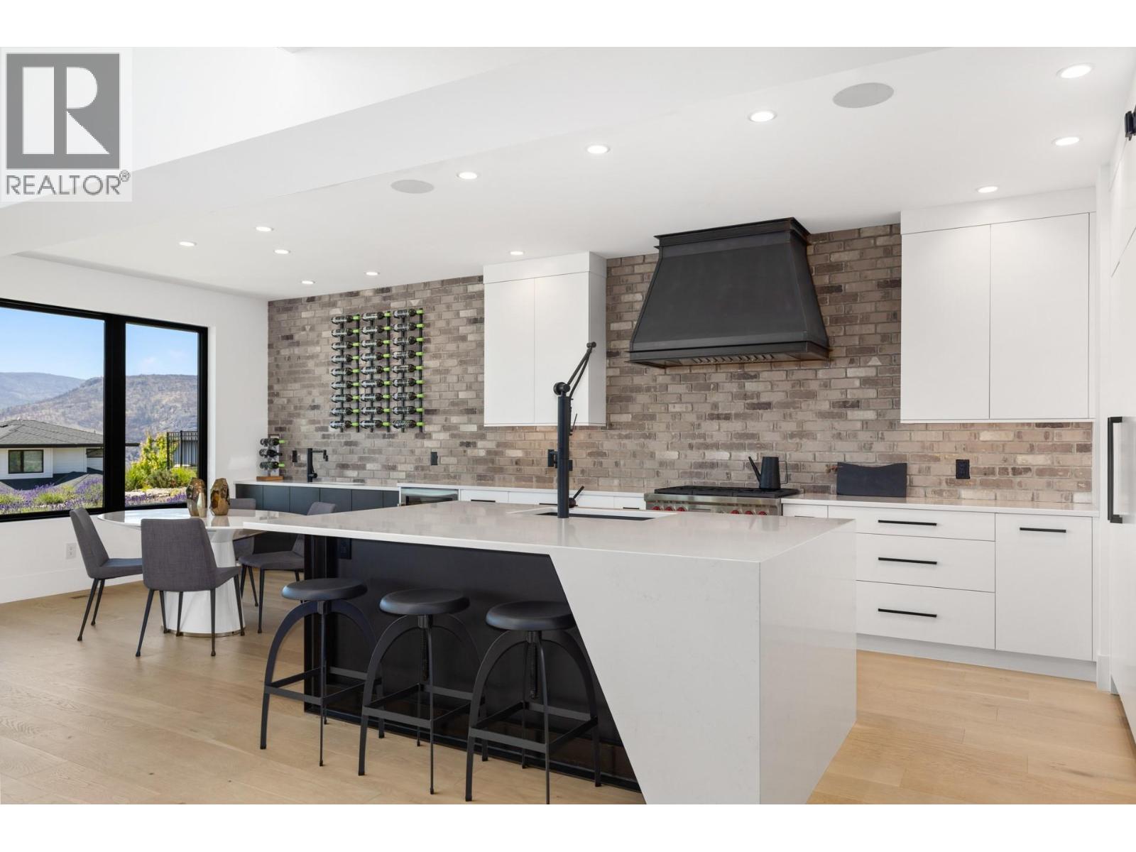 GST INCLUDED.... A unique opportunity in the prestigious Wilden neighbourhood, this custom built 2019 show home of the year from award winning builder Fawdry Homes will take your breath away w/sweeping 180 degree views of the Okanagan Lake + mountains. Truly designed for entertaining, this 4 bedroom + den modern home offers an open main flr plan w/2 stories of great room windows framing the amazing views opening into the covered patio area merging into the meticulously maintained low maintenance rear yard. Main flor features inc: a large kitchen w/over-sized Wolf gas range, panel Sub-Zero fridge/freezer, pantry/mudroom w/tons of storage, wet bar w/beverage fridge, 2 storey linear gas fireplace, spacious great room, 3 piece bath + office/future bdrm. Upper flr offers a lg primary suite w/built-in custom bed, his/her walk-in closet, a spacious ensuite w/lg soaker tub + curbless tiled shower, left style TV area, wet bar, 1/2 bath + the lg covered deck to soak in the sweeping views. Bsmt offers 2 full bedrooms, a 3 piece bathroom, wet bar/kitchen area however with the open design + lg windows, the potential for additional bedrooms. Basement also offers a separate grade to basement level entrance which would all for a possible suite. Other features include a 3 car garage, advanced heating/cooling system, underground sprinklers, solar panel system, full central vacuum w/hidden hose attachments + full security/camera system. Full New Home Warranty. Potential for a pool.