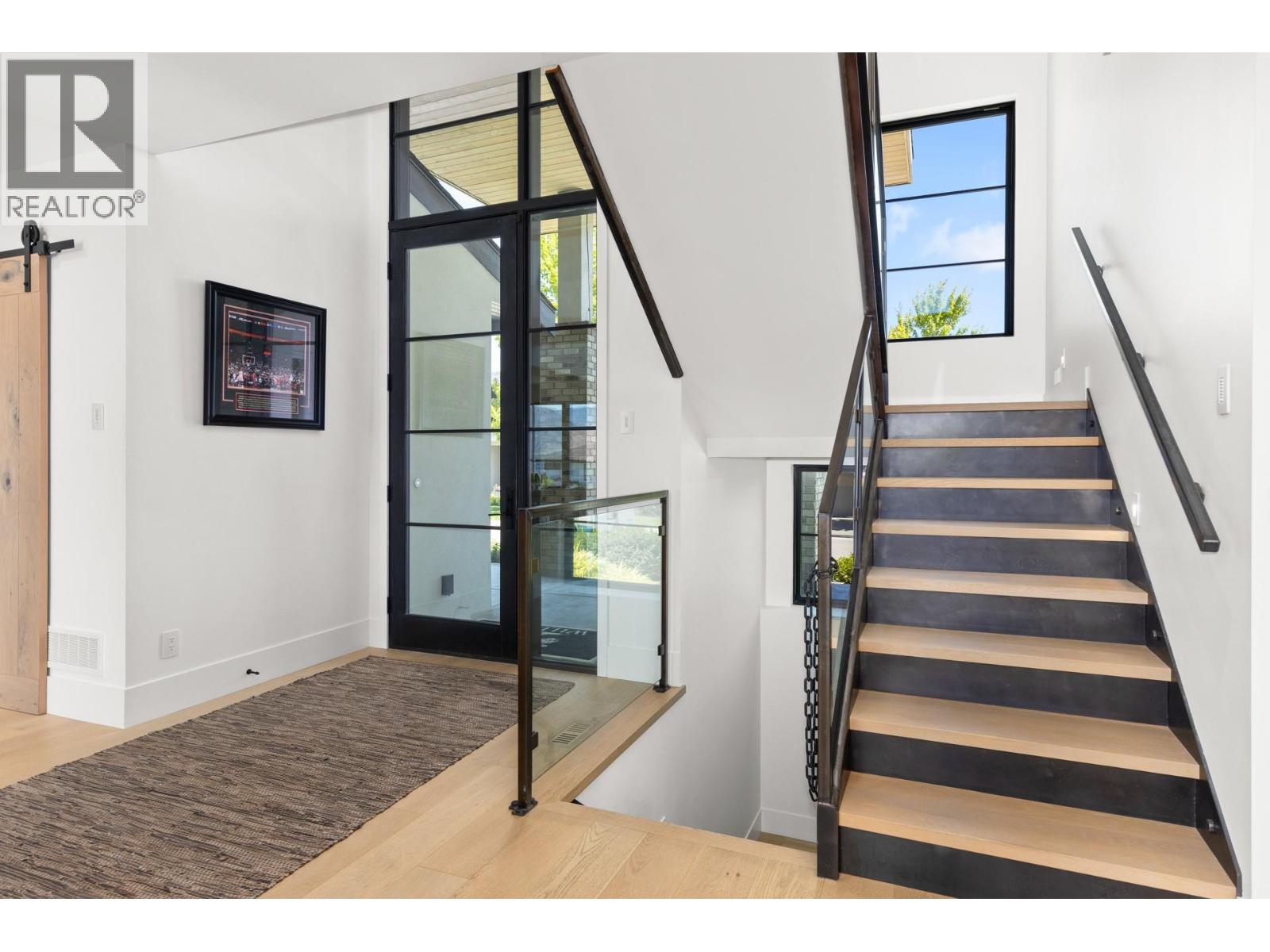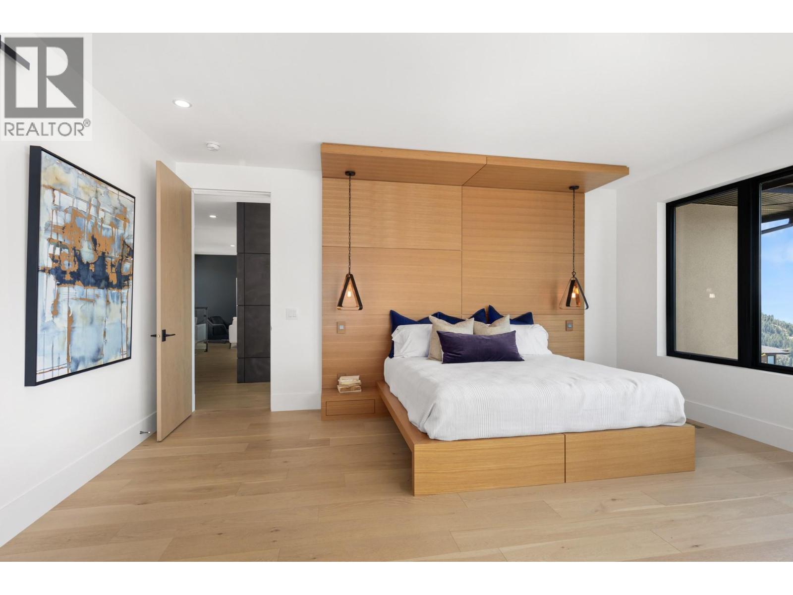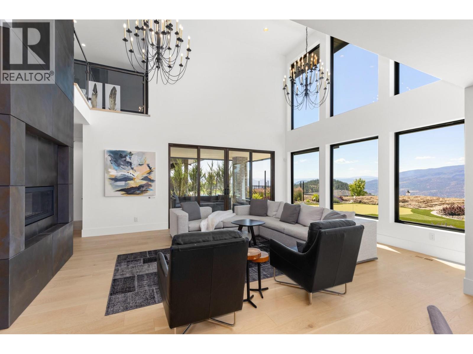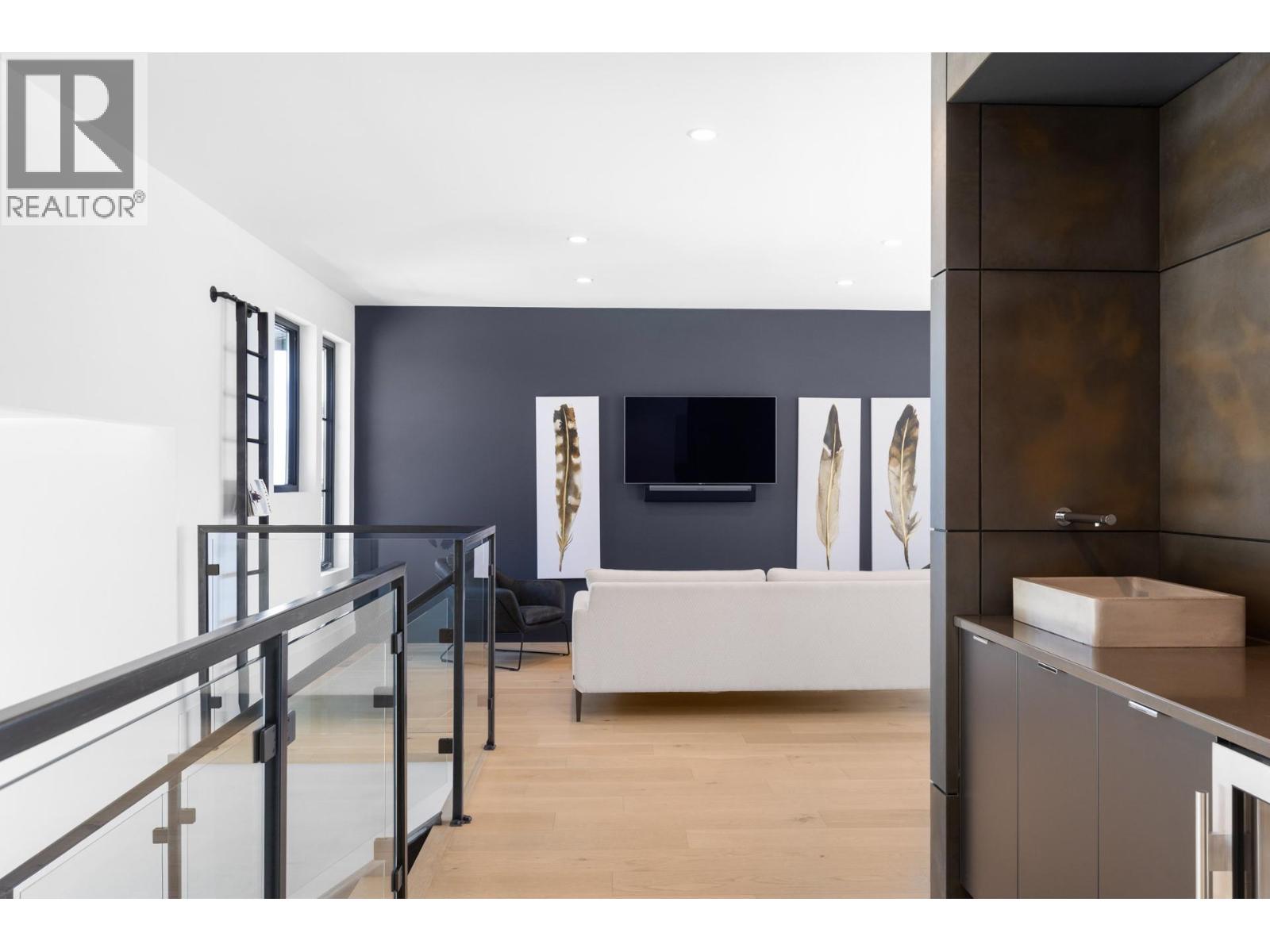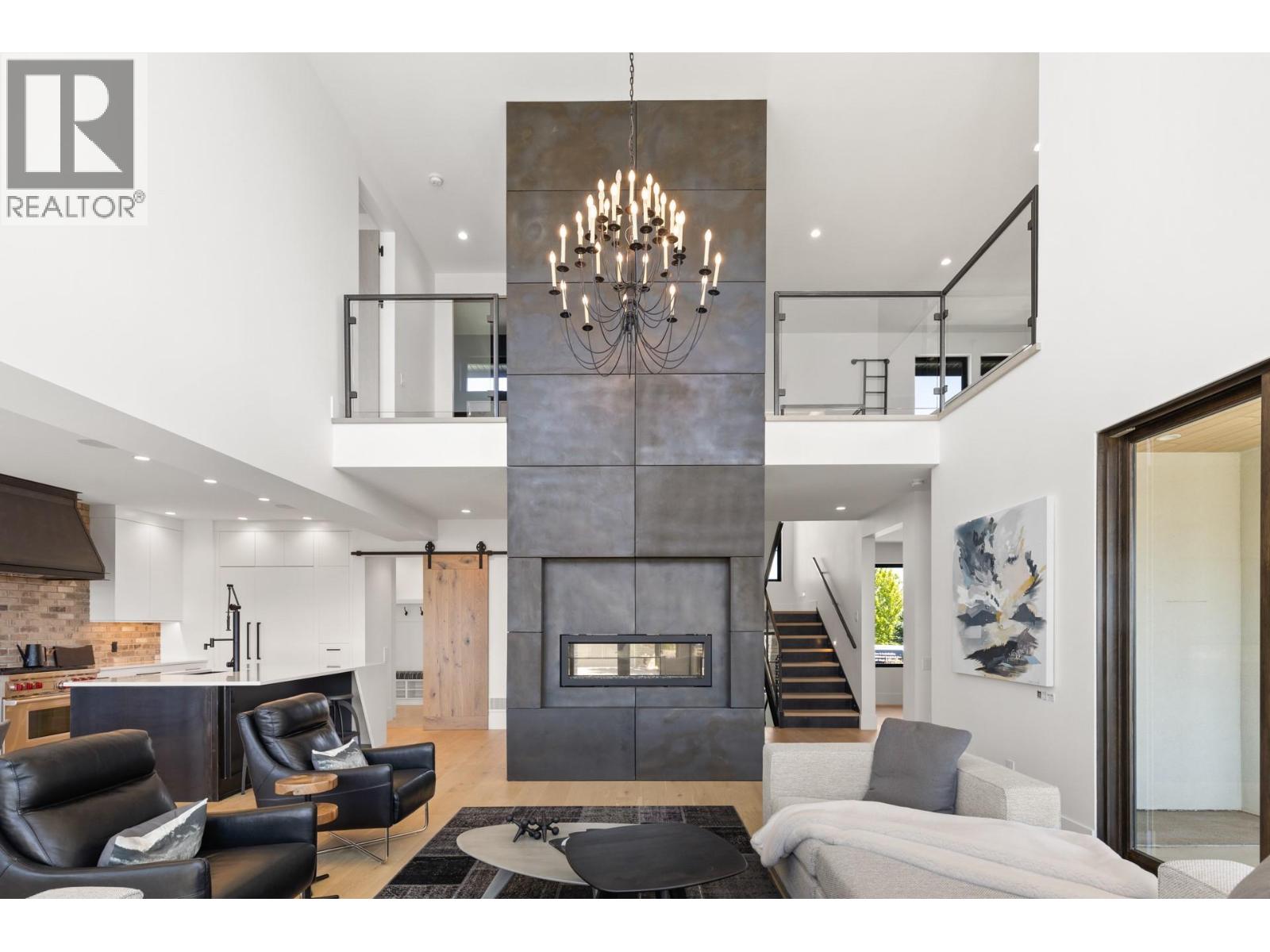 GST INCLUDED.... A unique opportunity in the prestigious Wilden neighbourhood, this custom built 2019 show home of the year from award winning builder Fawdry Homes will take your breath away w/sweeping 180 degree views of the Okanagan Lake + mountains. Truly designed for entertaining, this 4 bedroom + den modern home offers an open main flr plan w/2 stories of great room windows framing the amazing views opening into the covered patio area merging into the meticulously maintained low maintenance rear yard. Main flor features inc: a large kitchen w/over-sized Wolf gas range, panel Sub-Zero fridge/freezer, pantry/mudroom w/tons of storage, wet bar w/beverage fridge, 2 storey linear gas fireplace, spacious great room, 3 piece bath + office/future bdrm. Upper flr offers a lg primary suite w/built-in custom bed, his/her walk-in closet, a spacious ensuite w/lg soaker tub + curbless tiled shower, left style TV area, wet bar, 1/2 bath + the lg covered deck to soak in the sweeping views. Bsmt offers 2 full bedrooms, a 3 piece bathroom, wet bar/kitchen area however with the open design + lg windows, the potential for additional bedrooms. Basement also offers a separate grade to basement level entrance which would all for a possible suite. Other features include a 3 car garage, advanced heating/cooling system, underground sprinklers, solar panel system, full central vacuum w/hidden hose attachments + full security/camera system. Full New Home Warranty. Potential for a pool.