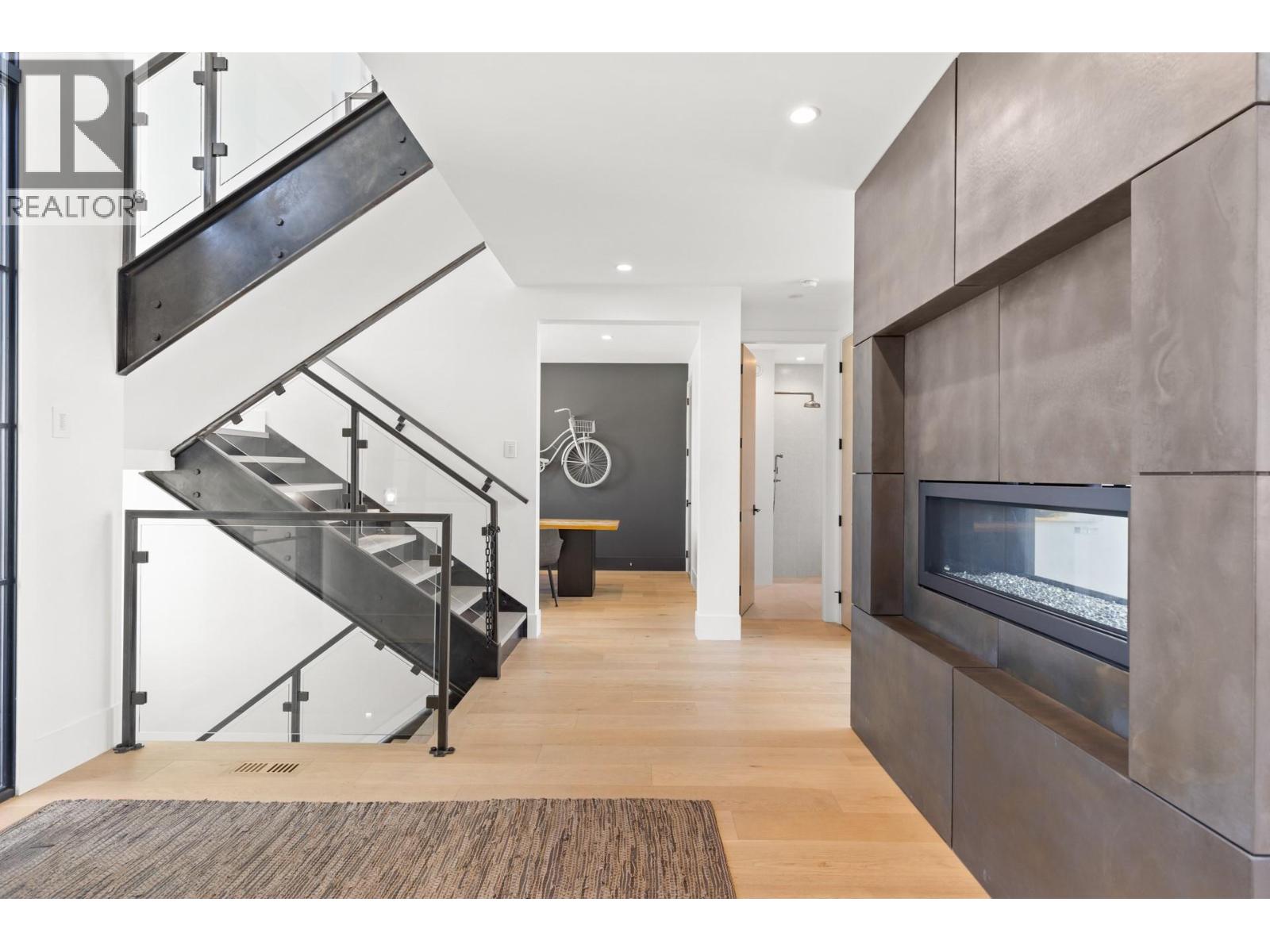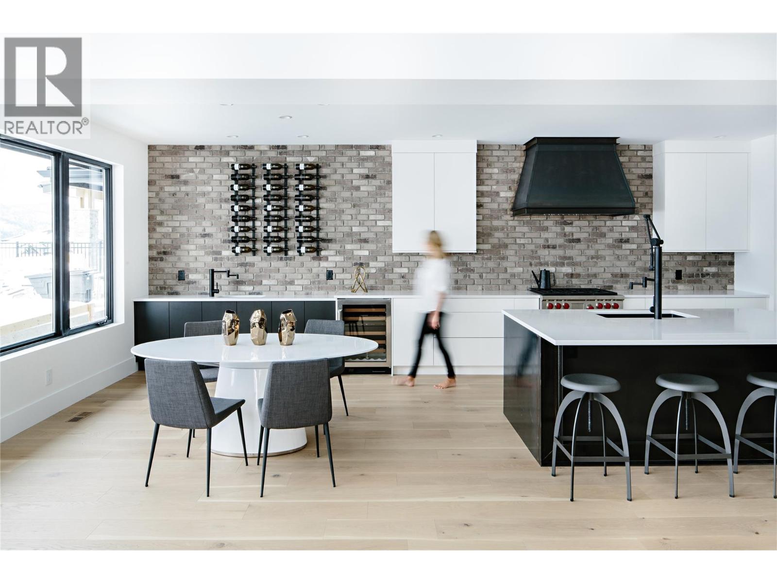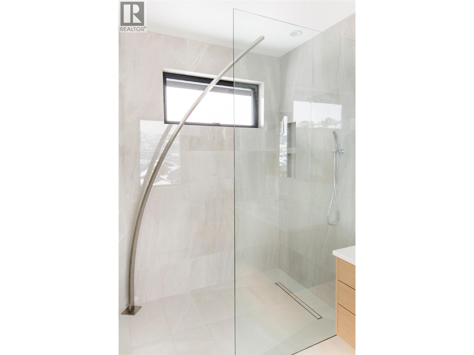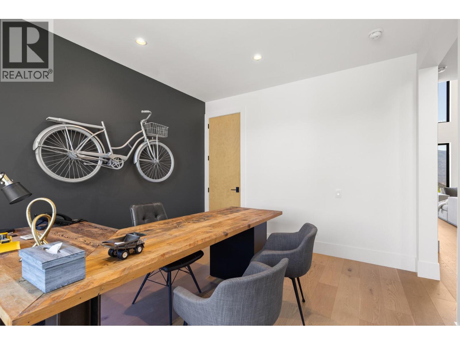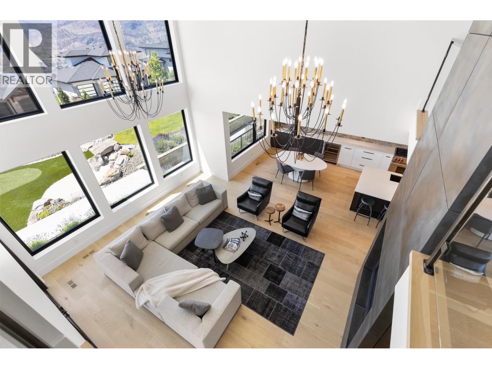 GST INCLUDED.... A unique opportunity in the prestigious Wilden neighbourhood, this custom built 2019 show home of the year from award winning builder Fawdry Homes will take your breath away w/sweeping 180 degree views of the Okanagan Lake + mountains. Truly designed for entertaining, this 4 bedroom + den modern home offers an open main flr plan w/2 stories of great room windows framing the amazing views opening into the covered patio area merging into the meticulously maintained low maintenance rear yard. Main flor features inc: a large kitchen w/over-sized Wolf gas range, panel Sub-Zero fridge/freezer, pantry/mudroom w/tons of storage, wet bar w/beverage fridge, 2 storey linear gas fireplace, spacious great room, 3 piece bath + office/future bdrm. Upper flr offers a lg primary suite w/built-in custom bed, his/her walk-in closet, a spacious ensuite w/lg soaker tub + curbless tiled shower, left style TV area, wet bar, 1/2 bath + the lg covered deck to soak in the sweeping views. Bsmt offers 2 full bedrooms, a 3 piece bathroom, wet bar/kitchen area however with the open design + lg windows, the potential for additional bedrooms. Basement also offers a separate grade to basement level entrance which would all for a possible suite. Other features include a 3 car garage, advanced heating/cooling system, underground sprinklers, solar panel system, full central vacuum w/hidden hose attachments + full security/camera system. Full New Home Warranty. Potential for a pool.