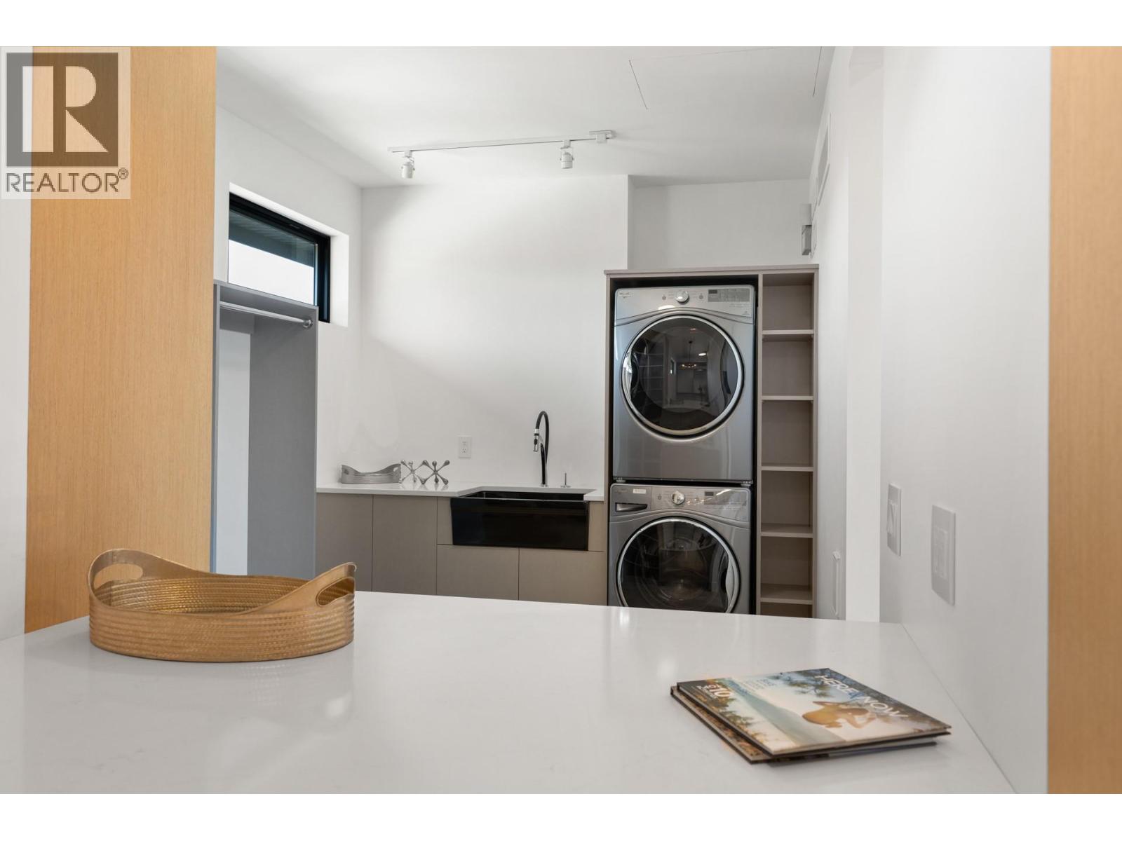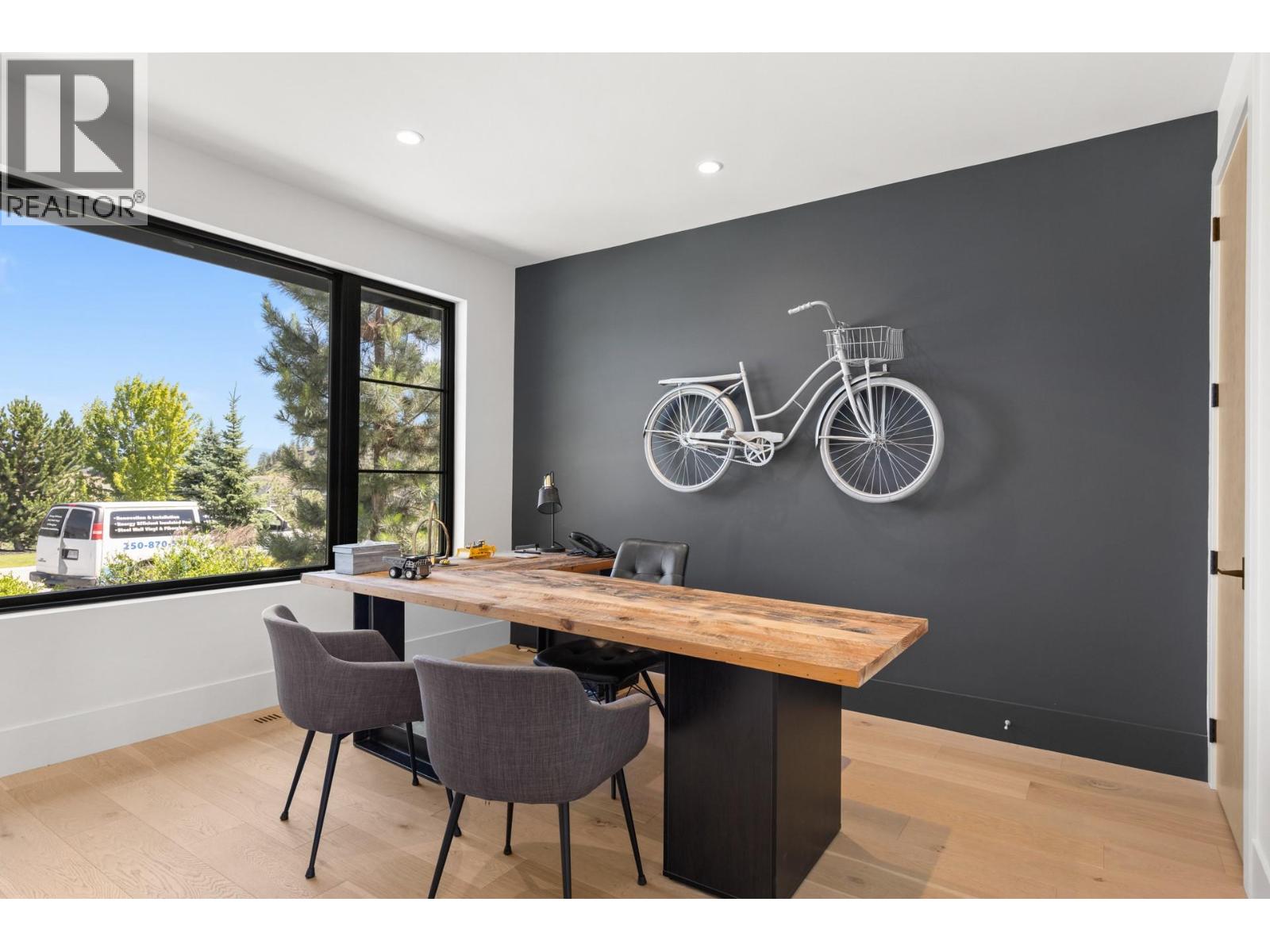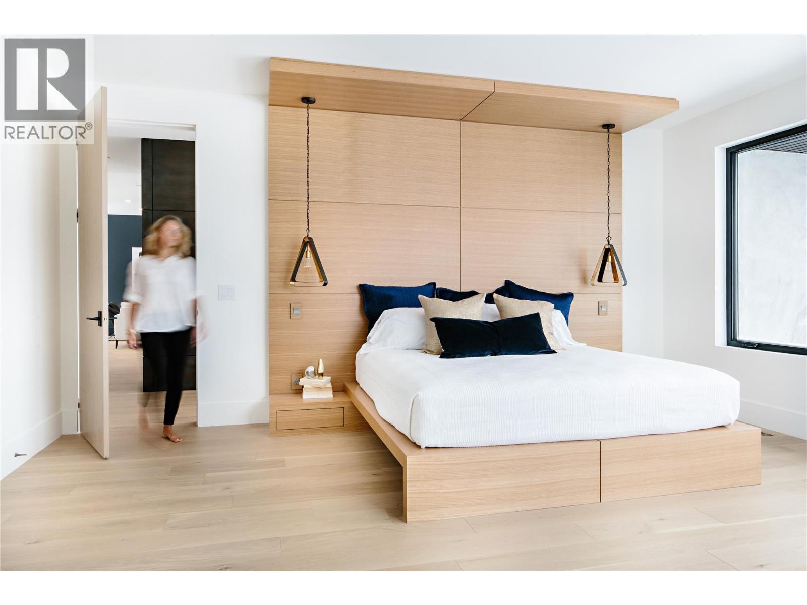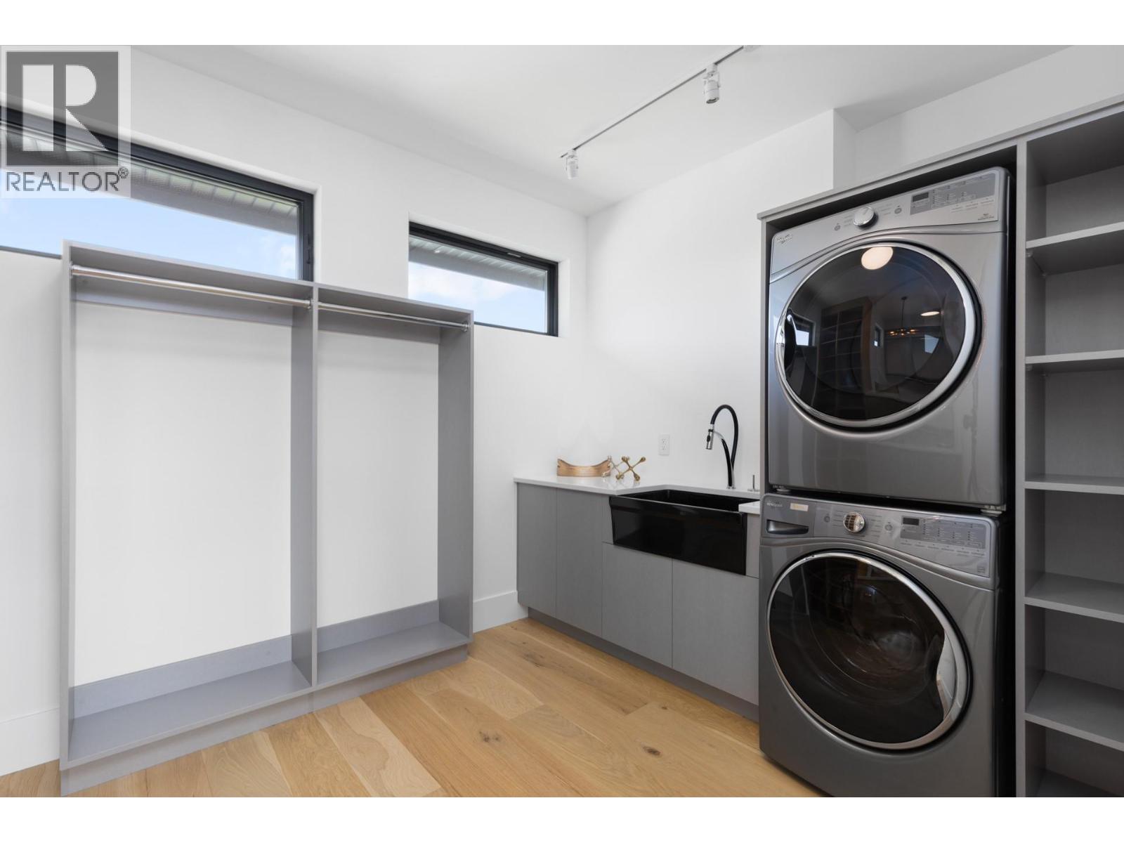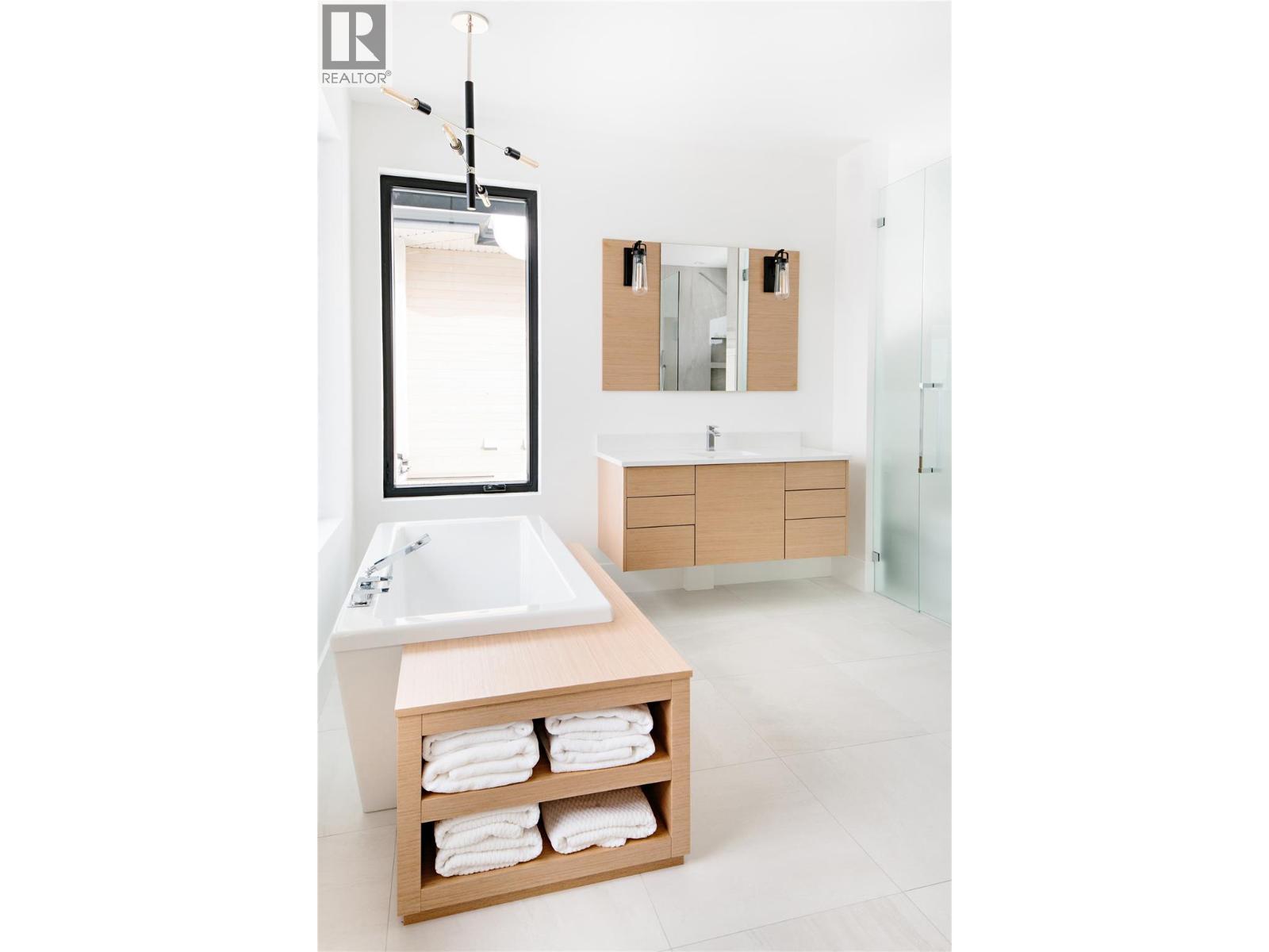 GST INCLUDED.... A unique opportunity in the prestigious Wilden neighbourhood, this custom built 2019 show home of the year from award winning builder Fawdry Homes will take your breath away w/sweeping 180 degree views of the Okanagan Lake + mountains. Truly designed for entertaining, this 4 bedroom + den modern home offers an open main flr plan w/2 stories of great room windows framing the amazing views opening into the covered patio area merging into the meticulously maintained low maintenance rear yard. Main flor features inc: a large kitchen w/over-sized Wolf gas range, panel Sub-Zero fridge/freezer, pantry/mudroom w/tons of storage, wet bar w/beverage fridge, 2 storey linear gas fireplace, spacious great room, 3 piece bath + office/future bdrm. Upper flr offers a lg primary suite w/built-in custom bed, his/her walk-in closet, a spacious ensuite w/lg soaker tub + curbless tiled shower, left style TV area, wet bar, 1/2 bath + the lg covered deck to soak in the sweeping views. Bsmt offers 2 full bedrooms, a 3 piece bathroom, wet bar/kitchen area however with the open design + lg windows, the potential for additional bedrooms. Basement also offers a separate grade to basement level entrance which would all for a possible suite. Other features include a 3 car garage, advanced heating/cooling system, underground sprinklers, solar panel system, full central vacuum w/hidden hose attachments + full security/camera system. Full New Home Warranty. Potential for a pool.