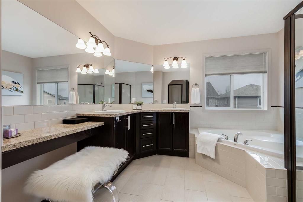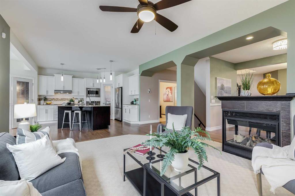**Open house Sunday Nov 14th from 2:30-4:30pm** Location, location, location! This is one you don’t want to miss. With over 2,700 sq. ft. of beautifully designed living space, this home is perfect for a growing family or multi-generational living. Ideally situated within walking distance to schools, shopping, and with quick access to Highway 2, convenience is at your doorstep. Immaculate hardwood floors welcome you the moment you step inside. A formal living/dining room sits to the right of the central staircase—ideal for family gatherings or quiet evenings. The three sided fireplace creates a warm transition into the second living room, a cozy retreat for everyday relaxation. The chef’s kitchen is a showstopper: two tone cabinetry, granite countertops, built in wall oven and microwave, sleek cooktop, and a large island for effortless prep. An added bonus is the butler’s kitchen with gas range that offers extra cooking space—perfect for entertaining or meal prep. A charming breakfast nook opens to the backyard, where you’ll find a large deck with pergola, built in BBQ, and hot tub—your summer oasis! A spacious home office on the main floor, with French doors (desk included) makes working from home a breeze. The oversized, heated garage entrance features a walk in closet and separate laundry room for ultimate functionality. The upper level of this home is equally impressive. Including an expansive bonus room with space for large furniture, a media setup, or even a library/games area. The luxurious primary suite has an impressive L shaped walk in closet (with built ins) and a spa inspired 5 piece ensuite. Two additional oversized bedrooms, each with walk in closets, easily accommodating king beds or multiple beds and a main four piece bath complete this level. Some Extra Features of this property include: vinyl fencing on both sides of the property, Central vacuum system, reverse osmosis, and water softener, 9 ft basement ceilings (ready for future development), Alarm system (contract with Airdrie Alarm), BRAND NEW ROOF AND SIDING ON SOUTH EXPOSURE (Nov 2025) and all carpets professionally cleaned and sanitized!! This home truly has it all—space, style, and upgrades galore. Priced to sell and ready for its next family. Don’t wait—book your showing today!