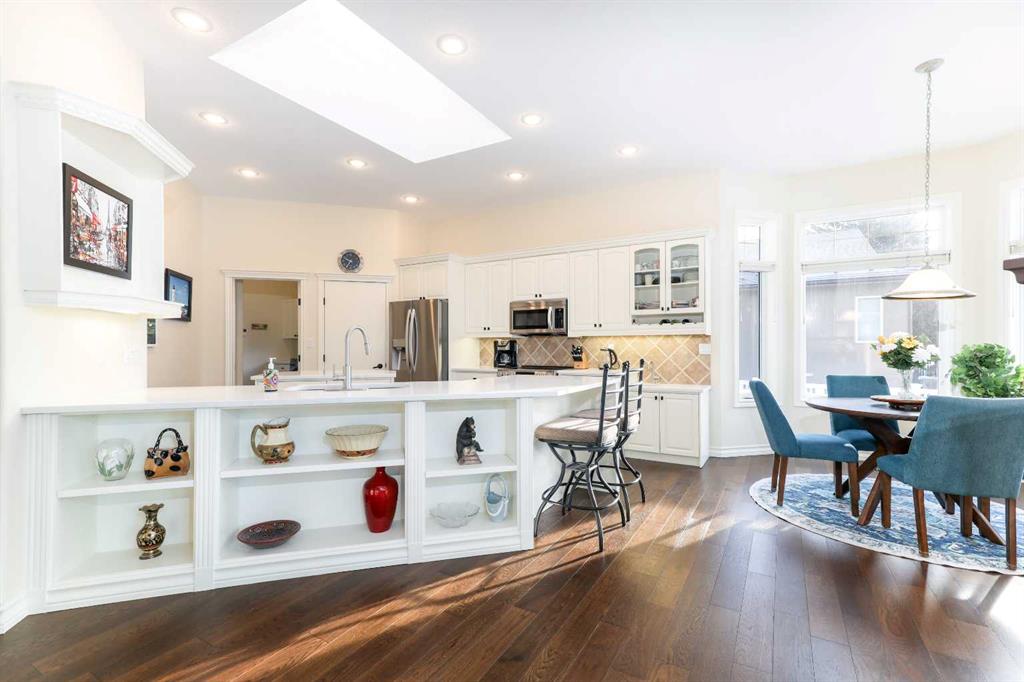 This meticulously maintained luxury home, built by Kalis Homes, is ideally situated in the prestigious Anders Park East neighbourhood and backs onto a serene green space. The residence features an open-concept main floor highlighted by soaring ceilings, quality hardwood and tile flooring, and a skylight that bathes the living area in natural light. A chef’s kitchen serves as the heart of the home, boasting quartz countertops, a spacious center island with an eating bar, high-quality cabinetry, and built-in appliances, including a stove, microwave, and dishwasher. All appliances and window covers have been installed within the last 2 years approximately. The main level also includes a dedicated front office that can easily serve as an additional bedroom. The living room boasts a cozy 3 sided a gas fireplace. The dining area is large. Back deck boosts a 12' x 22' covered deck overlooking the beautifully manicured yard, accessed from the kitchen. The entire inside of the home has been repainted. The primary suite is a true sanctuary, offering a large walk-in closet and a luxurious 5-piece ensuite complete with a soaker tub and a tile shower and in floor heating. For ultimate convenience, a dedicated laundry room is also located on the main floor. The expansive basement provides additional living space with a large family room. This level is rounded out by two large bedrooms, a 4-piece bathroom, and a wet bar, making it an ideal space for guests or relaxation. For comfort, the basement is equipped with in-floor heating The garage and parking area design further distinguishes this property, including a concrete driveway finished with rubber membrane and an oversized, heated double attached garage that is fully insulated and equipped with a floor drain. Exterior and mechanical features, underground sprinklers, a gas BBQ hook-up, a phantom screen door, a new furnace, a new air conditioning unit, a new air exchanger, a new water softener and completely repainted on the outside of the home. With thoughtful touches like a built-in phone desk and a large side yard, this home represents an outstanding opportunity to own a high-quality residence in one of Red Deer’s most desirable locations.