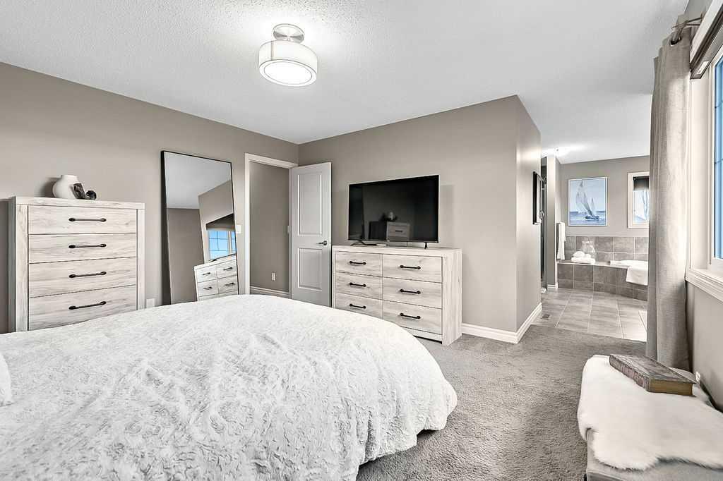 ** OPEN HOUSE Sat & Sun 2-4 ** FULLY FINISHED two story home with DREAM GARAGE in a perfect location BACKING ONTO PARK! One step inside (click 3D for virtual video), and you will fall in love with this home’s open concept plan, beautiful spaces, and warm ambiance throughout. MAIN FLOOR features large entryway, private main floor study, spacious living room with gas fire place, well appointed kitchen with extended height cabinetry and white quartz countertops, and large dining area with windows overlooking rolling landscape and park. UPPER FLOOR features huge bonus room, primary bedroom with walk-in closet and ensuite bathroom, two bedrooms with jack-and-jill full bathroom, plus a spacious laundry room with shelves and ample storage. BASEMENT was developed in 2025, and features fourth bedroom, full bathroom, gym and recreation room (roughed in for wet-bar). DOUBLE ATTACHED GARAGE is fully finished and features epoxy flooring, built-in cabinets, shelving, and conveniently placed sink. BACK YARD overlooks park and features extended deck, shed and outdoor fire pit. Park behind the home is beautifully landscaped with mature vegetation, a sport court and even skating rink in the winter. All this, within minutes of schools, river paths, ponds, playgrounds, excellent shopping, medical centre, and multiple grocery stores. If you’re looking for the perfect home under $750K, then this is it! RECENT UPDATES - light fixtures (2025), basement (2025), hot water tank (2024), garage makeover (approx $15K).