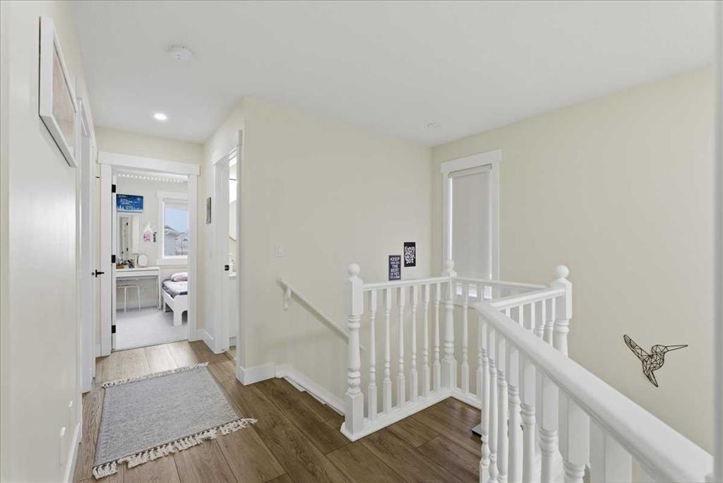QUIET CUL-DE-SAC | FULLY RENOVATED ON ALL 3 LEVELS | 4 TOTAL BEDROOMS | LARGE WEST-FACING BACKYARD | LAKE COMMUNITY LIVING. Pride of ownership is immediately evident in this beautifully updated 2-storey home located in the sought-after lake community of Coral Springs. A welcoming open-to-above foyer introduces the home with impressive natural light while setting the tone for the stylish interior that follows. Thoughtful renovations, a neutral colour palette and durable luxury vinyl plank flooring create a clean, modern atmosphere designed for comfortable everyday living and effortless entertaining. An open main floor layout supports easy connection between spaces while maintaining defined areas for gathering and relaxation. The chef-inspired kitchen anchors the home with quartz countertops, stainless steel appliances, a wine fridge and a pantry that provides valuable additional storage. A large central island encourages conversation and casual meals while keeping the cook connected to family and guests. Nearby dining space extends the living area outdoors through direct access to the rear deck, supporting a seamless indoor and outdoor lifestyle during warmer months. Relaxation comes naturally in the inviting living room where a gas fireplace is framed by a full-height stone feature wall that adds warmth, texture and visual impact. A stylish powder room completes the main level with contemporary finishes that reflect the home’s thoughtful renovation. Luxury vinyl plank continues up the staircase and throughout the upper hallway, reinforcing the home’s cohesive design. A relaxing primary retreat offers a peaceful escape at the end of the day and includes a custom walk-in closet along with a beautifully renovated ensuite designed for everyday comfort. Two additional bedrooms provide flexible space for children, guests or a home office while a full 4-piece bathroom supports busy family routines. More living space awaits in the fully finished basement where a large recreation room creates the perfect setting for movie nights, games or casual gatherings. An additional bedroom and a 3-piece bathroom add versatility for guests, teenagers or multi-generational living. Outdoor living is equally appealing with a west-facing backyard that captures warm afternoon and evening sun. Generous yard space offers plenty of room for children and pets to play while a large deck creates an ideal setting for barbeques, relaxing and summer entertaining. A double attached garage with front driveway parking adds everyday convenience and valuable storage. The phenomenal location further enhances the appeal within this distinctive Californian-themed lake community where residents enjoy year-round activities including beach access, skating and community events. Multiple parks, green spaces and walking paths are located throughout the neighbourhood while schools, shopping, restaurants and everyday services are all within easy reach, creating an extremely walkable lifestyle.