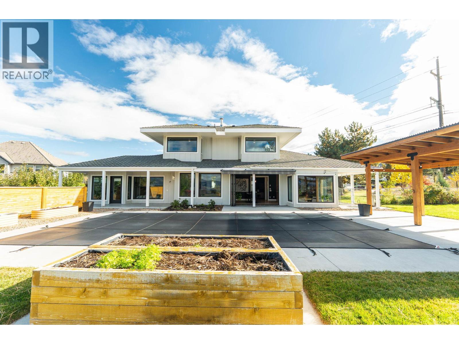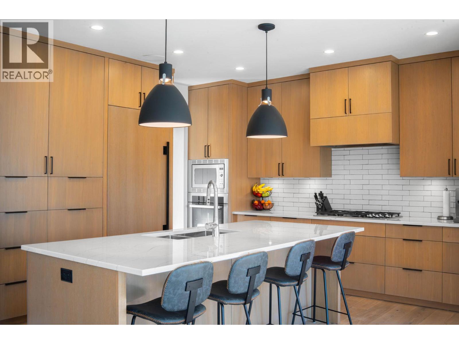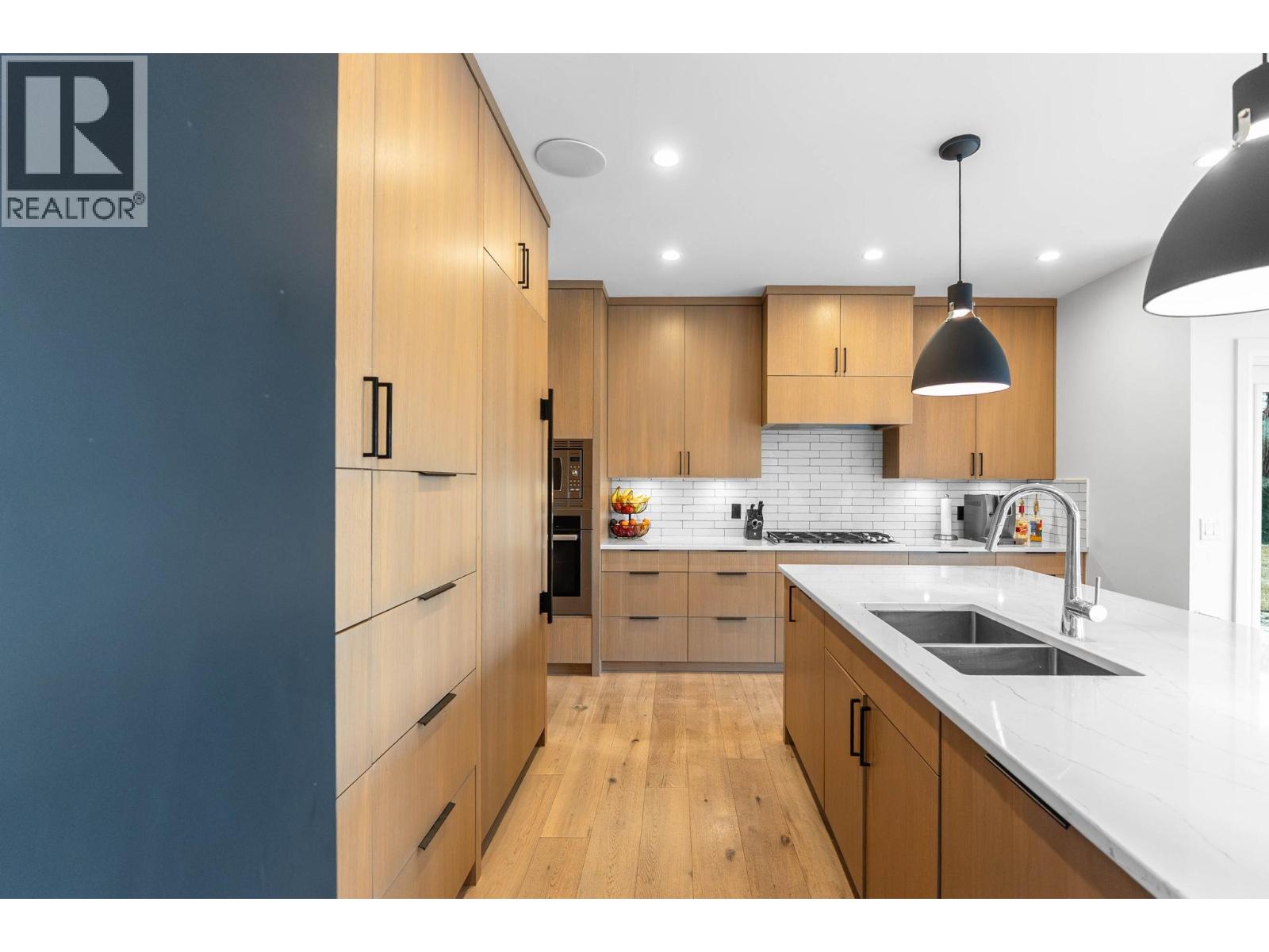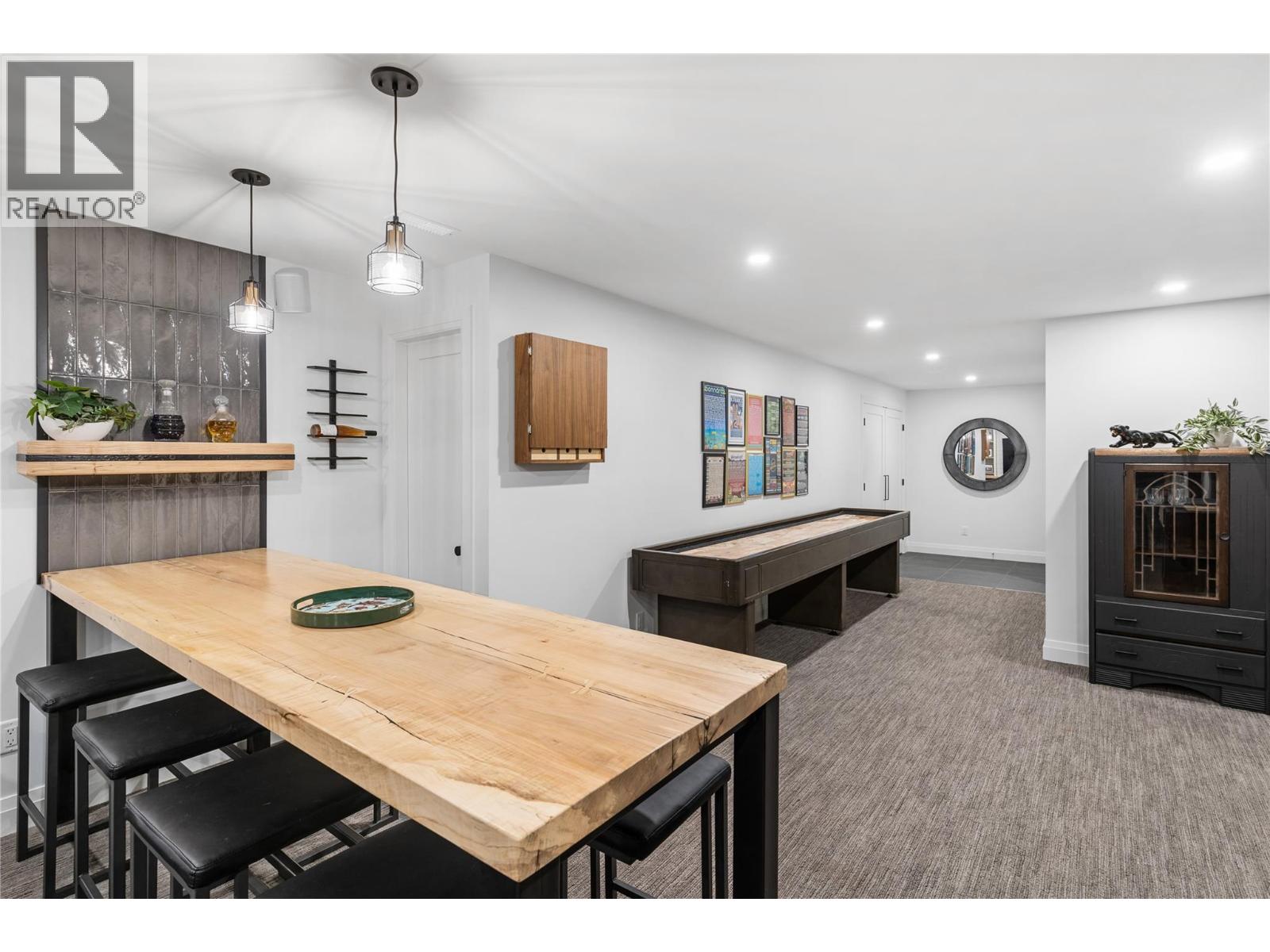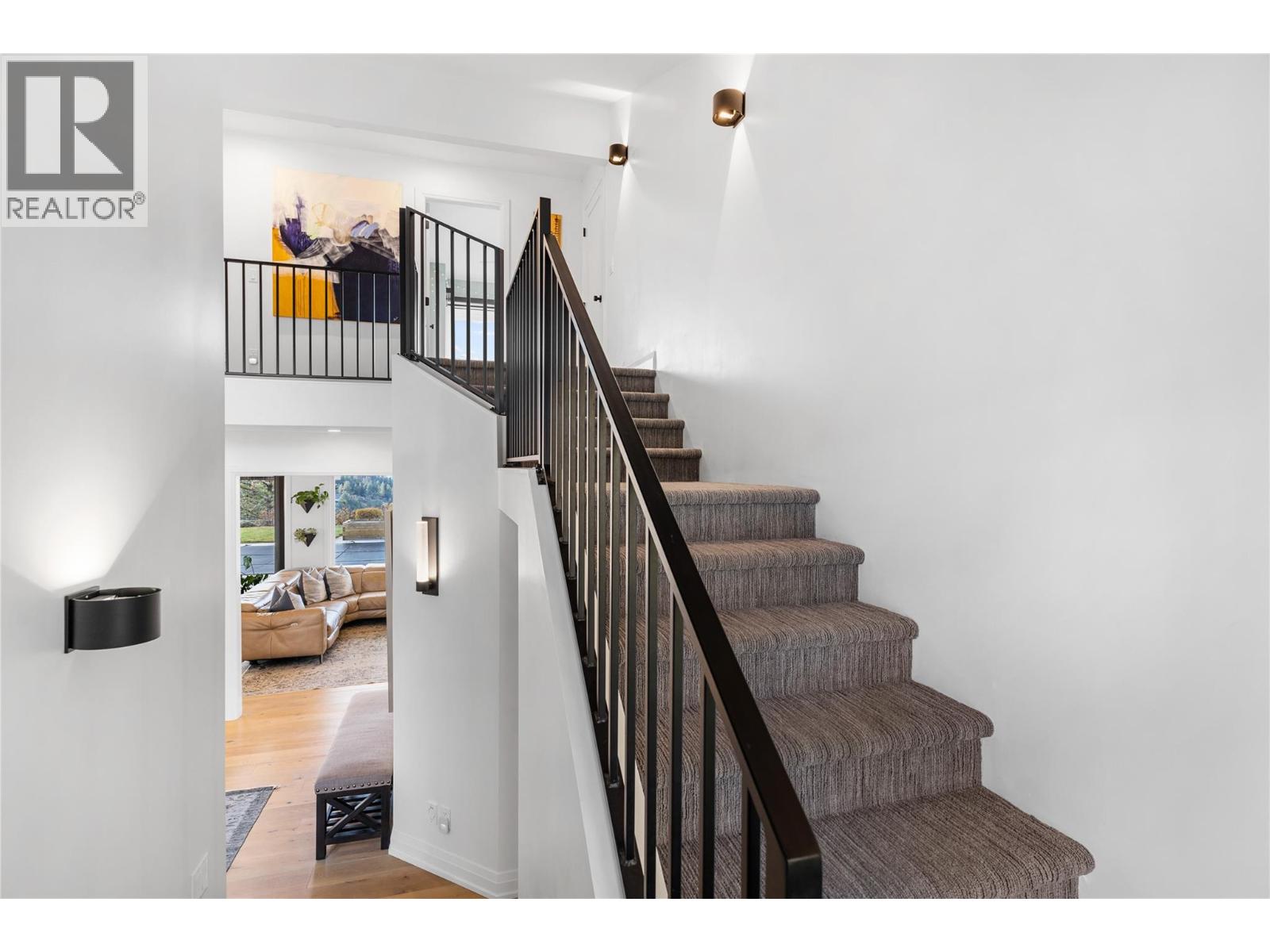 At 4,225 sq. ft., this residence showcases refined design and flow, reimagined to embody modern luxury and stunning, unobstructed views of Okanagan Lake. Designed for those who value sophistication and comfort, this home offers a perfect balance of style and livability. The main level features a designer kitchen with stone countertops and integrated high end appliances concealed behind custom cabinetry, flowing effortlessly into the dining and living spaces. Nano folding glass doors extend to a secluded backyard retreat featuring a stunning saltwater pool.—perfect for elegant entertaining or relaxed everyday living. The primary suite on the main floor is a true retreat, offering private outdoor access, a generous walk-in closet, and a spa-inspired ensuite with a freestanding soaker tub, glass shower, heated floors, and double vanity. A dedicated office and custom mudroom with exterior access and built-ins enhance both function and design. A dramatic entryway with floor-to-ceiling glass doors and soaring ceilings sets the tone for the home’s bright, airy aesthetic. Upstairs, two spacious bedrooms capture sweeping lake views and share a full bath, while the lower level offers a theatre-style rec room, gym or flex space, two additional bedrooms, a full bath, and a separate entrance. A stunning combination of design, comfort, and refined craftsmanship define this exceptional Crawford Estates home.