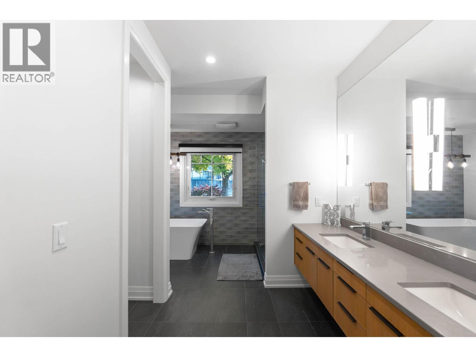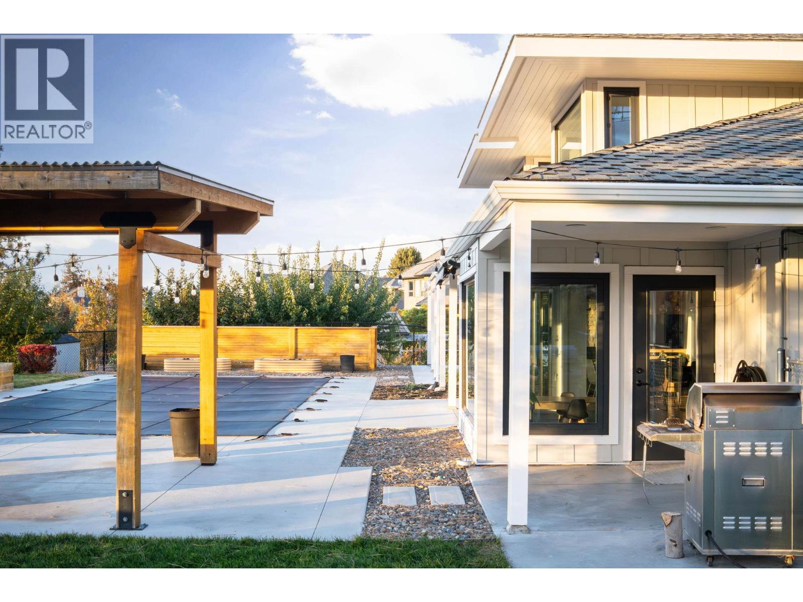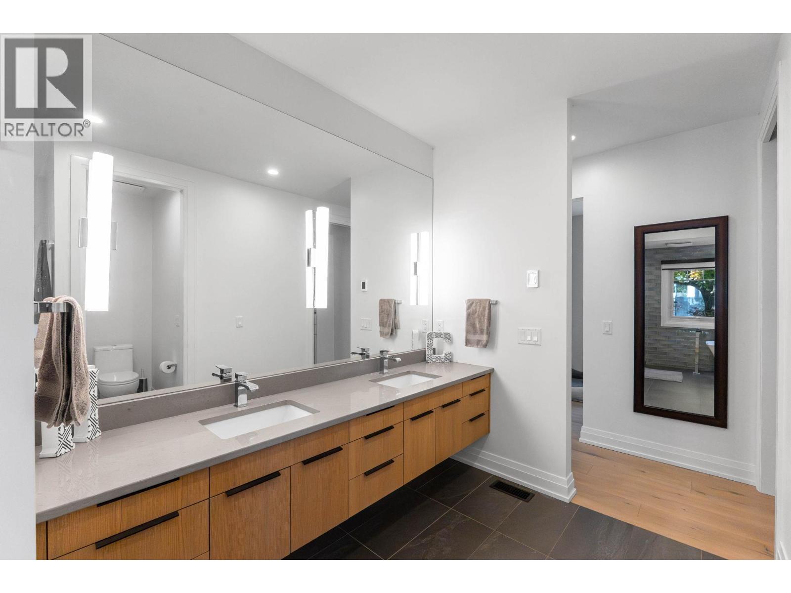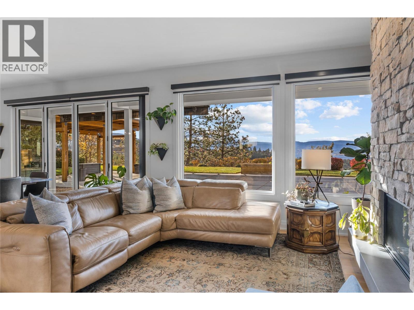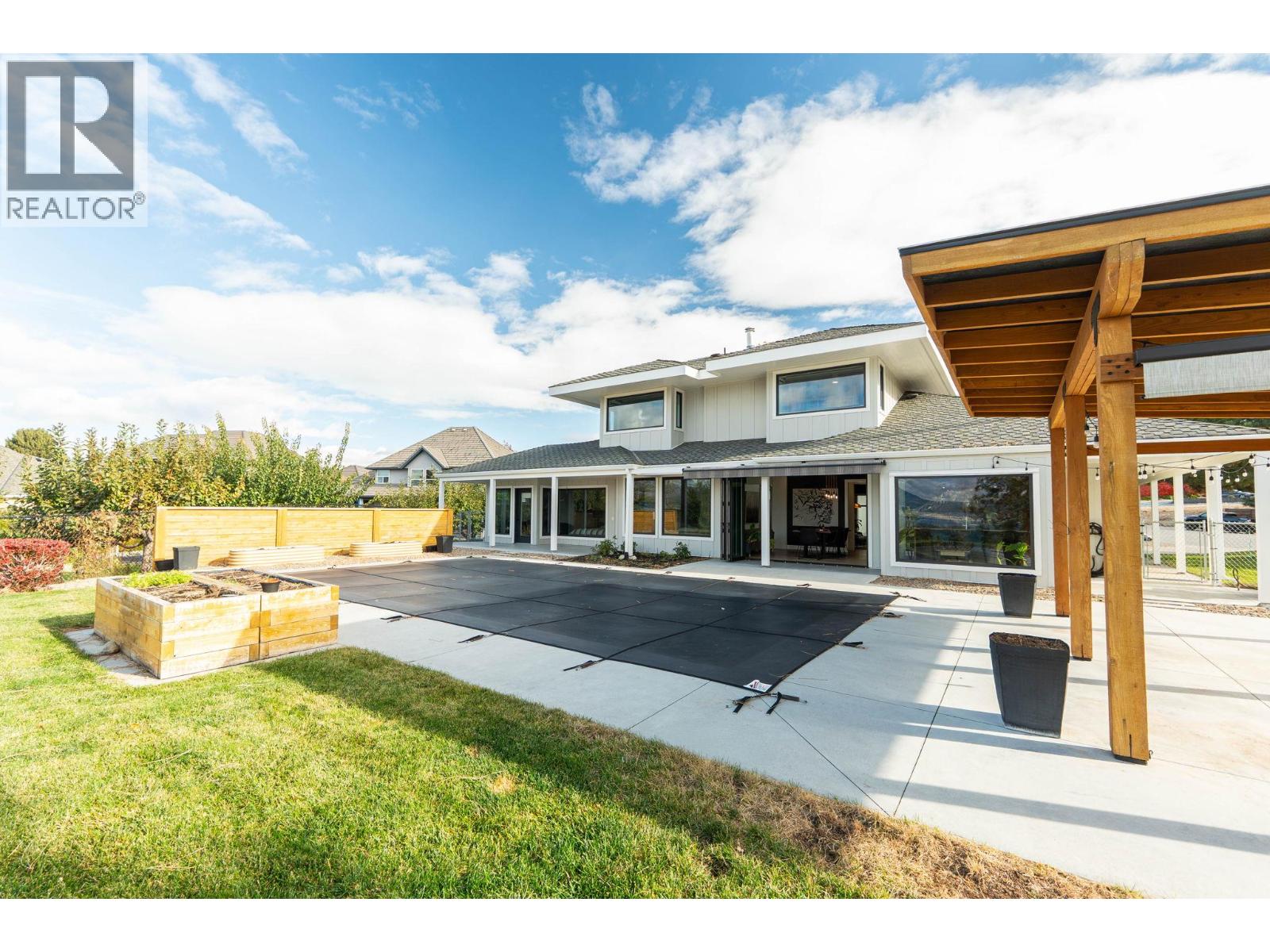 At 4,225 sq. ft., this residence showcases refined design and flow, reimagined to embody modern luxury and stunning, unobstructed views of Okanagan Lake. Designed for those who value sophistication and comfort, this home offers a perfect balance of style and livability. The main level features a designer kitchen with stone countertops and integrated high end appliances concealed behind custom cabinetry, flowing effortlessly into the dining and living spaces. Nano folding glass doors extend to a secluded backyard retreat featuring a stunning saltwater pool.—perfect for elegant entertaining or relaxed everyday living. The primary suite on the main floor is a true retreat, offering private outdoor access, a generous walk-in closet, and a spa-inspired ensuite with a freestanding soaker tub, glass shower, heated floors, and double vanity. A dedicated office and custom mudroom with exterior access and built-ins enhance both function and design. A dramatic entryway with floor-to-ceiling glass doors and soaring ceilings sets the tone for the home’s bright, airy aesthetic. Upstairs, two spacious bedrooms capture sweeping lake views and share a full bath, while the lower level offers a theatre-style rec room, gym or flex space, two additional bedrooms, a full bath, and a separate entrance. A stunning combination of design, comfort, and refined craftsmanship define this exceptional Crawford Estates home.