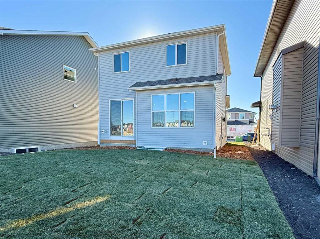 Welcome to the exquisite "Carisa" floor plan, where nearly 1,700 SqFt of thoughtfully designed space combines modern elegance with unmatched functionality. This home’s layout is tailored for both comfort and style, creating the perfect setting for family living and entertaining. As you step inside, you’ll be greeted by the warmth and durability of vinyl plank flooring that flows seamlessly throughout the main level, accentuating the modern finishes and striking architectural details. Natural light pours in through the back wall of windows, infusing the open-concept living areas with an inviting ambiance. Dual sliding patio doors extend your living space to the expansive backyard, ready for your personal touch to create the ultimate indoor-outdoor oasis. At the heart of the home, the kitchen is a chef’s dream. Featuring two-tone cabinetry, sleek quartz countertops, and a stylish tile backsplash that wraps elegantly around a chimney-style hood fan, this kitchen is as functional as it is beautiful. Stainless steel appliances and a thoughtfully positioned mudroom with direct kitchen access ensure that even grocery days are effortless. A cozy dining nook and a spacious living room, are perfectly positioned to enjoy the home’s abundant natural light. The smartly designed pocket office offers the perfect work-from-home setup or a dedicated homework space for the kids. Upstairs, a versatile bonus room serves as the ideal family retreat, separating the serene primary suite from the secondary bedrooms. The primary suite is a tranquil haven, complete with a luxurious 4-piece ensuite featuring an oversized shower and ample space to unwind. The two additional bedrooms are generously sized, making them ideal for children or guests. With an upstairs laundry room and a stylish 4-piece bathroom, convenience is woven into every detail of this home. **This home also comes complete with full front and backyard landscaping, including sod, mulch on the side yards, and trees/shrubs in the front as per community guidelines. Located in the vibrant southeast Calgary community of Hotchkiss, this home offers more than just a beautiful living space. Residents enjoy stunning mountain views, 51 acres of park space, interconnected walking paths, and a central wetland. Designed with families in mind, Hotchkiss is a community where you can truly belong and thrive.