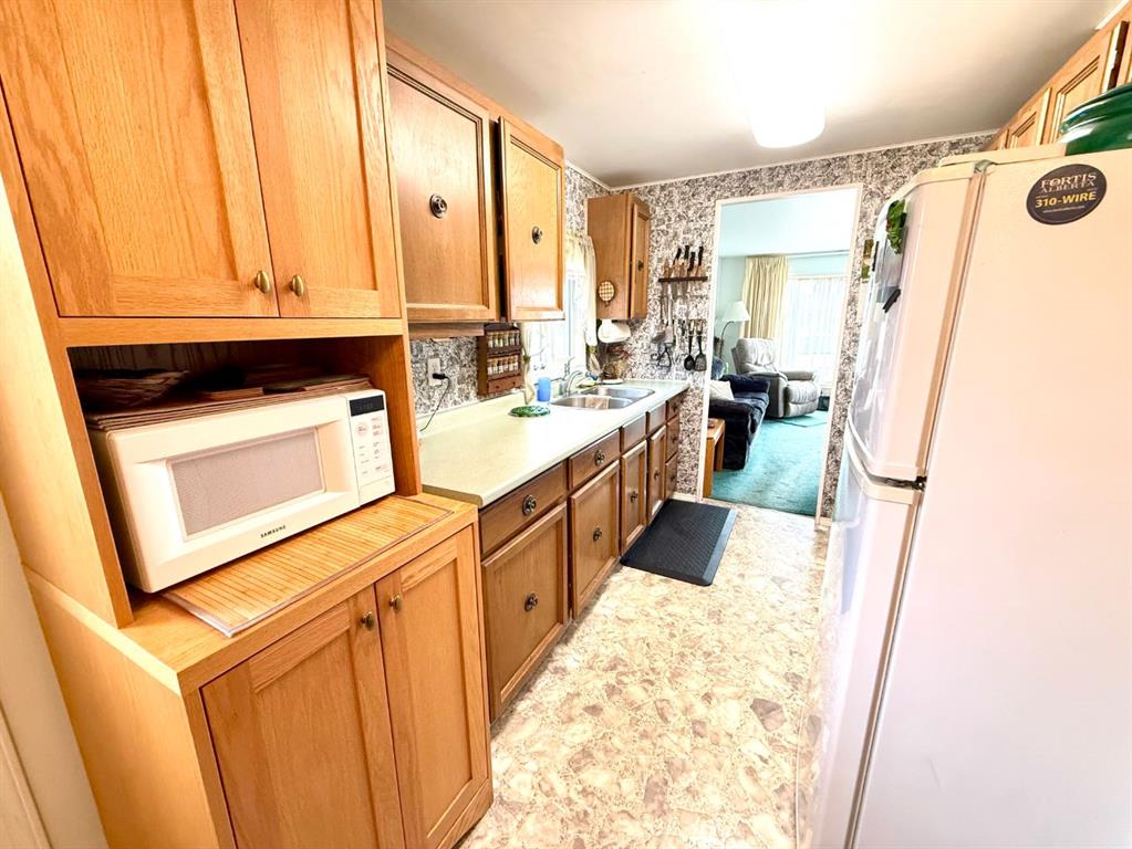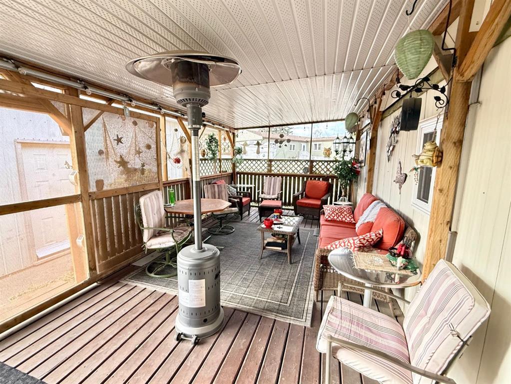 Welcome to this beautifully maintained 1,098 sq ft, 2-bedroom, 1-bath mobile home tucked away in a peaceful cul-de-sac in the quaint town of Stavely, Alberta. You’ll love the large, private yard with an enclosed porch and additional deck—perfect for entertaining family and friends or enjoying quiet evenings outdoors. Step inside to find a warm and inviting space featuring a cozy living room, bright dining area, and an adorable kitchen with plenty of charm. A flex/office space(home wired to Fibre Optic), adds versatility for those who work from home or need a creative nook. Down the hall, you’ll find a spacious primary bedroom, an additional bedroom, a convenient laundry area, and a 4-piece bathroom. Unlike most mobile homes, this property has been drywalled throughout (except the kitchen) for a more modern feel. You will also appreciate the ample closet space throughout, central air and updated windows. The oversized, heated garage/shop is truly a standout feature! With abundant shelving and workspace, it’s perfect for vehicle storage, projects, or tinkering to your heart’s content. Whether you’re downsizing, retiring, or looking for an affordable home in a welcoming community, this property checks all the boxes.Call your fave Realtor and book a showing today!