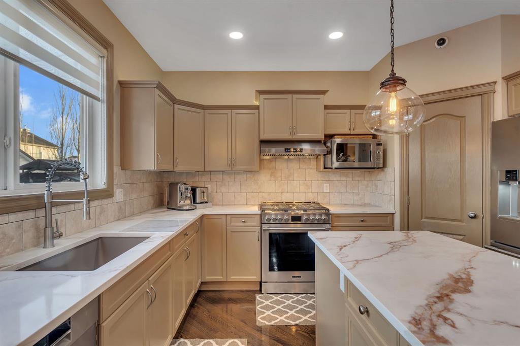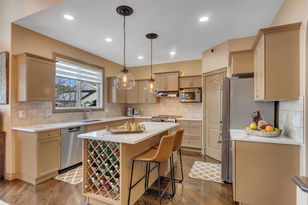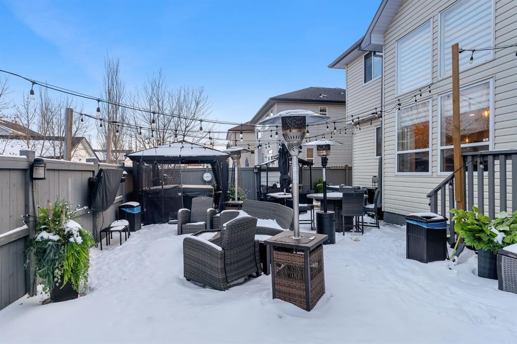 Welcome to this stunning former show home in the heart of Chestermere, proudly offered by the original owners and impeccably maintained throughout. From the moment you arrive, you’ll notice the extended concrete driveway offering extra parking, professionally installed LED front trim lighting, a charming front deck ideal for morning coffee, and low-maintenance, high-grade professional turf in both the front and backyard. Underground sprinklers service all flower beds for added convenience. Step inside through custom decorative glass doors with Phantom screen sliders at both the front and rear. The main entrance welcomes you with a grand office space and an elegant, wrap-around staircase featuring beautiful railings and a unique split design leading to the bonus room and bedroom wing. The main level offers a cozy living room with a gas fireplace and fan for efficient heat distribution, soaring ceilings in the dining area, and a beautifully updated kitchen with brand-new quartz countertops, top-quality appliances, and a gas stove (2025). Zebra blinds and drapery are installed throughout. A custom-built mudroom with California Closets and a thoughtfully designed laundry area complete the main floor. Upstairs, retreat to the spacious primary suite featuring a luxurious ensuite with jetted spa tub, dual sinks, separate shower, and private toilet room. Two additional generously sized bedrooms and upgraded pot lighting throughout the home enhance both comfort and style. The fully developed basement offers a large entertainment area, dedicated gym space, and an additional bedroom perfect for guests or extended family. Additional upgrades include central air conditioning, a water softener system, and a sump pump with alarm monitoring connected to the back alley drainage. The backyard is truly exceptional, featuring a gazebo covered hot tub with full plumbing and exterior breaker, outdoor shower and sink, artificial turf, professional patio lighting, storage shed, gated back alley access, and a custom side shed ideal for storage or a potential dog run. Approximately ¾ of the backyard is finished in concrete for durability and ease of use. The extended attached garage includes built-in storage shelving. Security is top tier with a 12-camera system, full alarm system with window sensors on the main floor and basement, and three alarm panels. This is a rare opportunity to own a beautifully upgraded, move-in-ready home with exceptional indoor and outdoor living spaces. Schedule your showing today!
