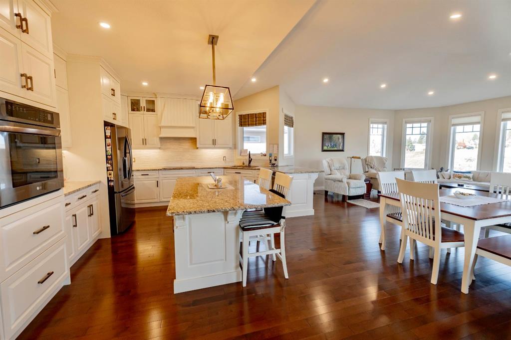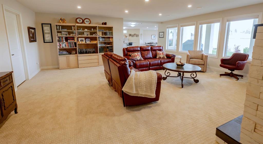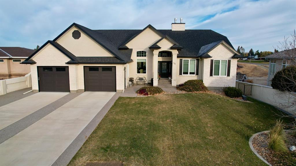 Discover refined living in this exceptional executive bungalow, perfectly situated in the sought-after Chinook Heights neighbourhood. Thoughtfully designed with exquisite finishes and generous spaces throughout, this home blends comfort, elegance, and functionality. The open-concept main floor is ideal for entertaining, featuring a custom chef’s kitchen with an island workspace, wet bar, breakfast room and formal dining area. Soaring coffered ceilings and impressive fireplaces create a warm, welcoming atmosphere, while oversized windows showcase stunning views of the coulees and walking paths. The fully developed walk-out basement includes a summer kitchen — offering flexibility for multi-generational living, guest accommodations, or caregiver support for aging in place. Each bedroom downstairs has their own full bathroom! Additional features include in-floor heating, a double attached garage with a spacious driveway, and beautiful landscaping that complements the serene surroundings. Every detail has been carefully considered in this one-of-a-kind property, a true opportunity to enjoy executive living with the beauty of Lethbridge right outside your door.
