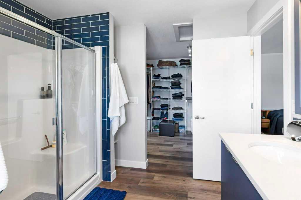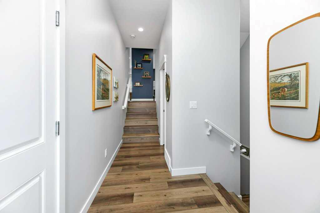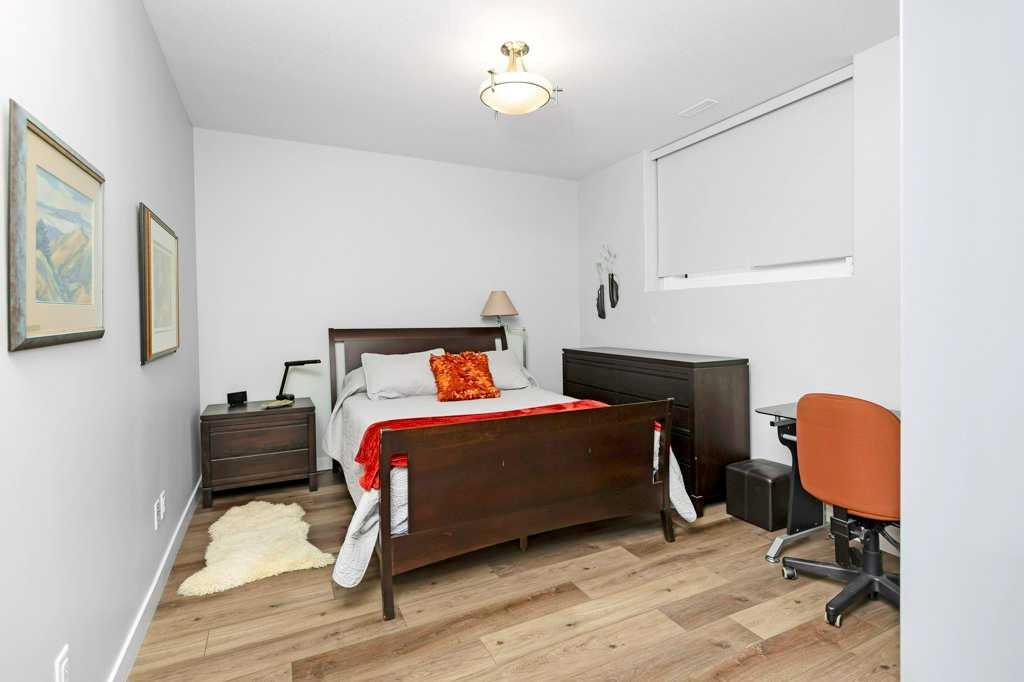 Welcome Home to this tastefully decorated modern modified Bilevel where style and practicality meet! Close to Riverbend Golf course, High School, shopping, trails!! This home was custom designed and loaded with many extra features to appreciate such as a spacious walk in guest closet at the front entrance that one wouldn't expect to see with a sweet two piece powder room off to the side. The garage is completely finished and heated, main floor offers a bright open kitchen with plenty of cupboards and workspace, UPGRADED STAINLESS APPLIANCES with a generous quartz top island to gather around. The dining nook offers a cozy cushioned bench window seat with space for extra storage. The living room provides just enough space for you and your guests to cozy up to the fireplace. Behind the living area we have a thoughtfully designed workspace for the computer or homework desk for the teen! Take a Walk upstairs to the supersized primary bedroom retreat offering a reading space, convenient laundry, a full ensuite with dual sinks and another spacious walk in closet! The basement is fully developed with another large bedroom, a full bath, cozy rec room (with a walk in storage closet in the back) can easily double as another large bedroom if required. The under stair utility room is thoughtfully designed and includes fully operational in floor heat. The maintenance free backyard offers many fruit trees, shrubs and garden boxes for the green thumb in the family. The deck has recently been freshened up with stain and the awning will provide perfect shade for the hot days of summer. This home is a pleasure to show and is a must see in this price range!! There is an annual HOA fee of $ 130 to take care of the community amenities such as entrance plaza, community gateway, roundabout feature, bridge, waterfall lookout feature, stream bed, plantings and enhanced lighting.